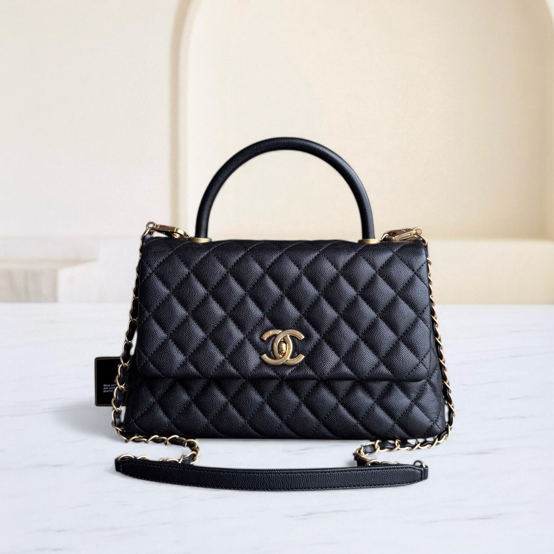 Chanel Coco Handle Medium - Caviar 29CM Quilted Black Gold Hardware Series 24