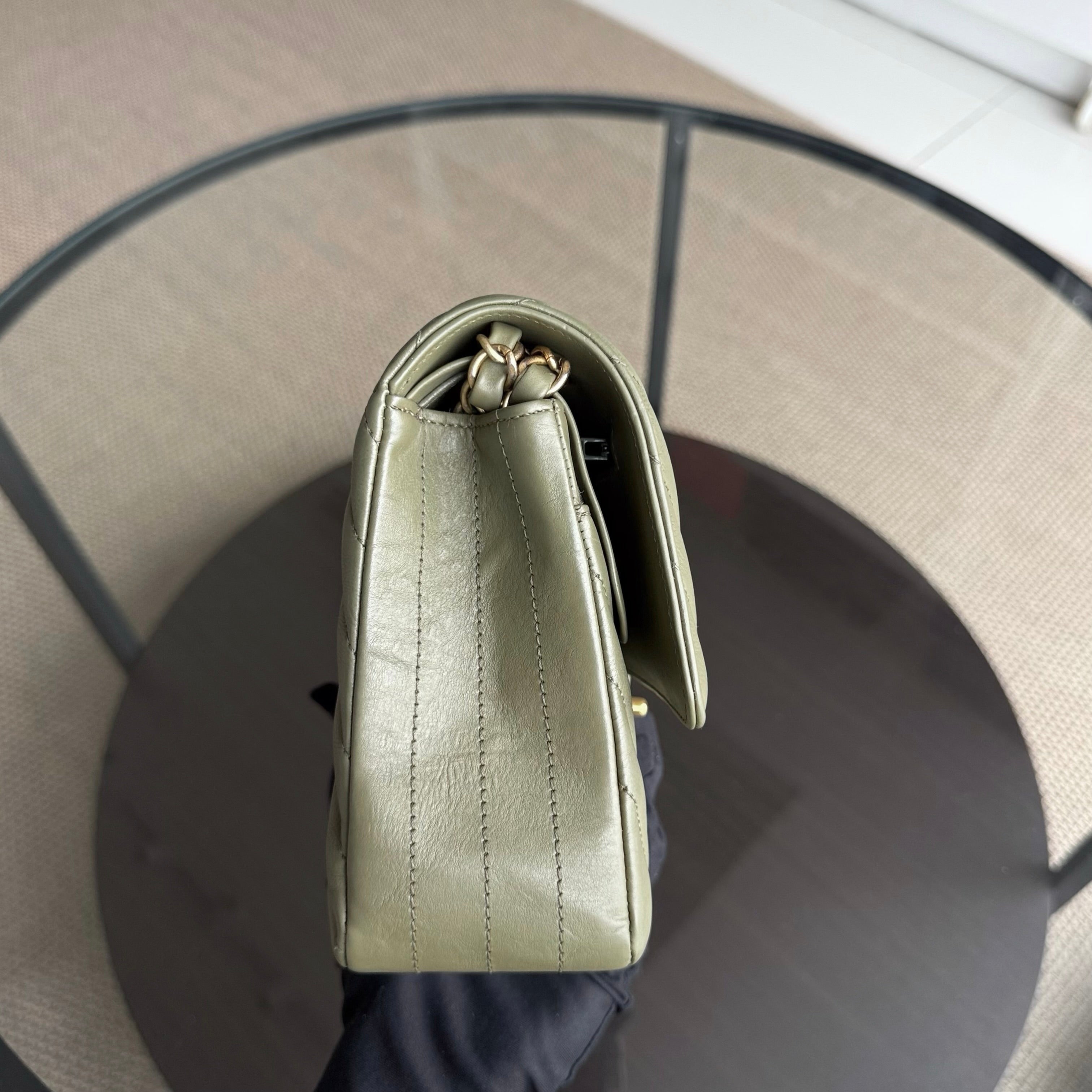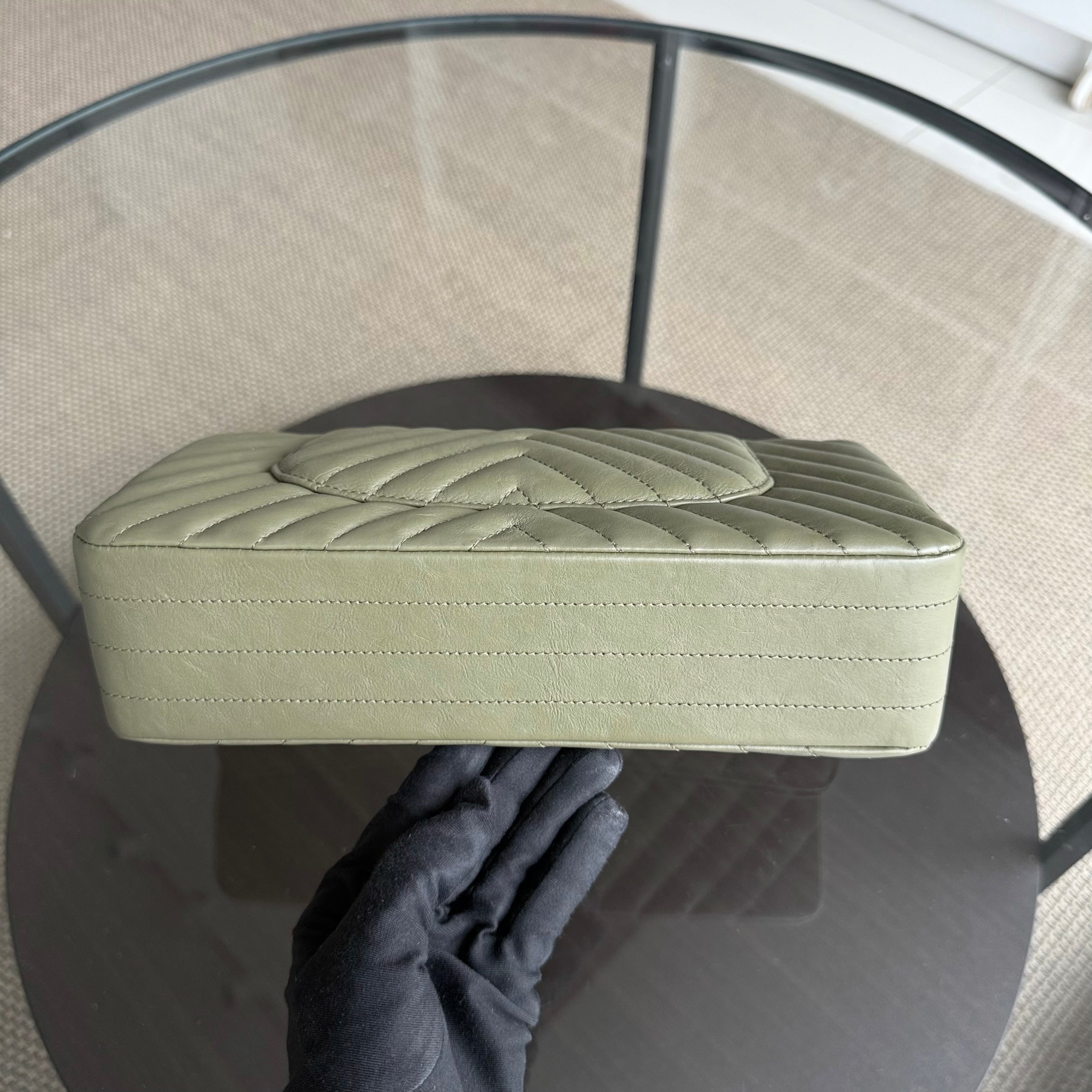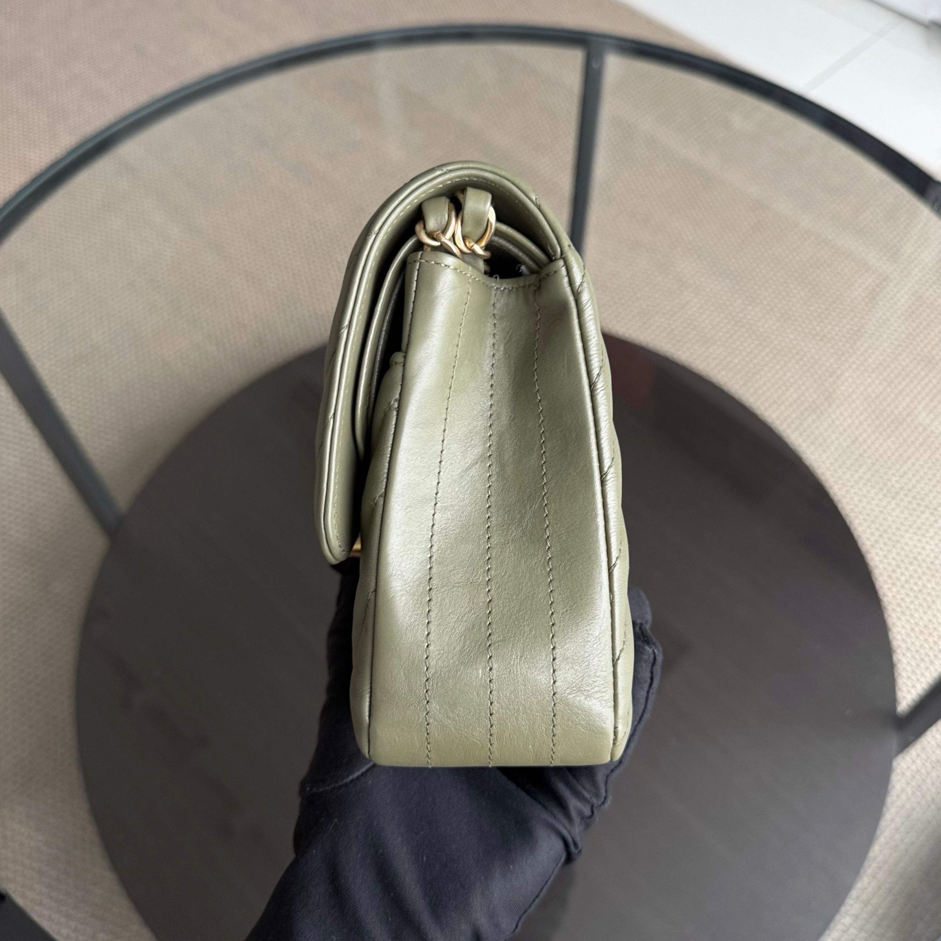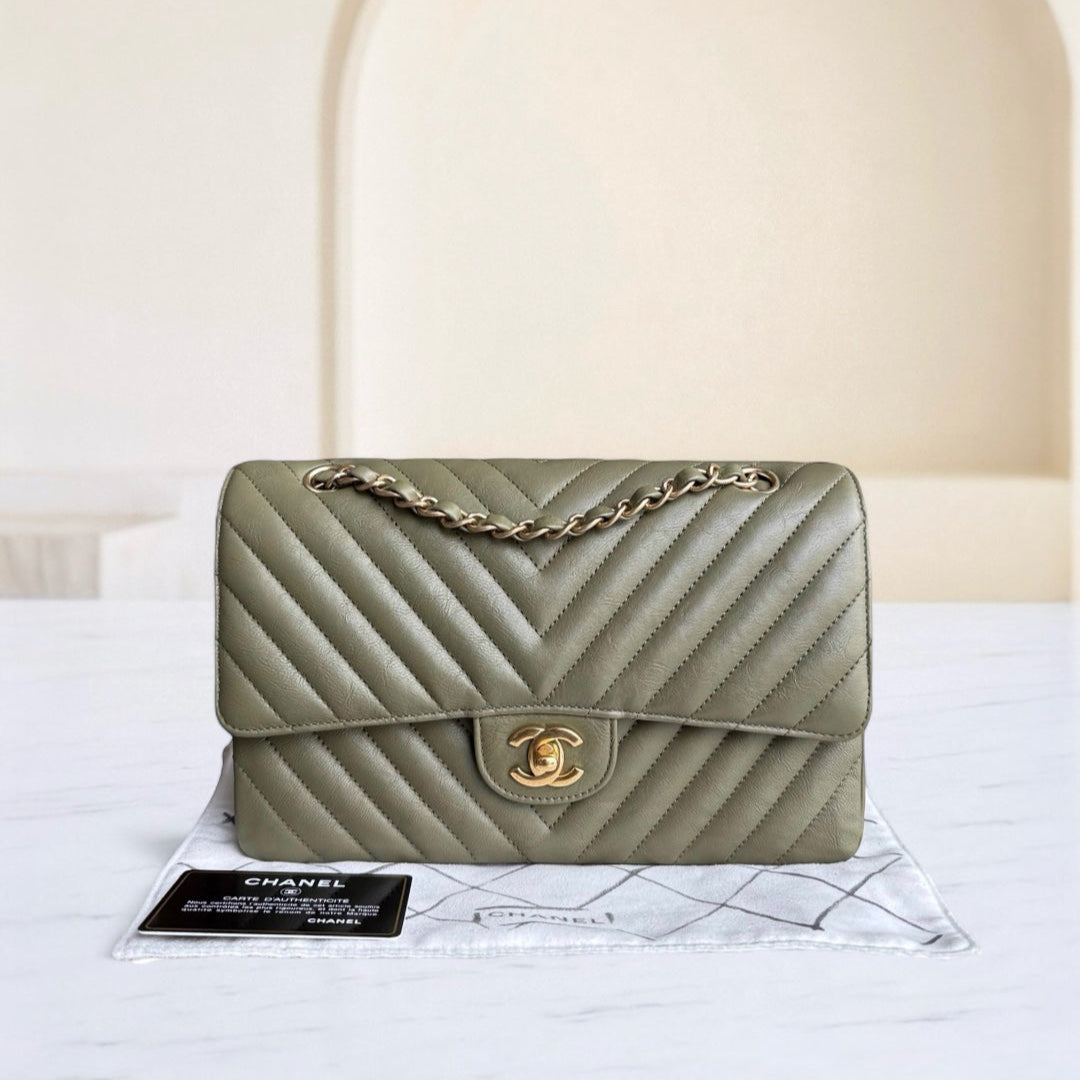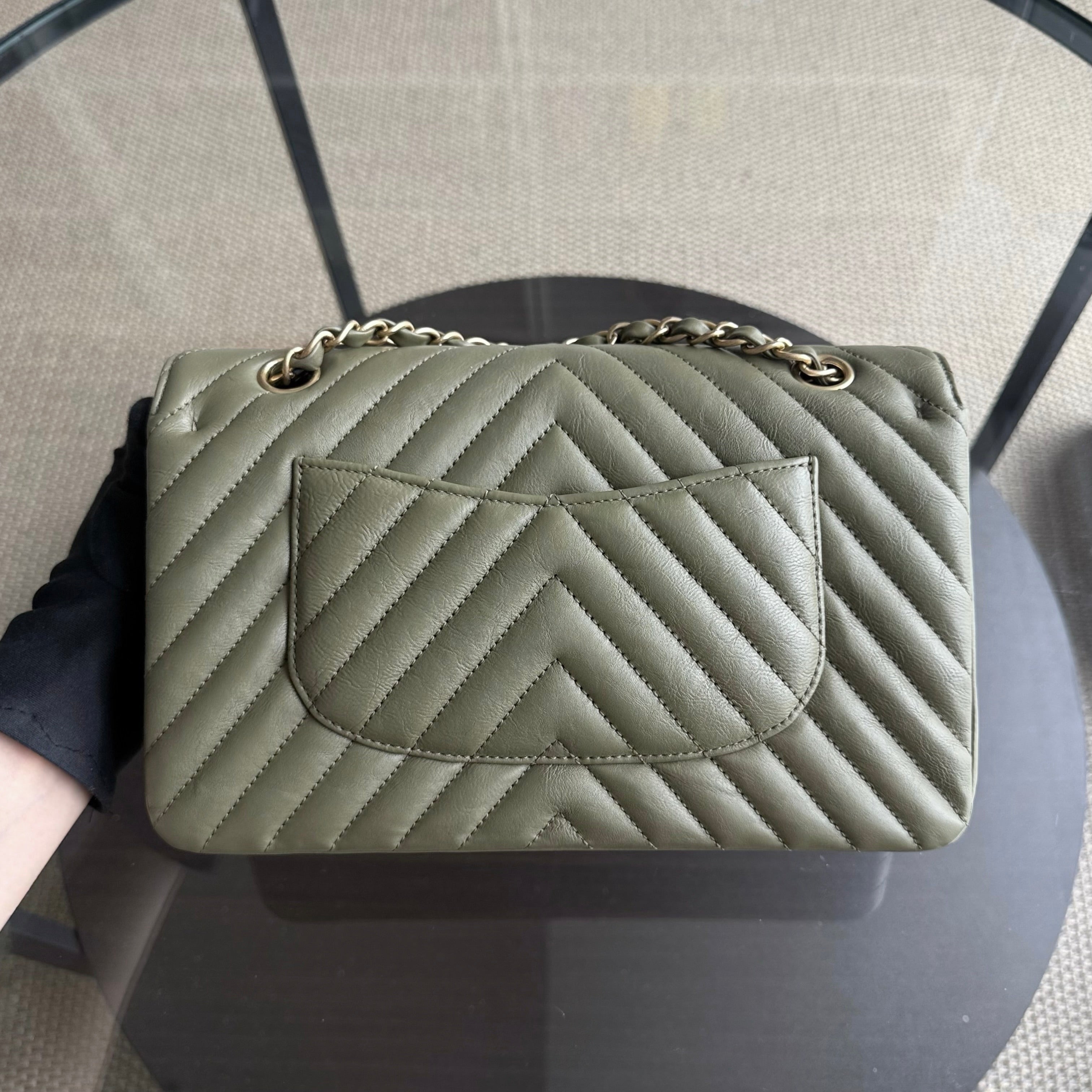 Chanel Classic Flap Medium - 25CM Chevron Grained Calfskin Olive Green Gold Hardware Series 23