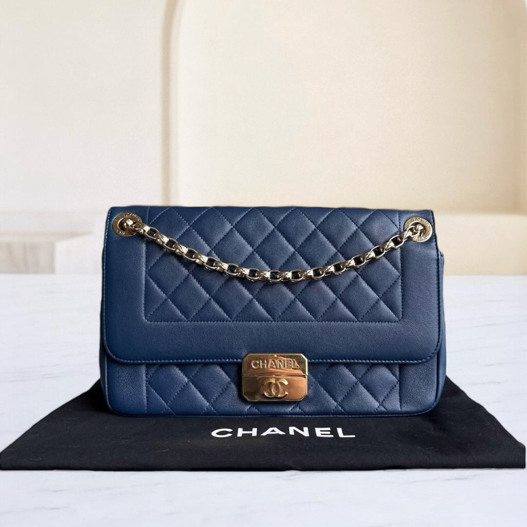 Chanel Chic With Me Medium - Lambskin Quilted 25CM Navy Blue Gold Hardware Series 18