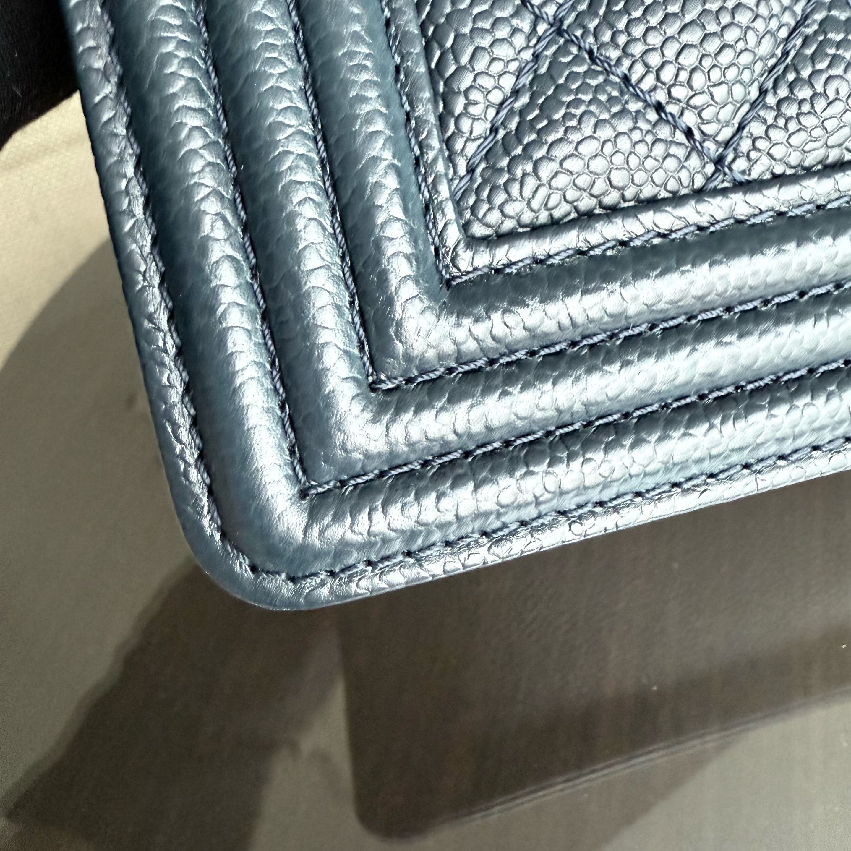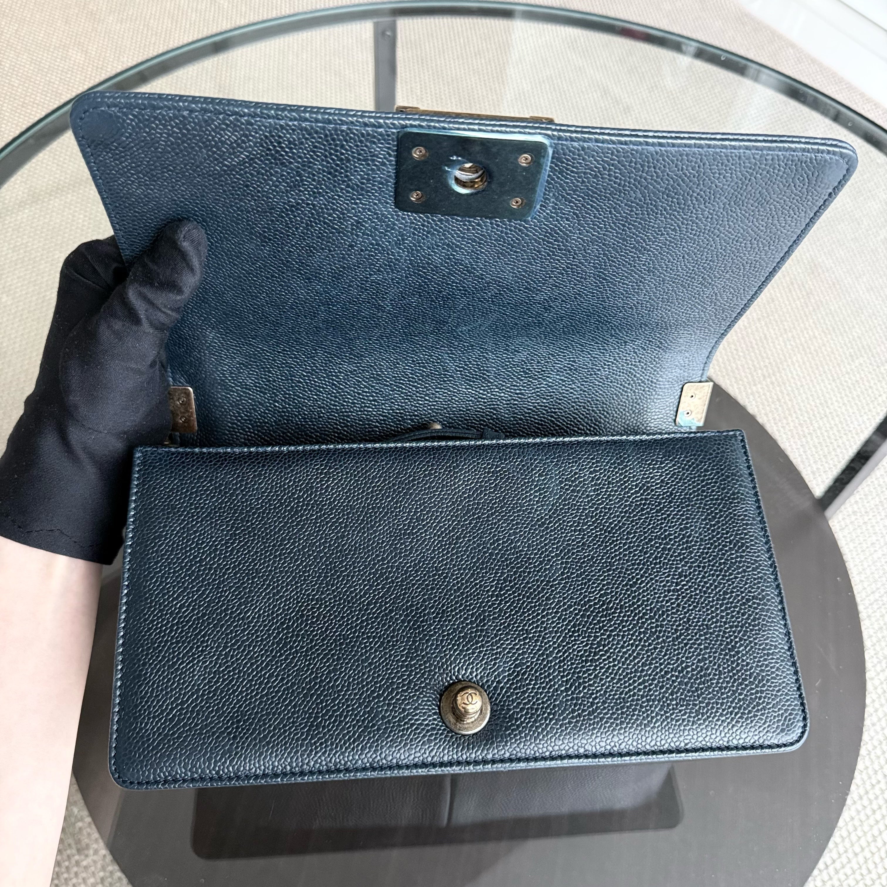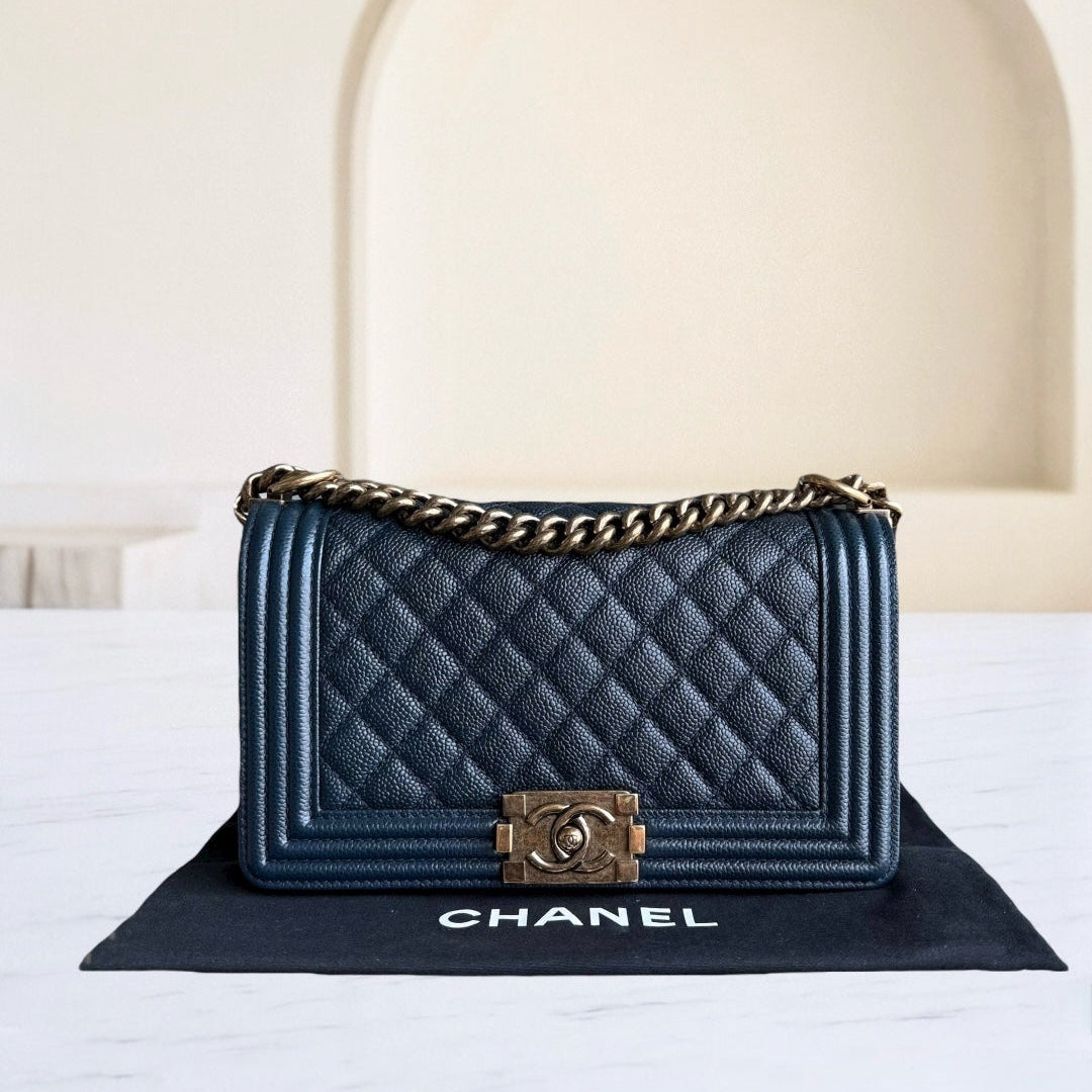 Chanel Boy Medium - Caviar 25CM Quilted Dark Blue Ruthenium Gold Hardware Series 19