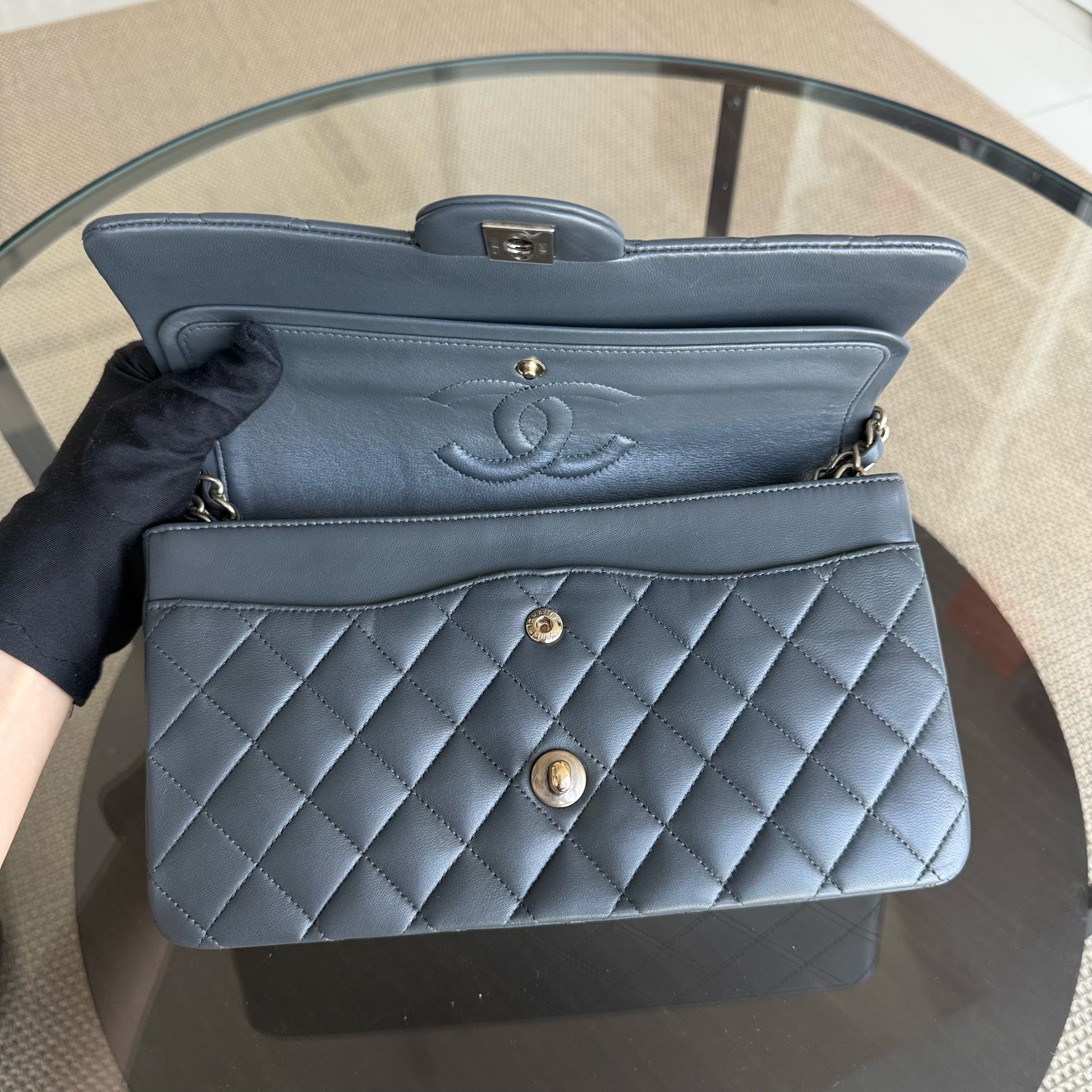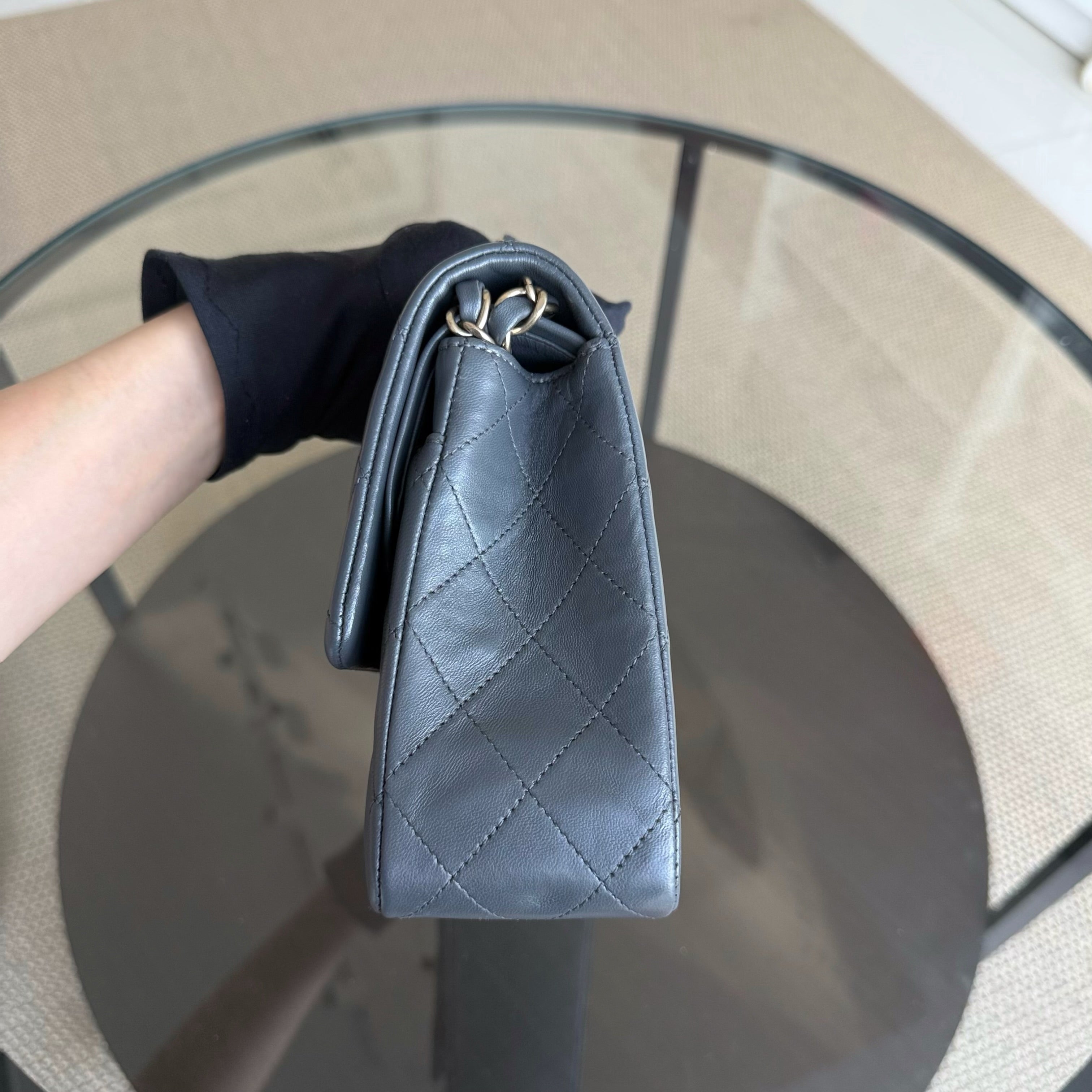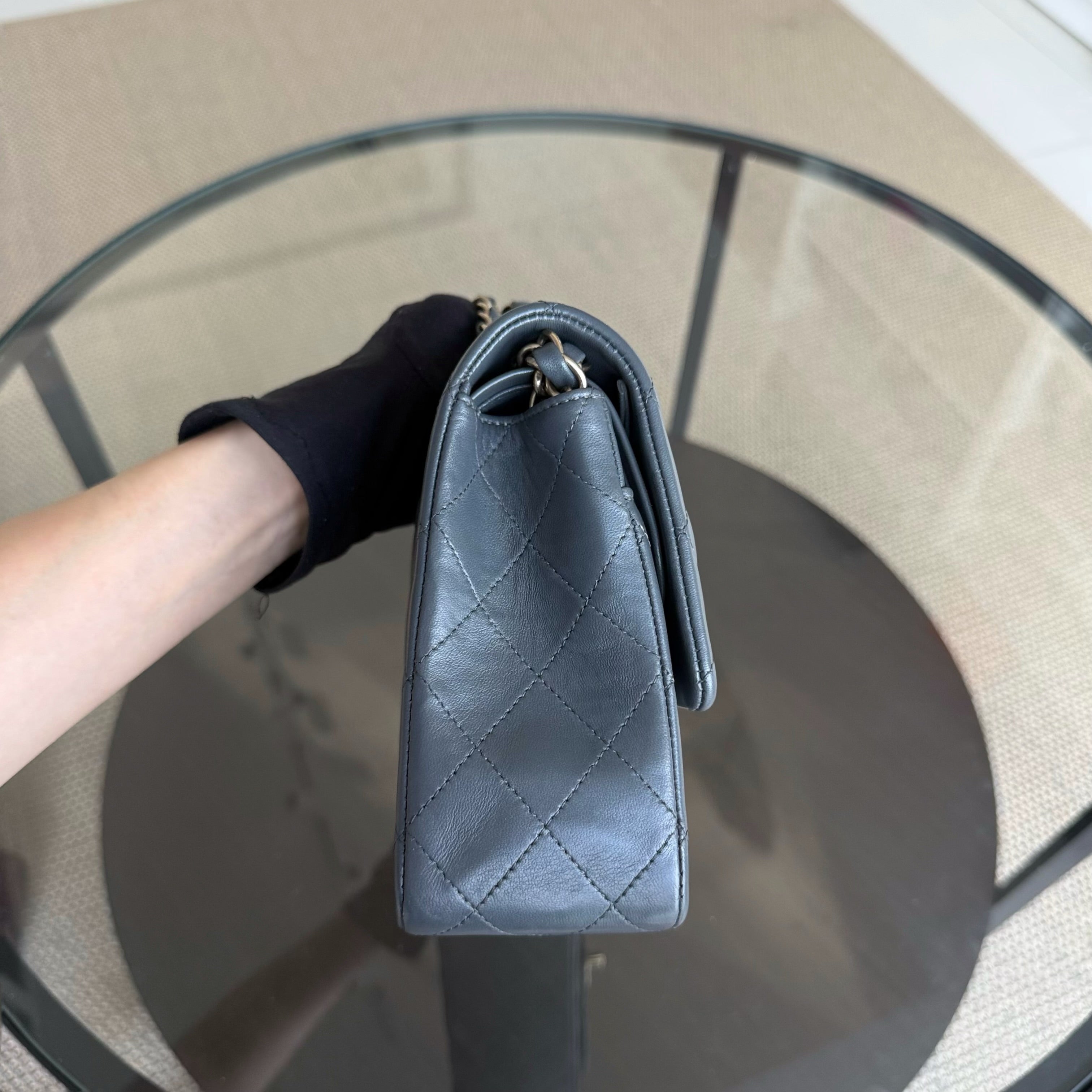 Chanel Classic Flap Medium - 25CM Quilted Lambskin Dark Gray Gold Hardware Series 19