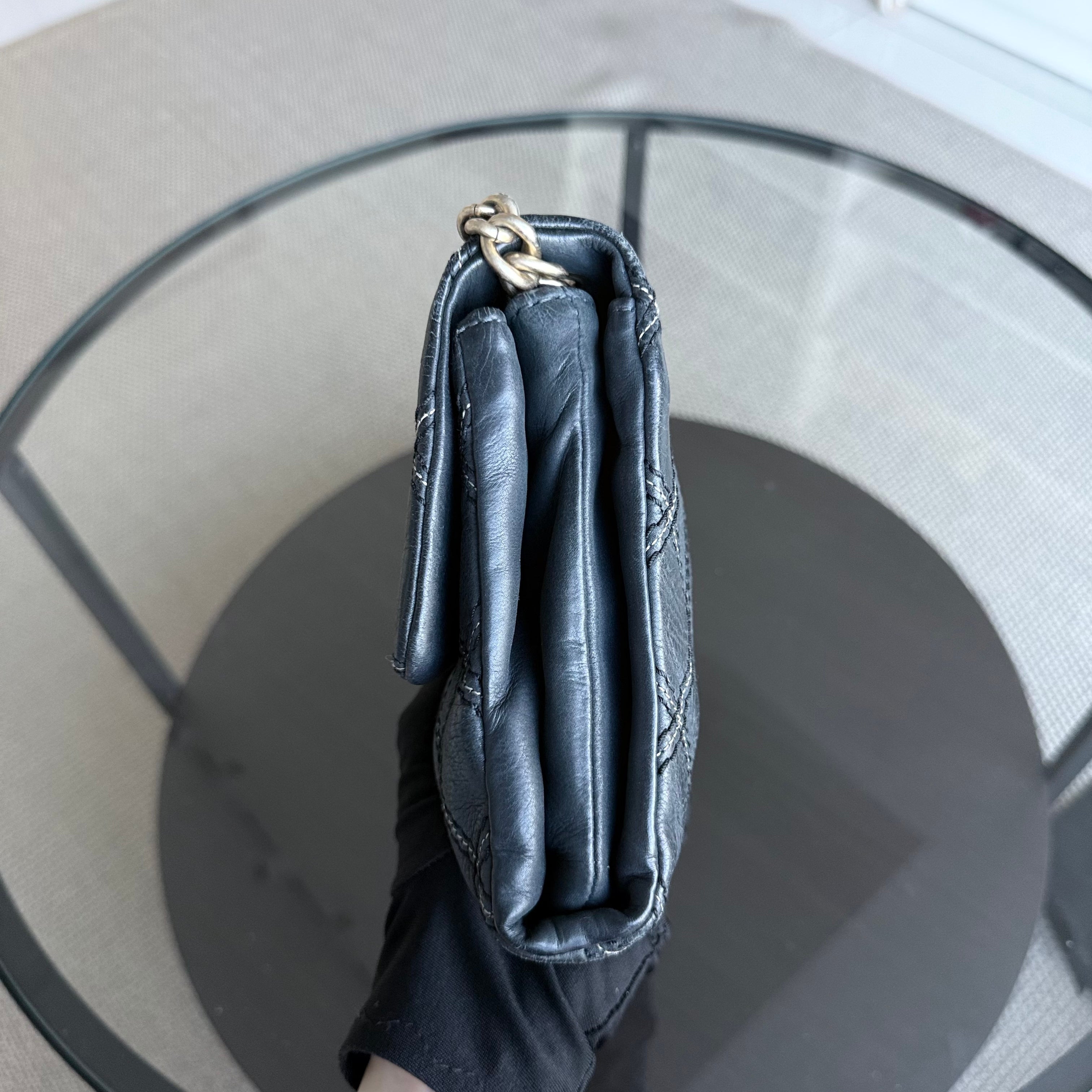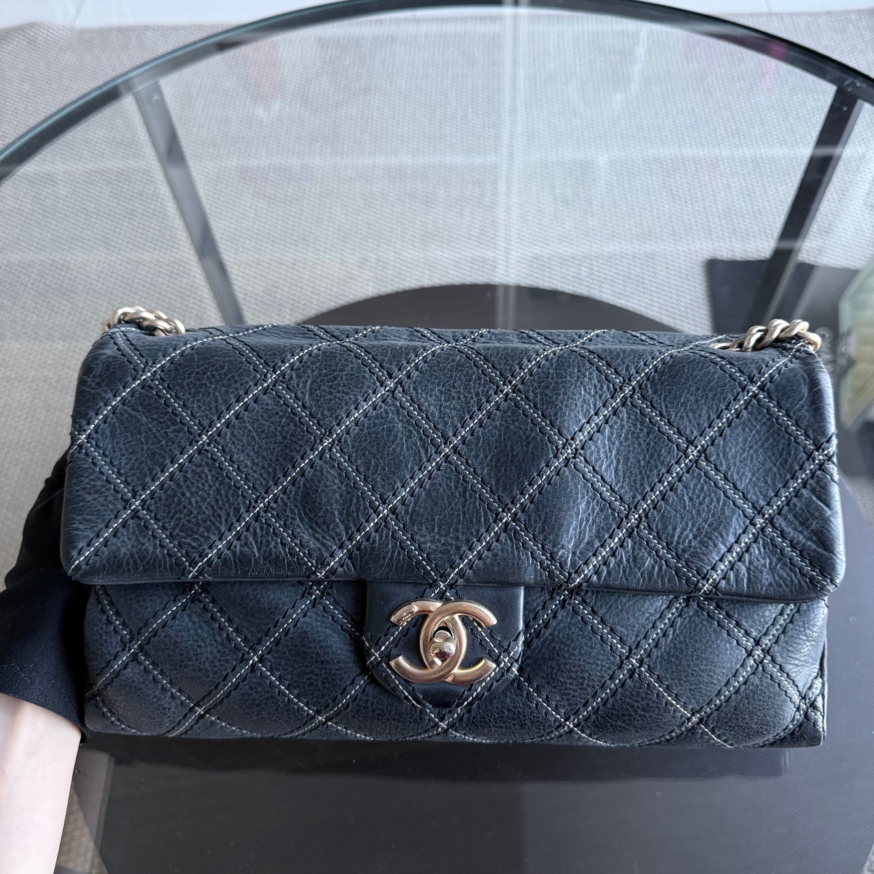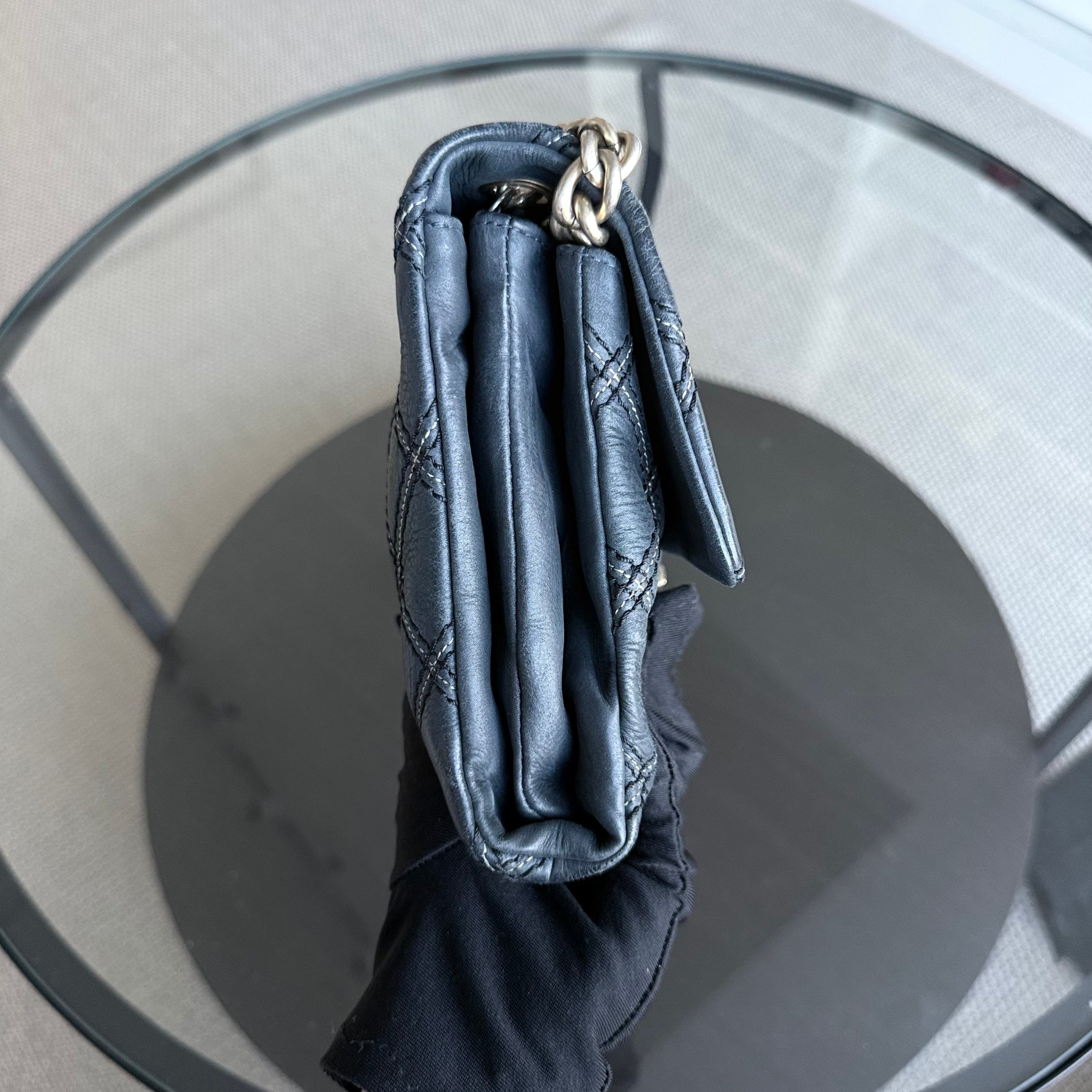 Chanel Seasonal Flap - Iridescent Stitch Quilted Leather Dark Blue Gold Hardware Series 19