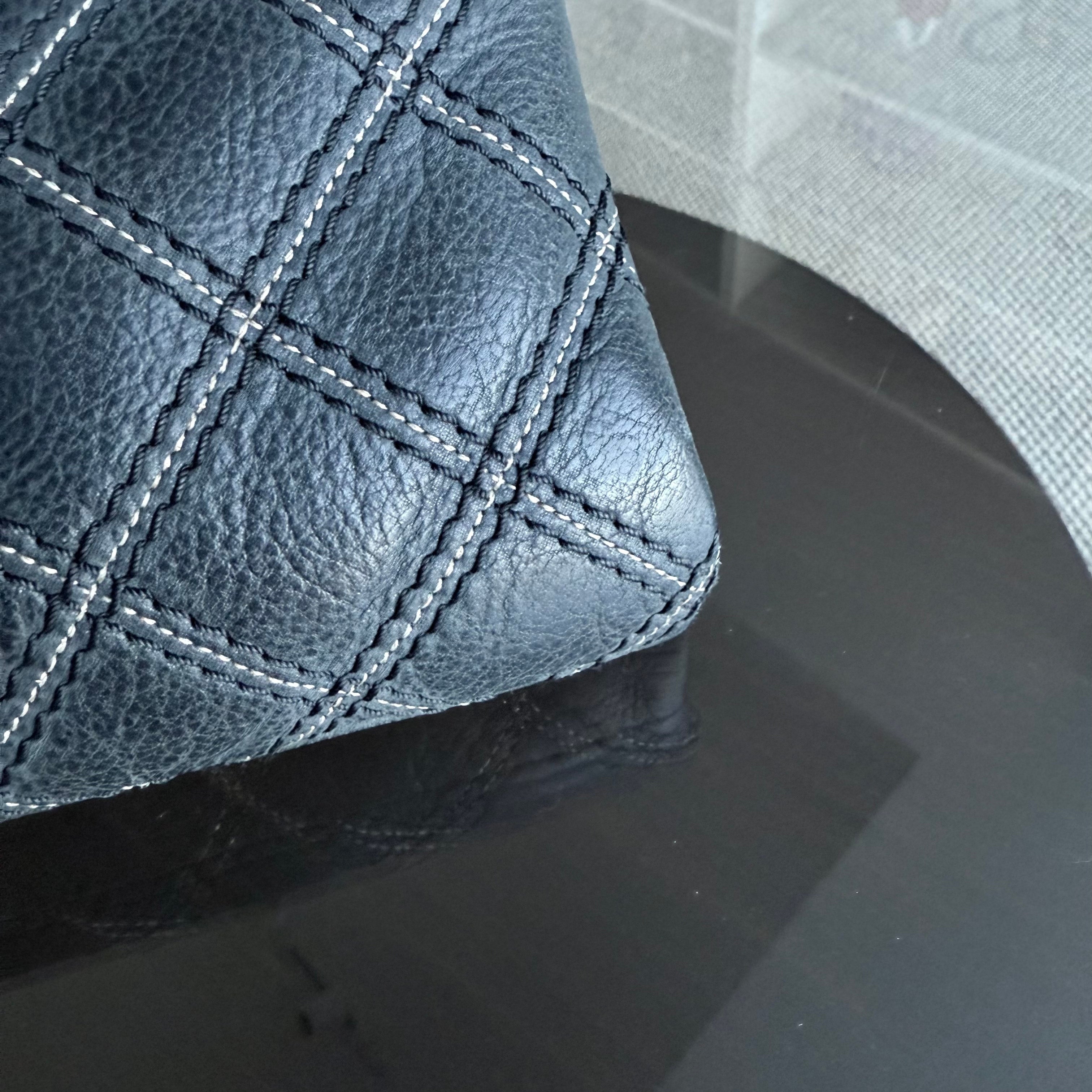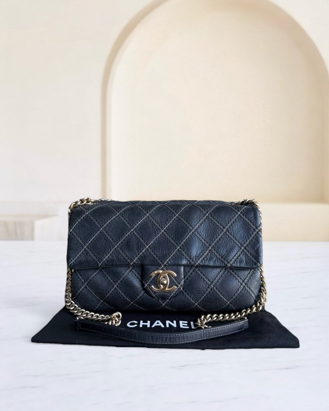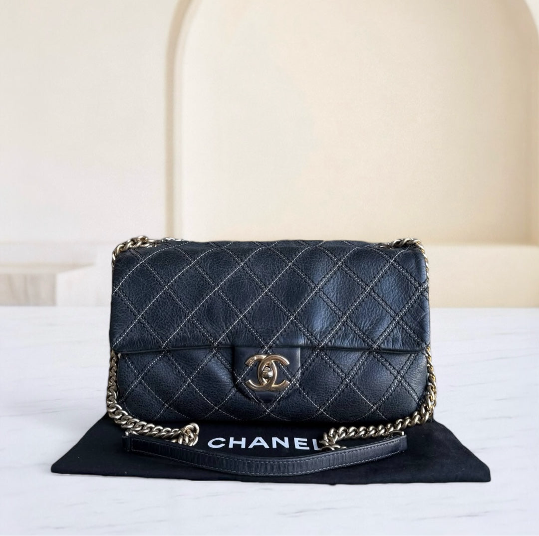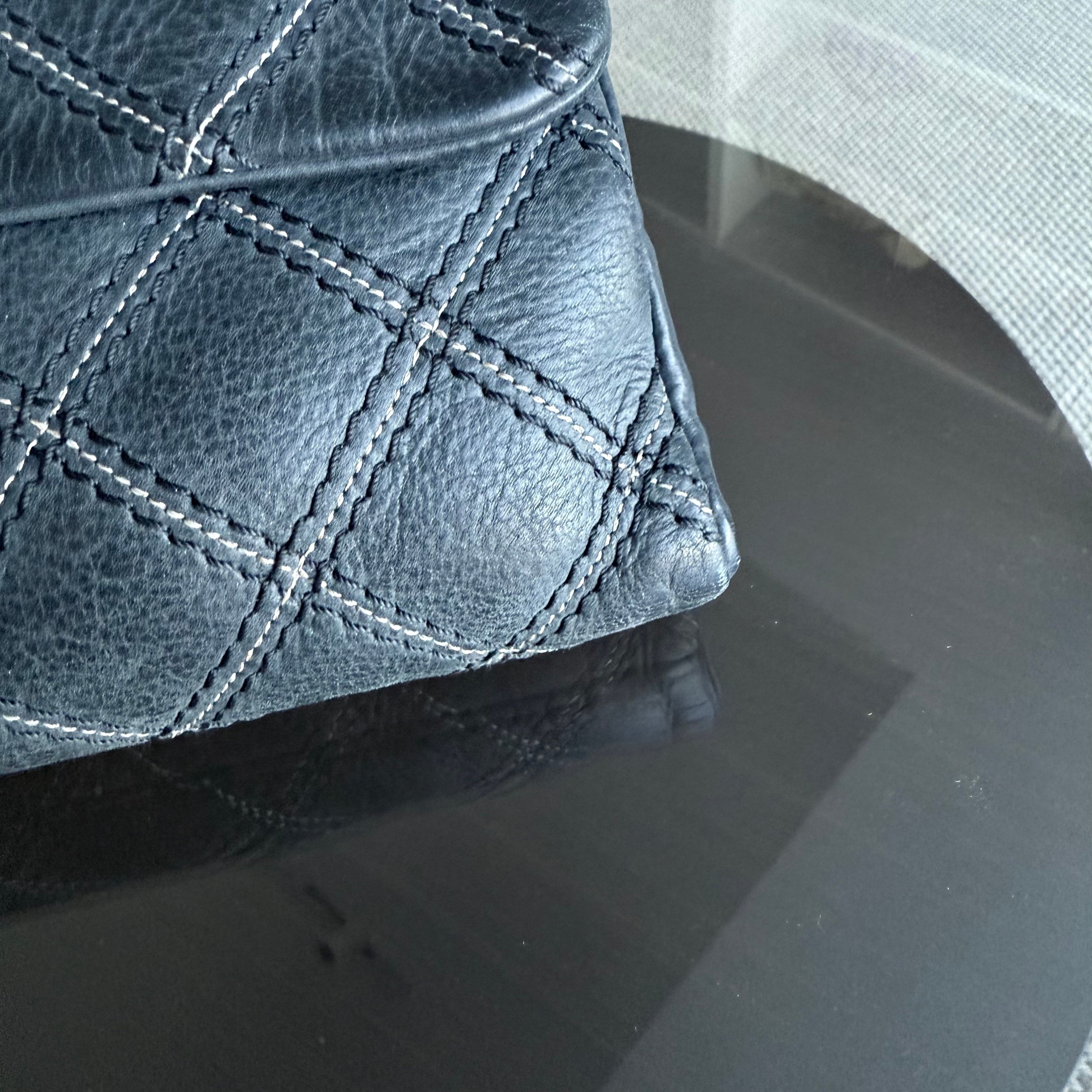 Chanel Seasonal Flap - Iridescent Stitch Quilted Leather Dark Blue Gold Hardware Series 19