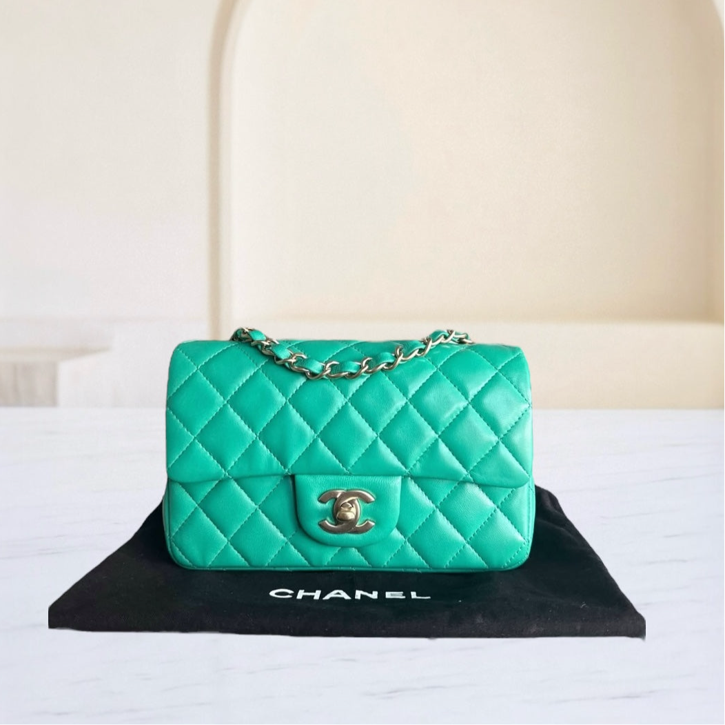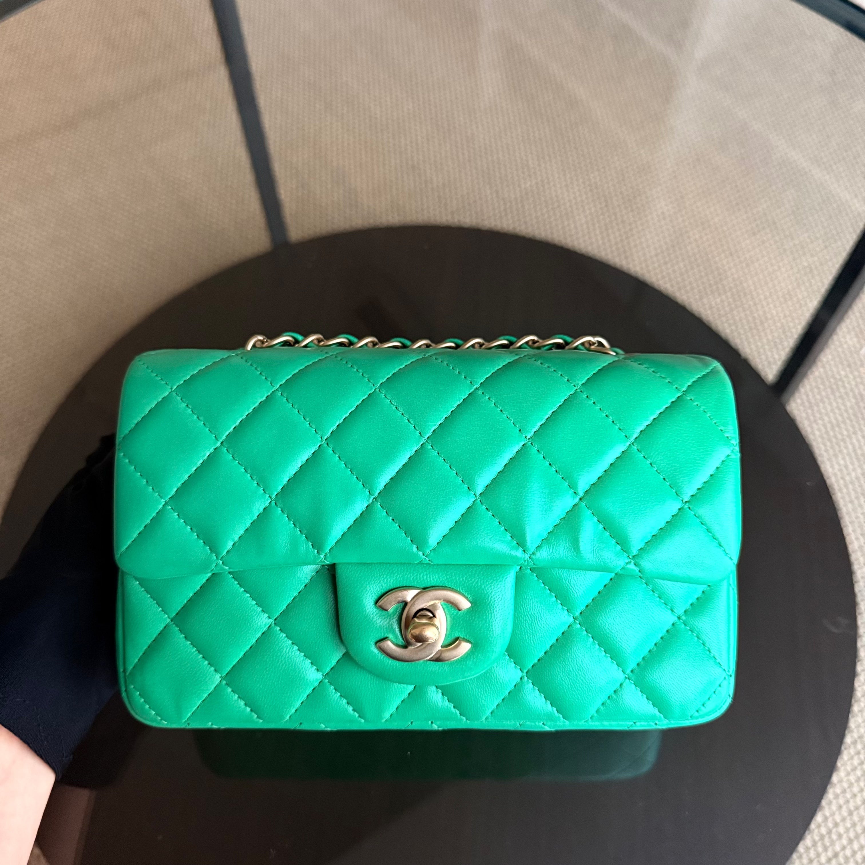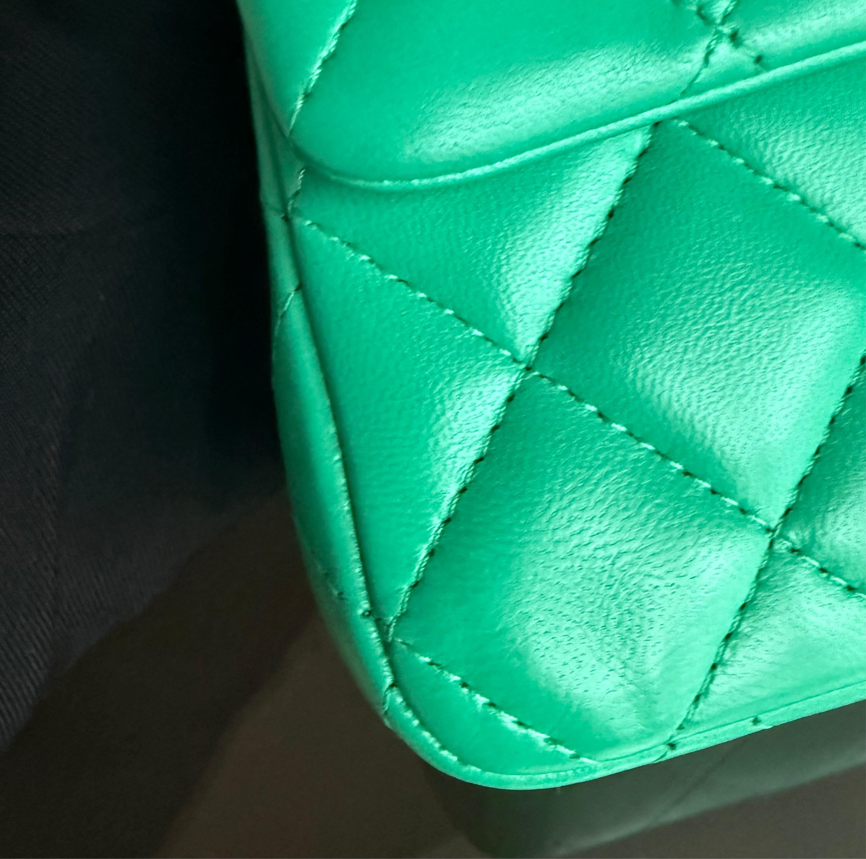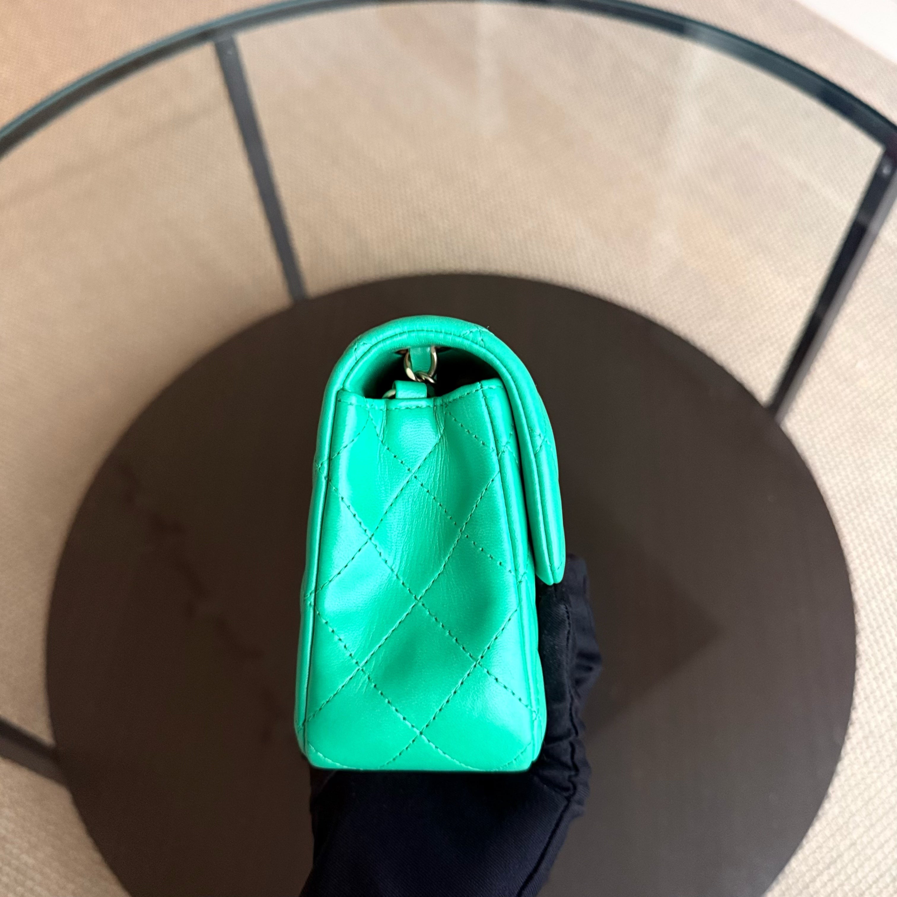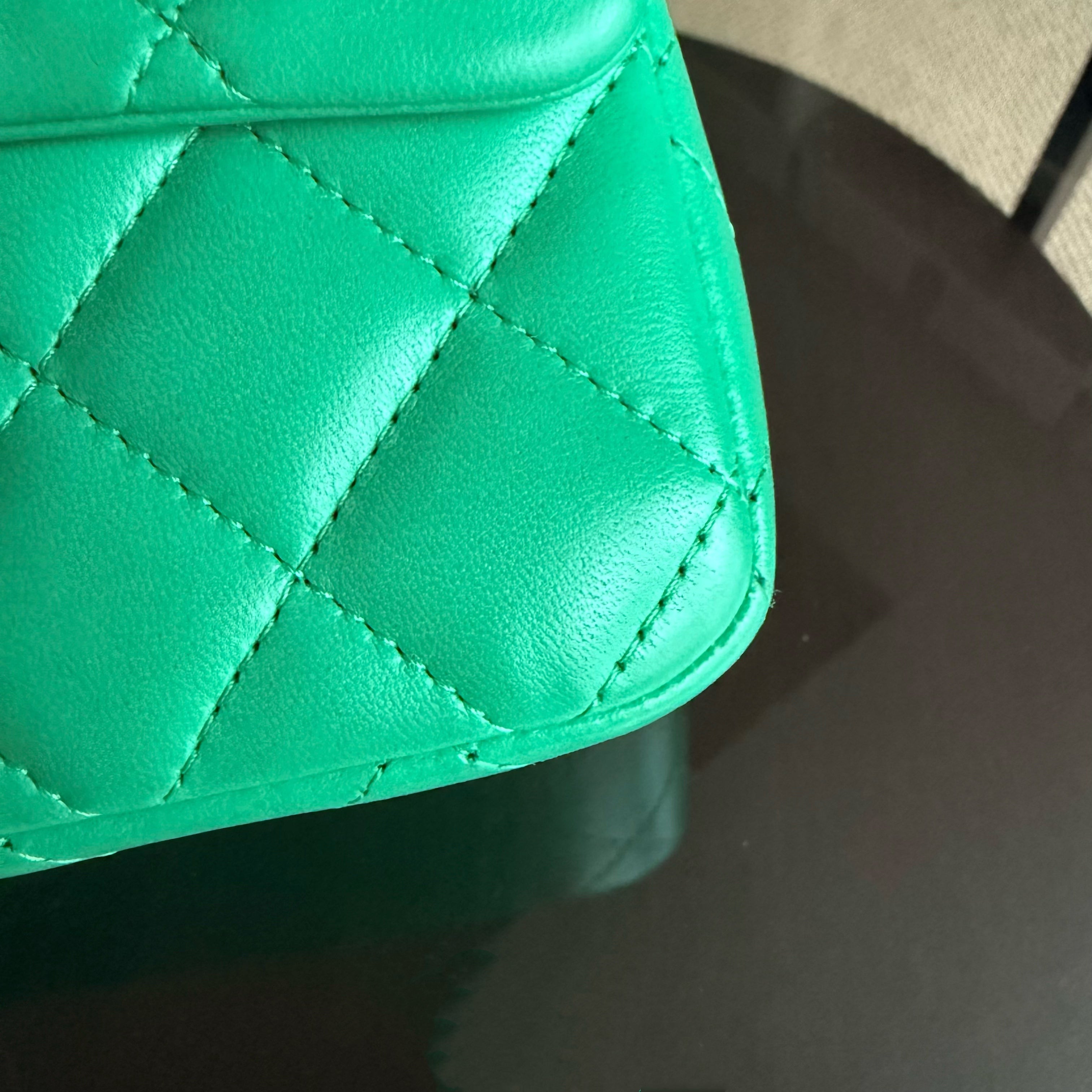 Chanel Classic Flap Mini - 20CM Quilted Lambskin Green Gold Hardware Series 18