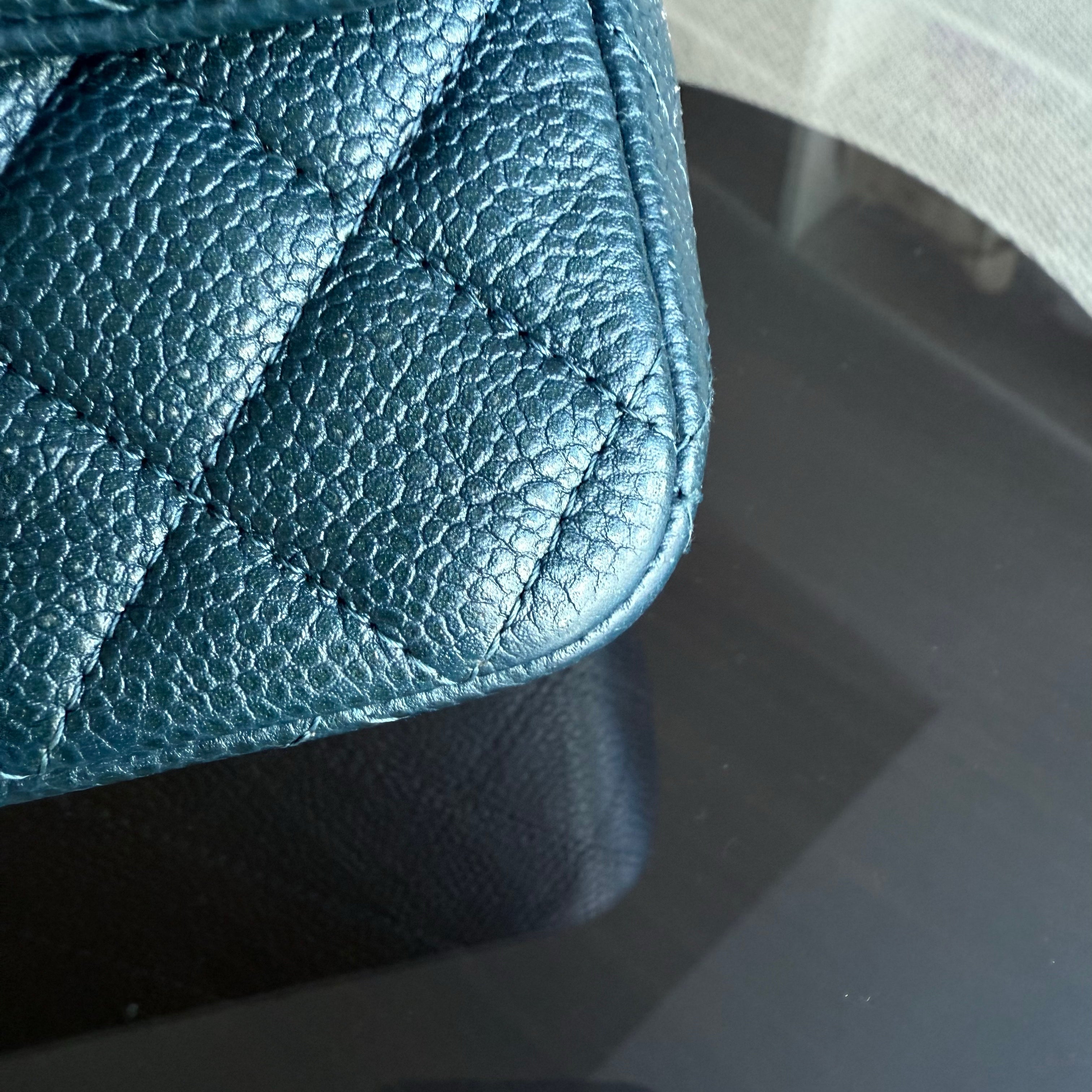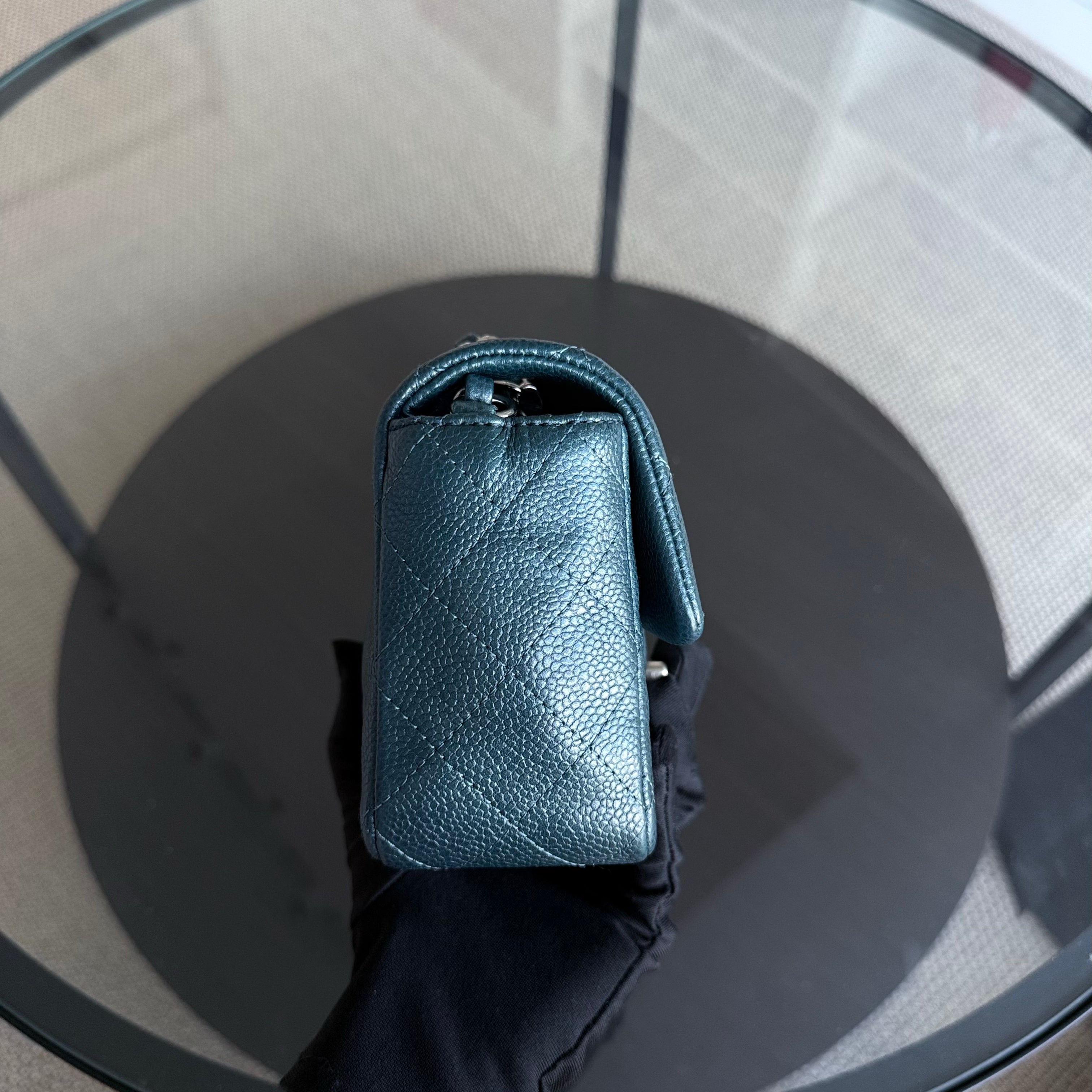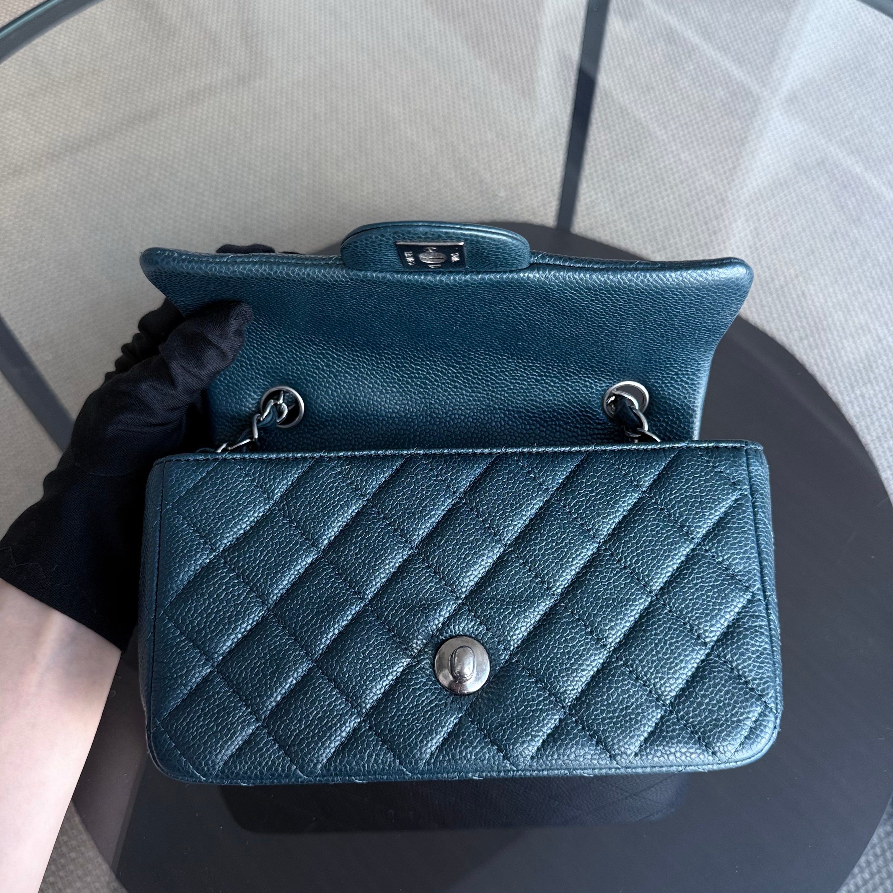 Chanel Classic Flap Mini - 20CM Caviar Quilted Dark Blue Green Silver Hardware Series 20