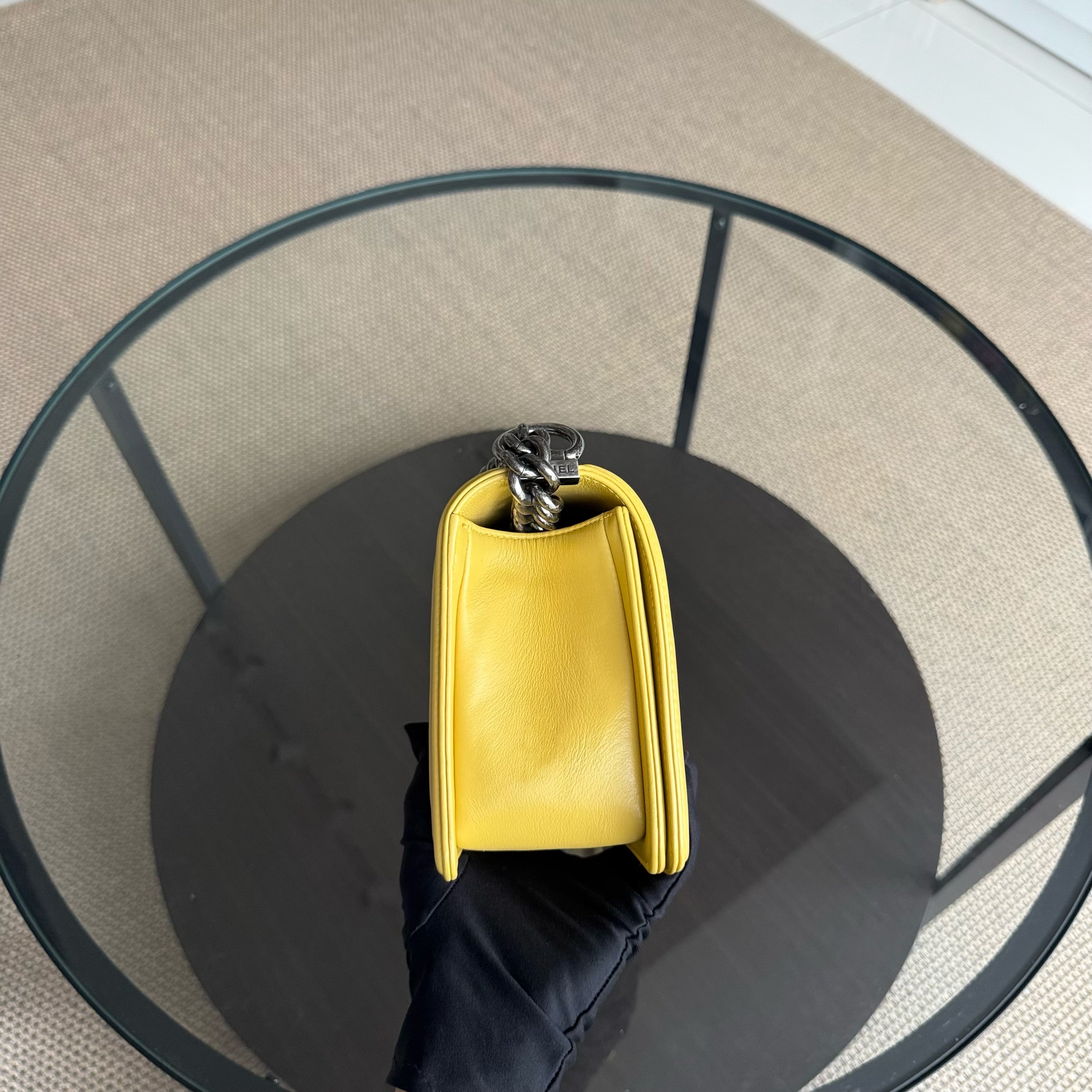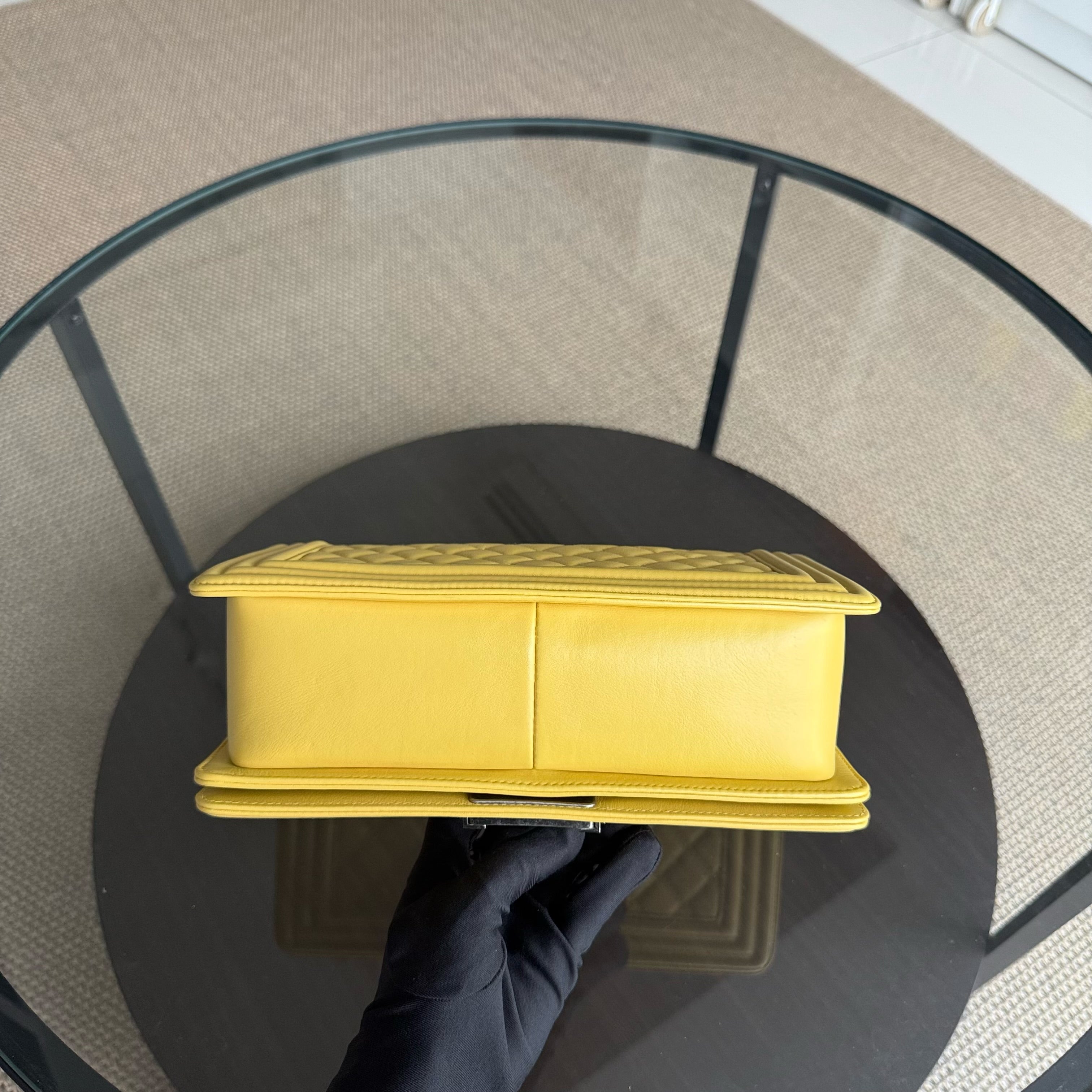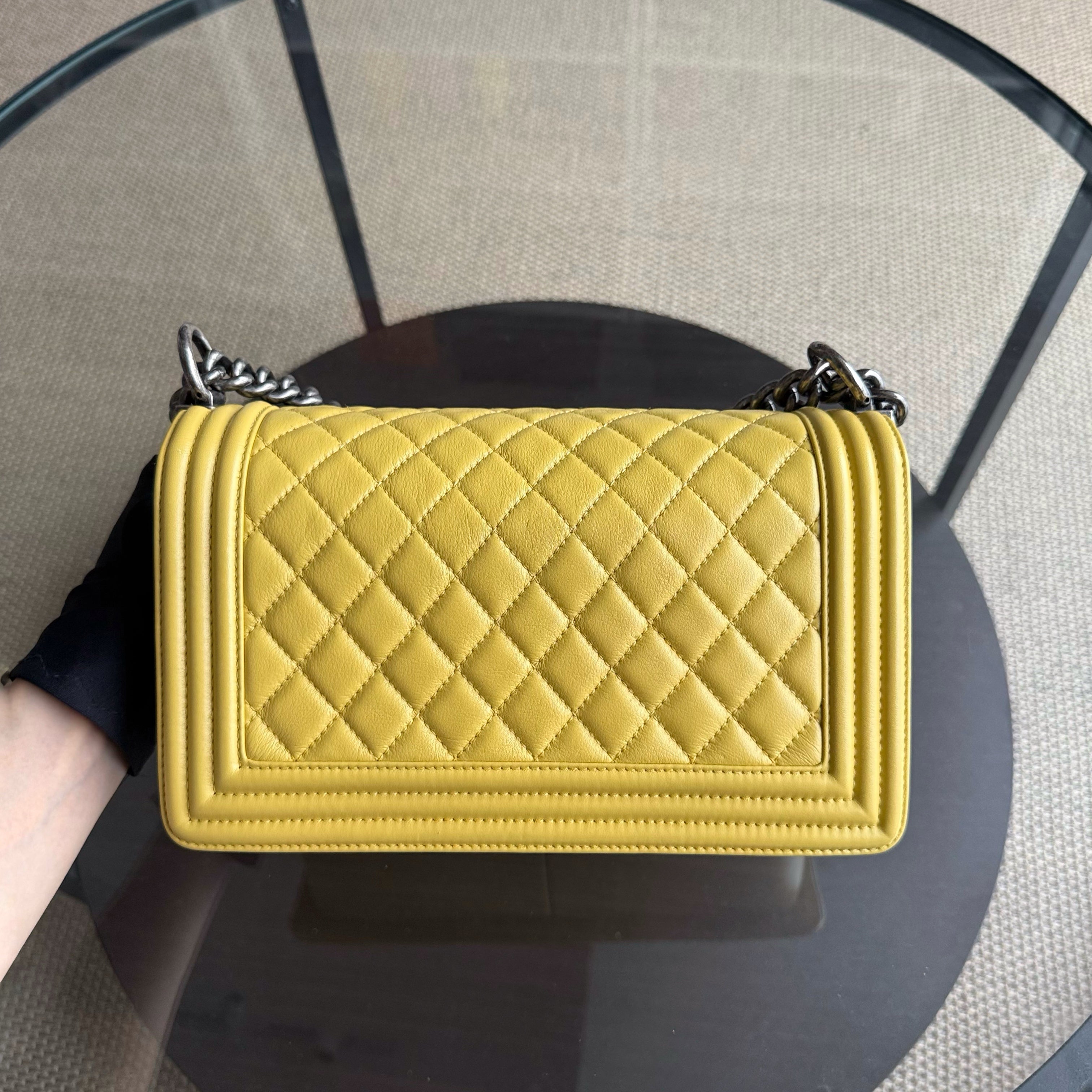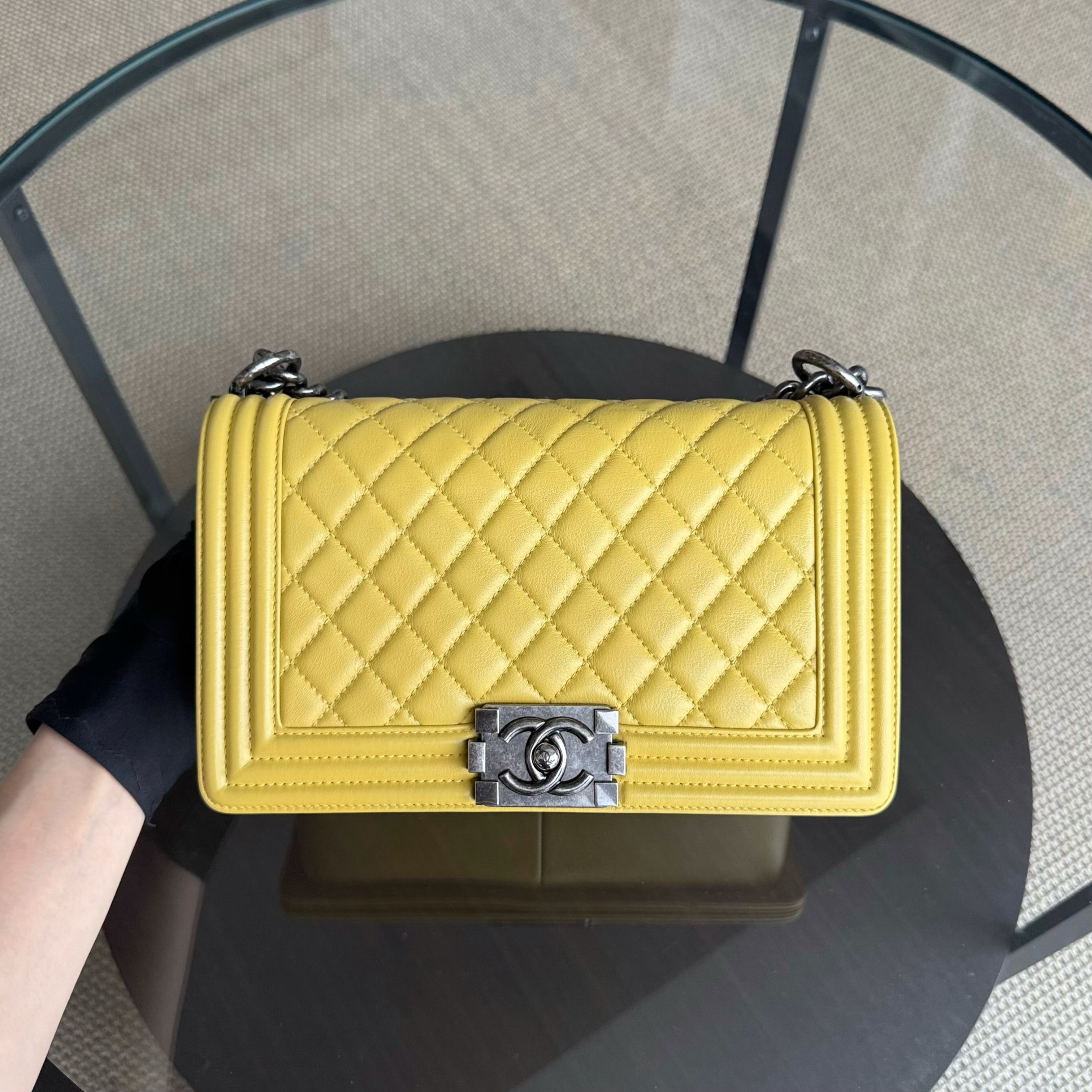 Chanel Boy Medium - Quilted Calfskin Yellow Ruthenium Silver Hardware Series 23