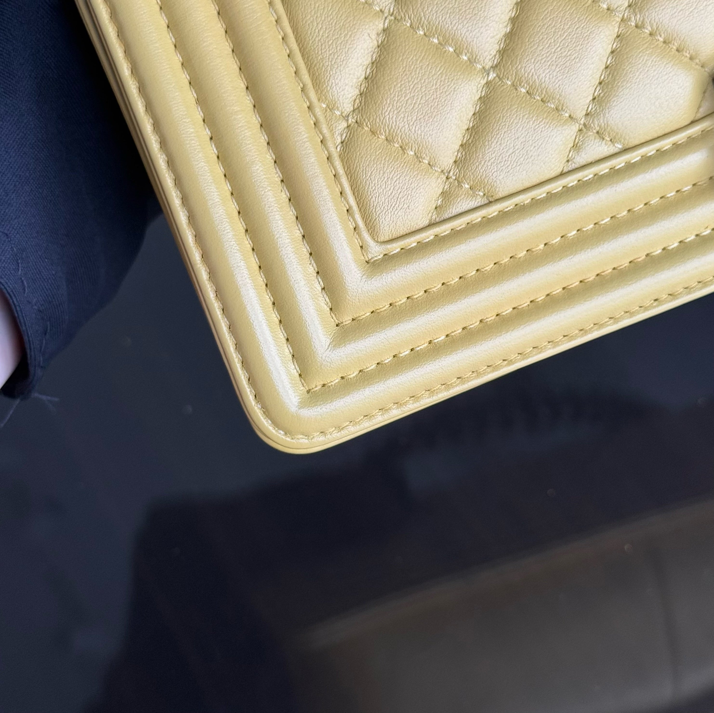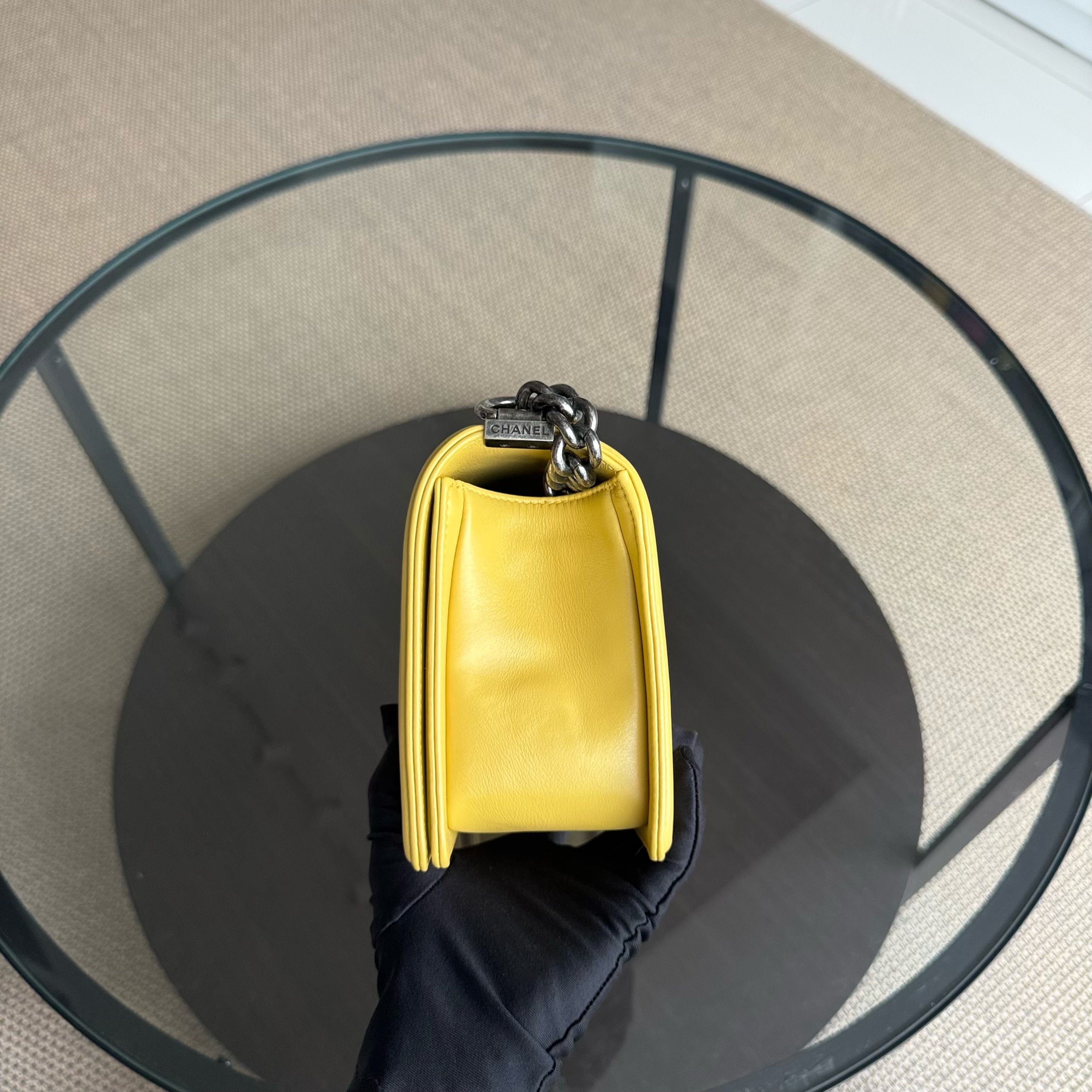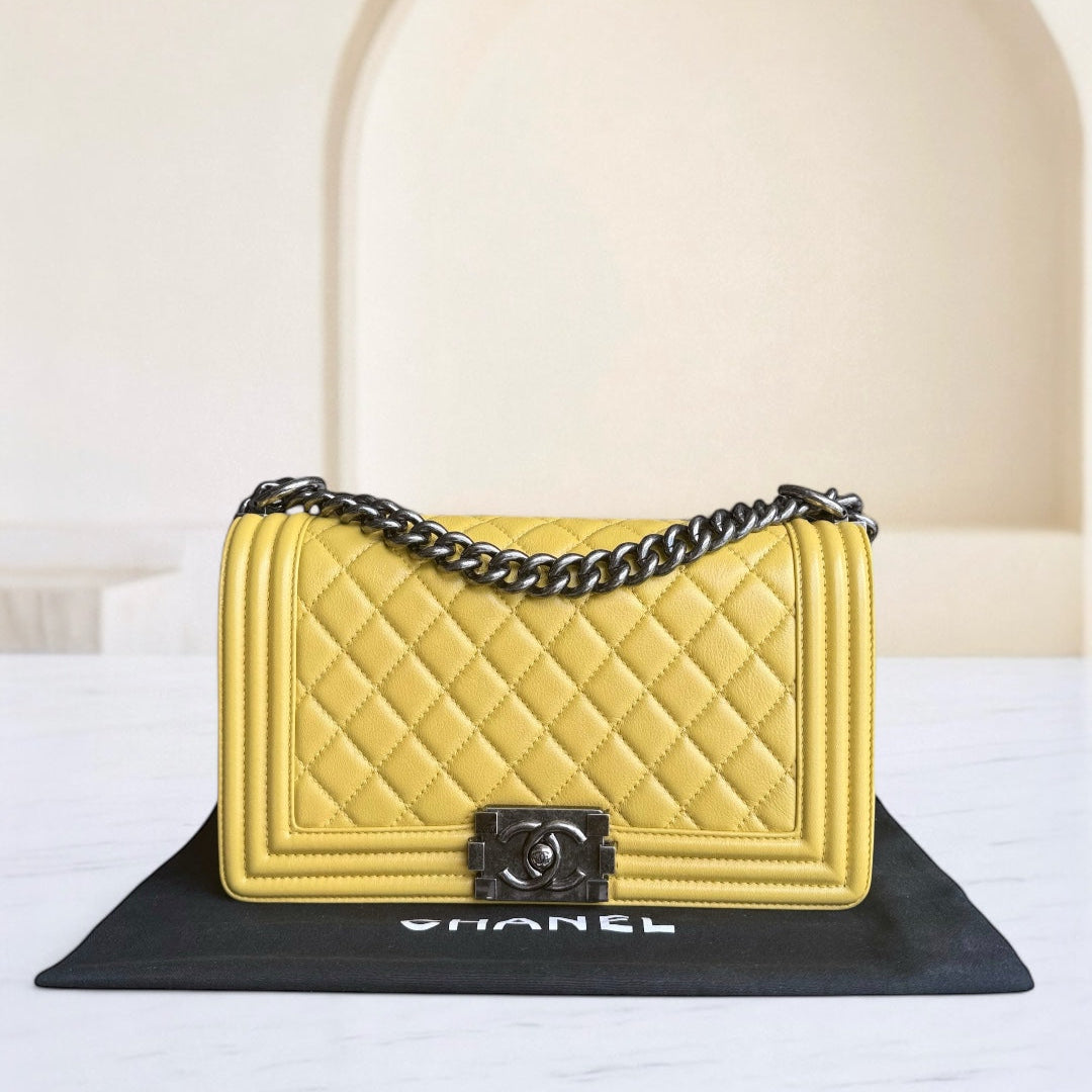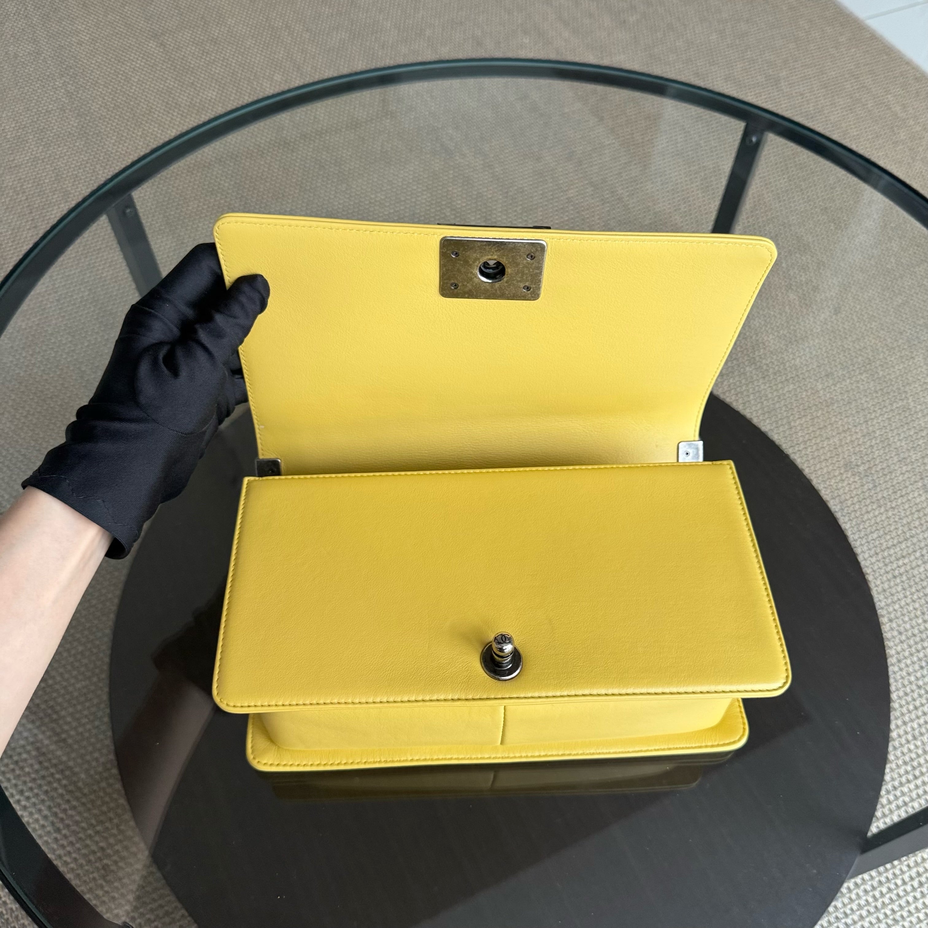 Chanel Boy Medium - Quilted Calfskin Yellow Ruthenium Silver Hardware Series 23