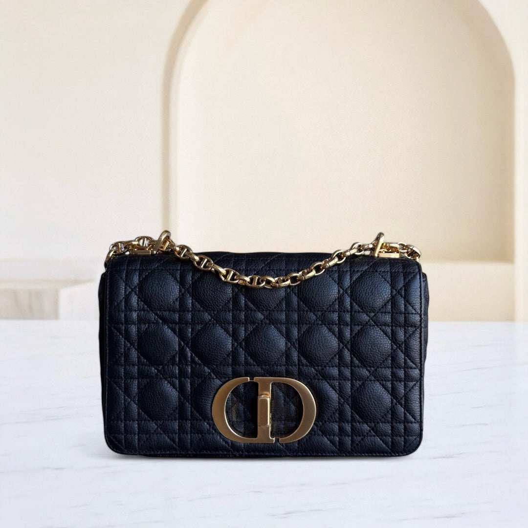 Dior Caro Medium - Cannage Grained Calfskin Black Gold Hardware