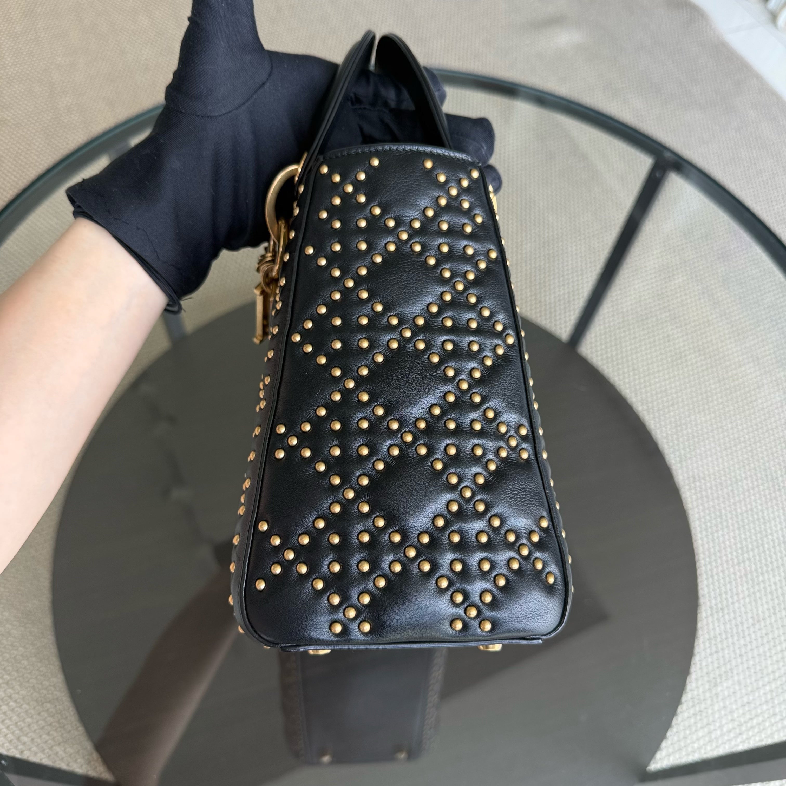 Dior Lady Medium Flap - Studded Cannage Calfskin Black Gold Hardware