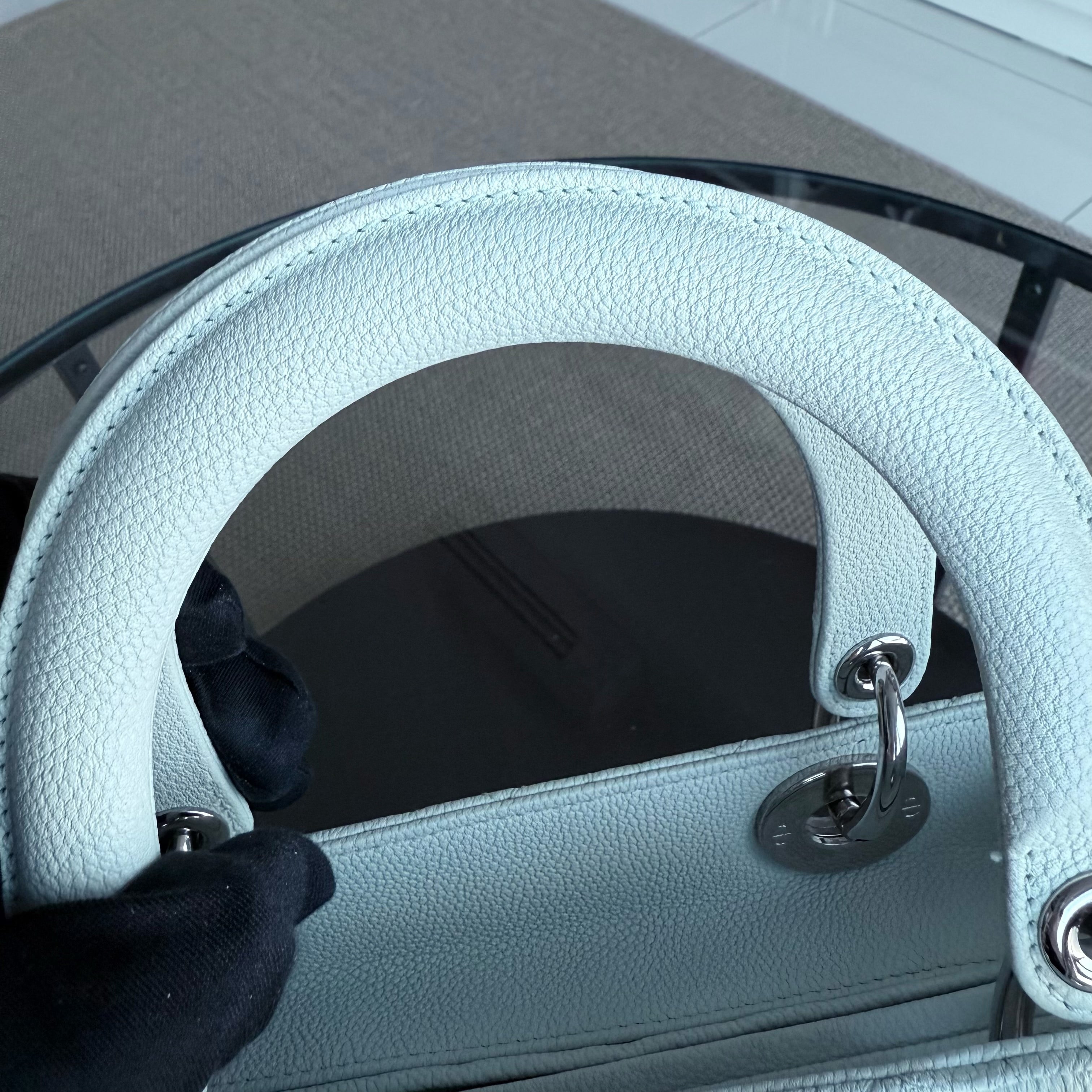 Dior Lady Medium Caviar - Grained Calfskin Cannage Glacier White Ice Blue Silver Hardware