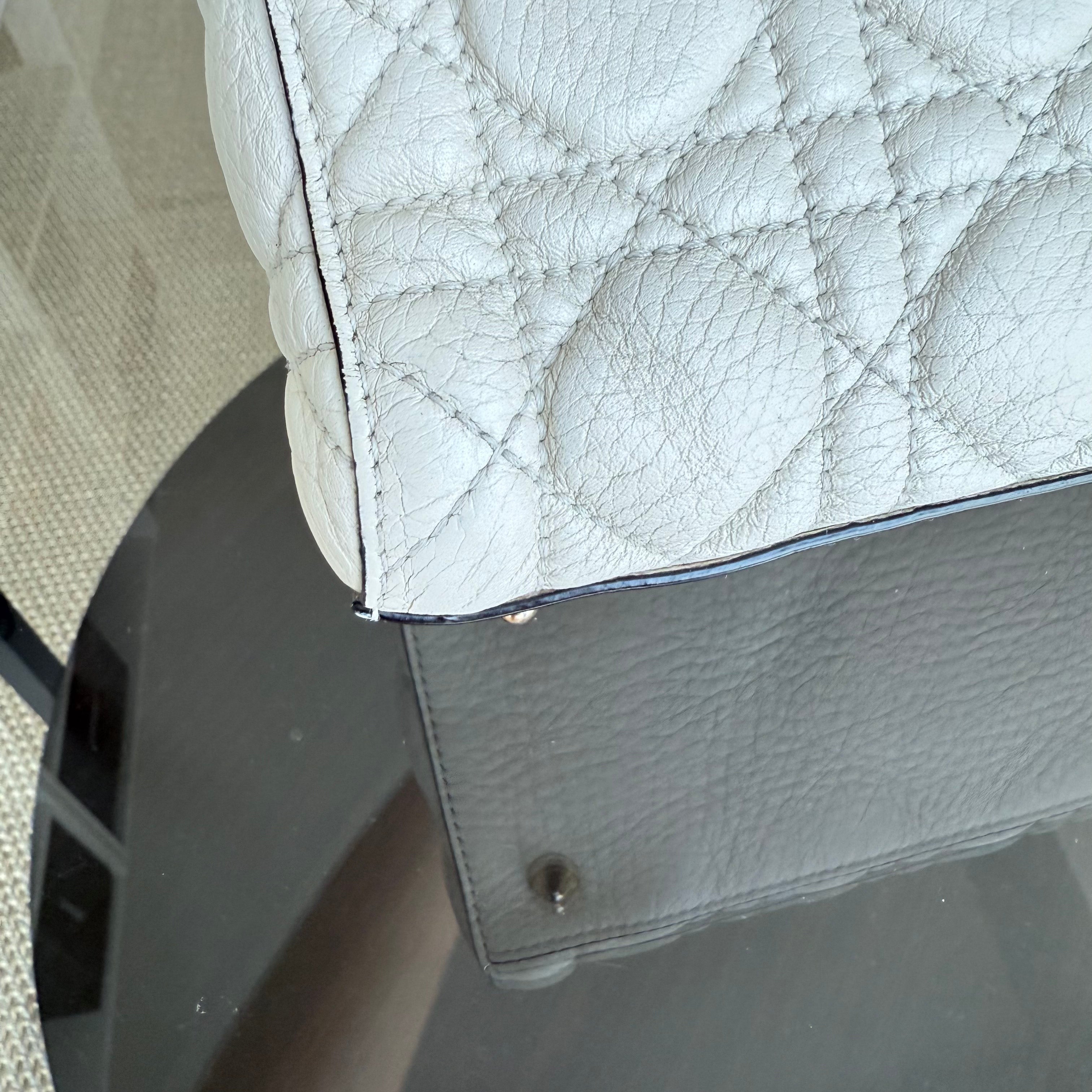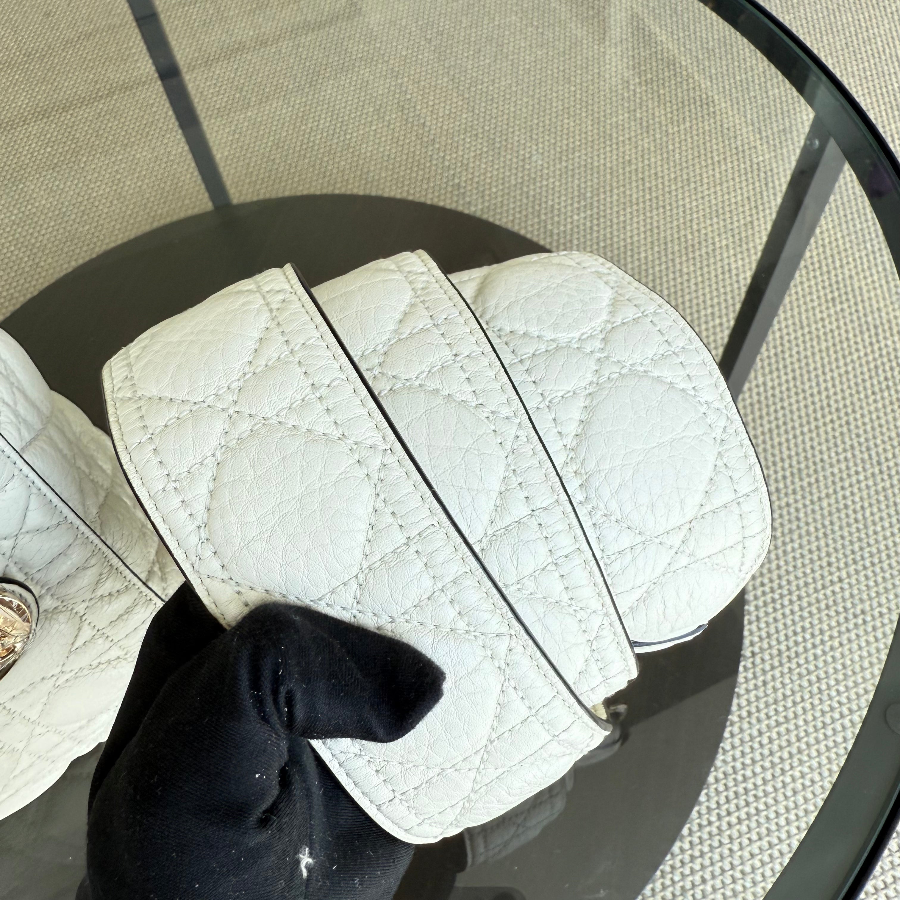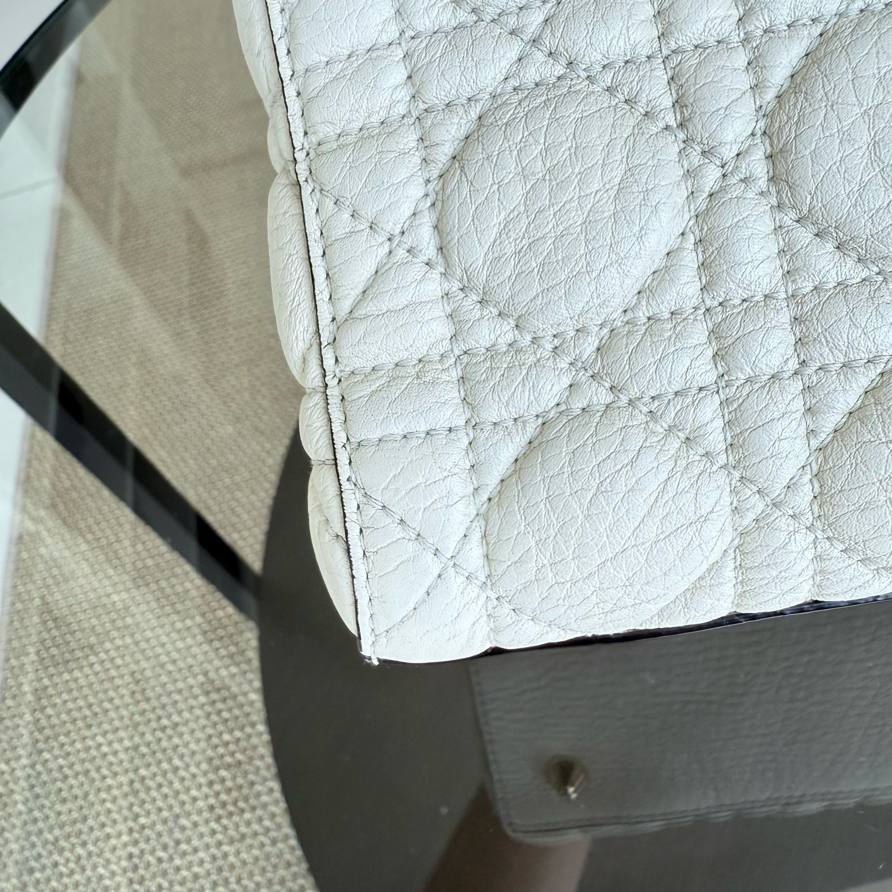 Dior Lady Medium Flap - Calfskin Cannage White Gold Hardware
