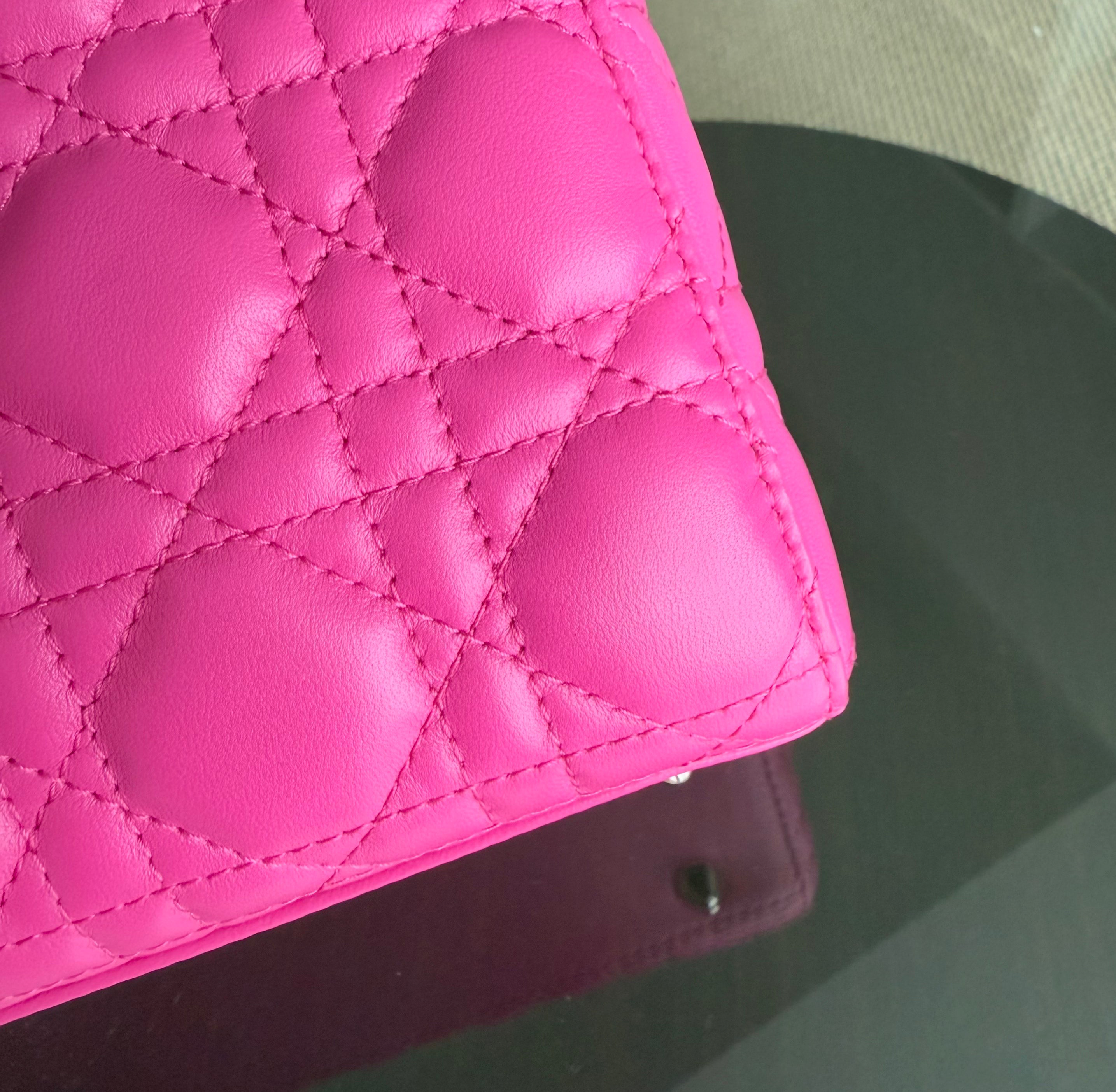 Dior Lady Small - Cannage Lambskin Barbie Pink Silver Hardware