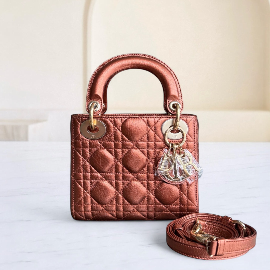 Dior Lady Mini - Cannage Calfskin Brown Gold Hardware Adjustable Strap