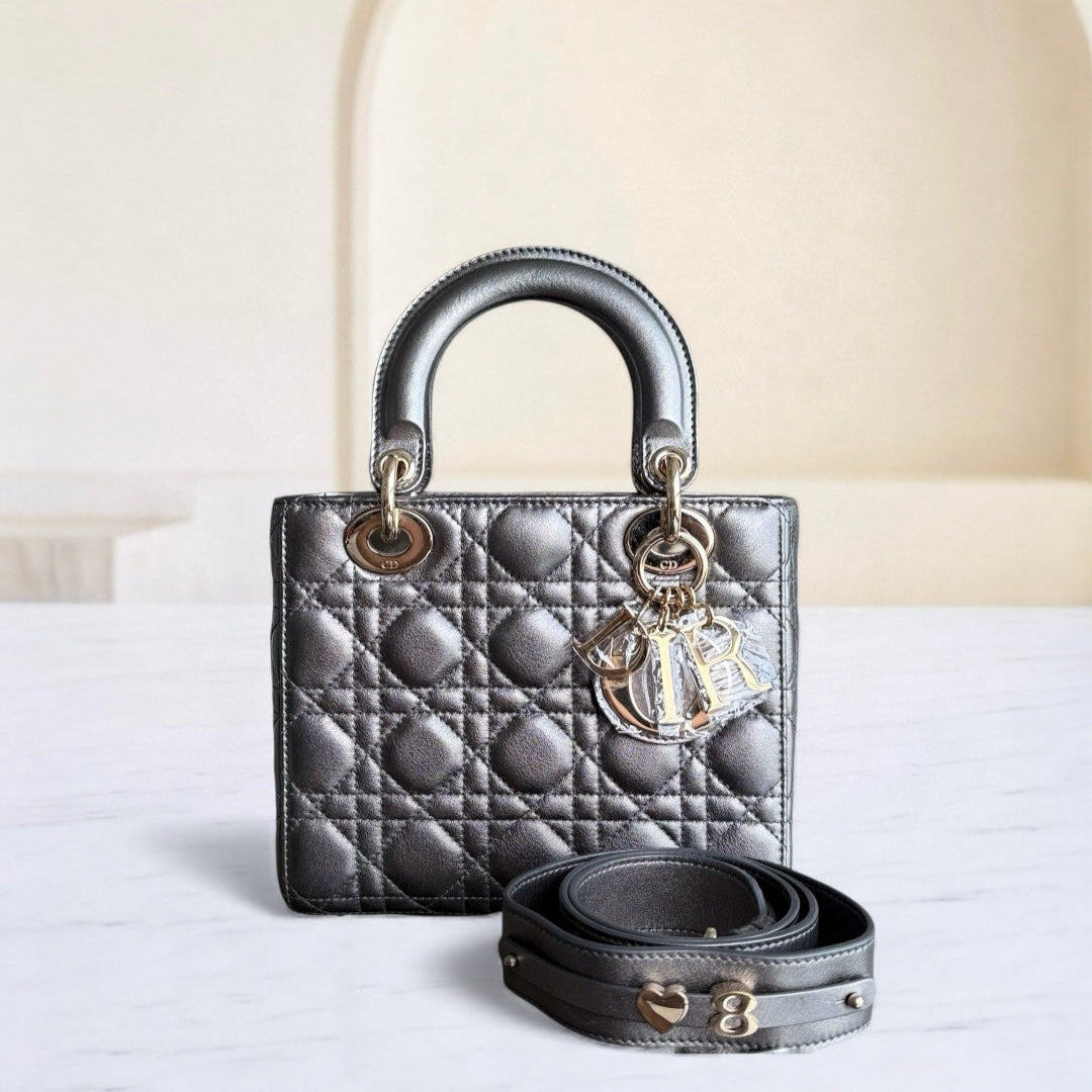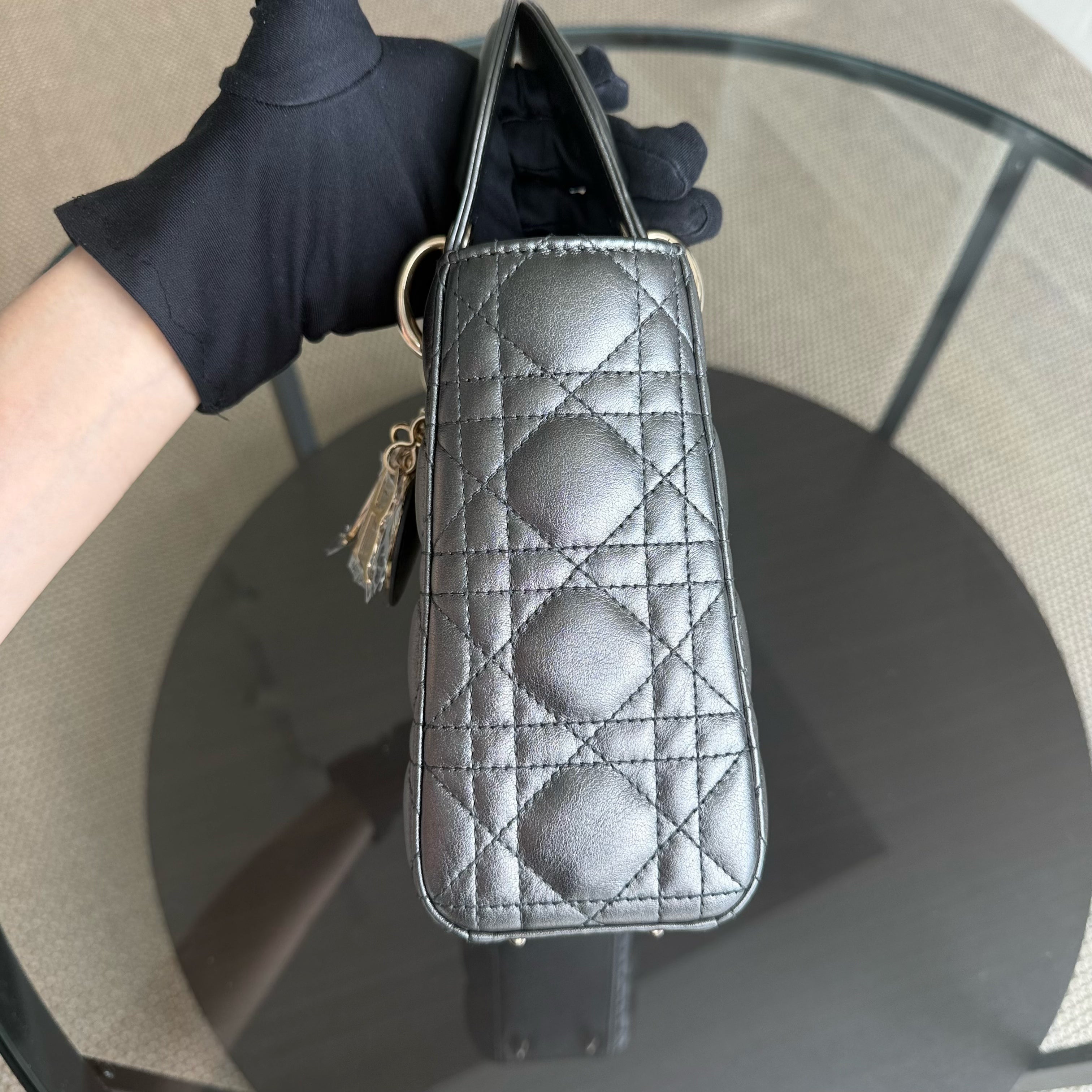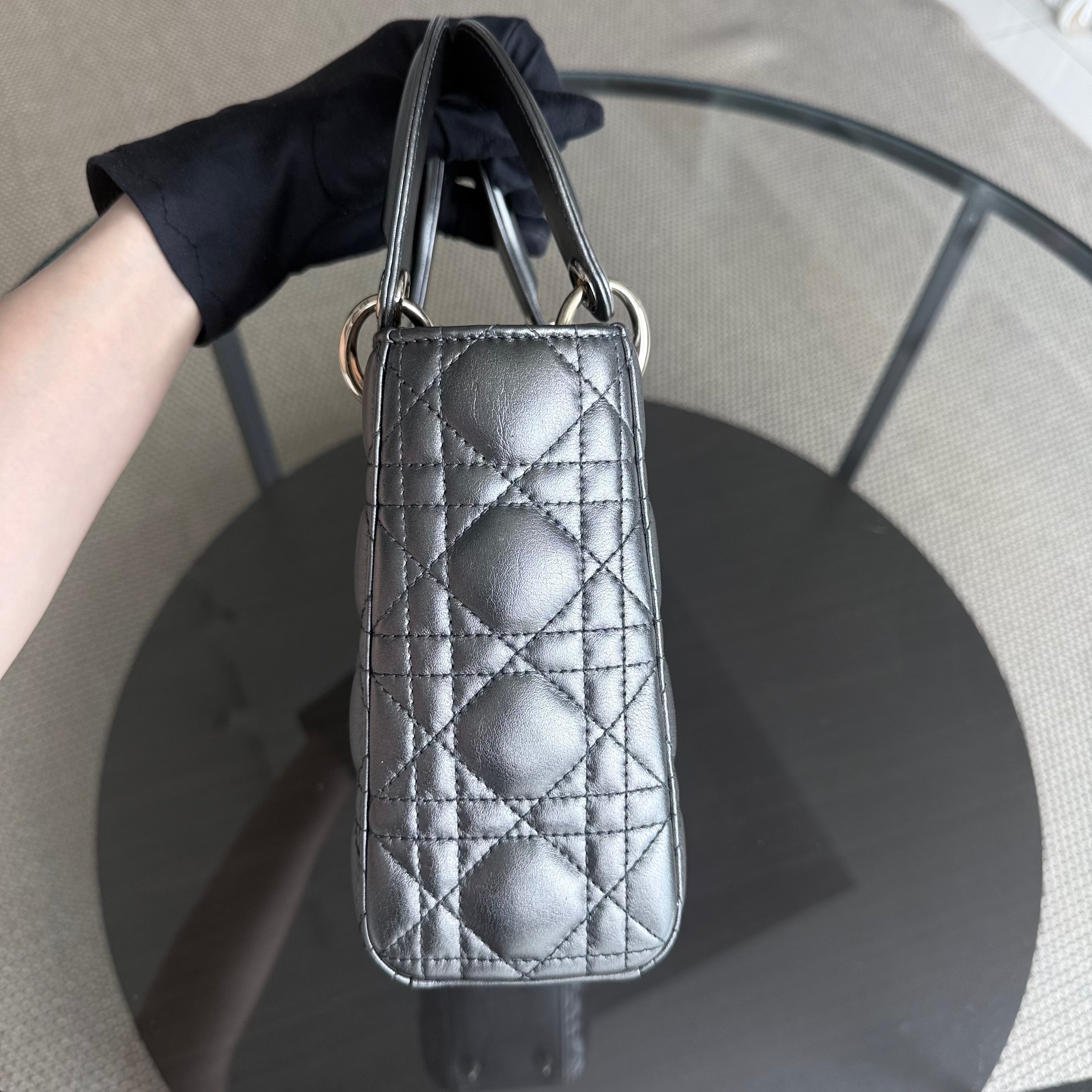 Dior Lady Small MyABC - Cannage calfskin Metallic Dark Grey Gunmetal Gold Hardware ABC