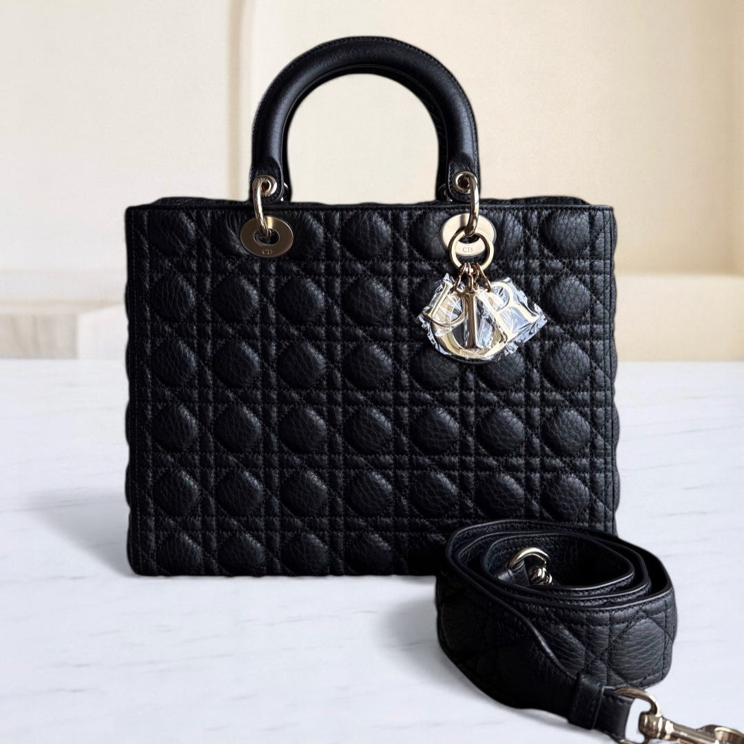 *Flap, Grained Calfskin* Lady Large Flap Grained Calfskin Cannage Black GHW