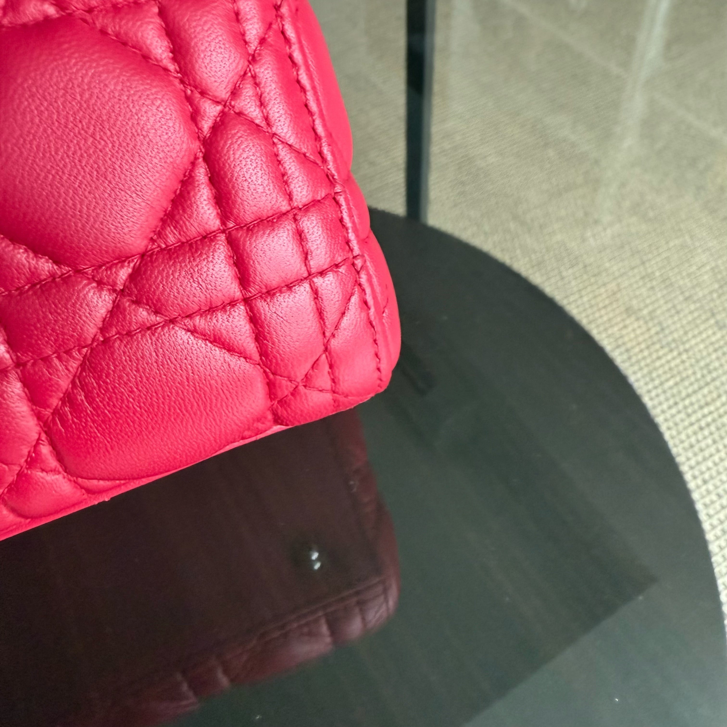Dior Lady Medium - Cannage Lambskin Red Silver Hardware