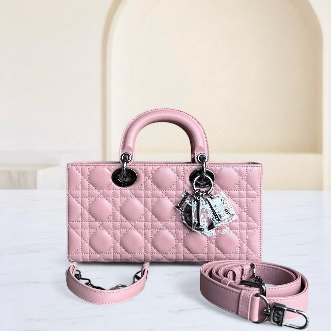 Dior Lady D-Joy Medium - Cannage Lambskin Sakura Pink Black Hardware