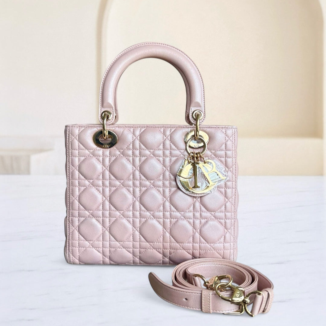 Dior Lady Medium Cannage Lambskin Light Pink Gold Hardware