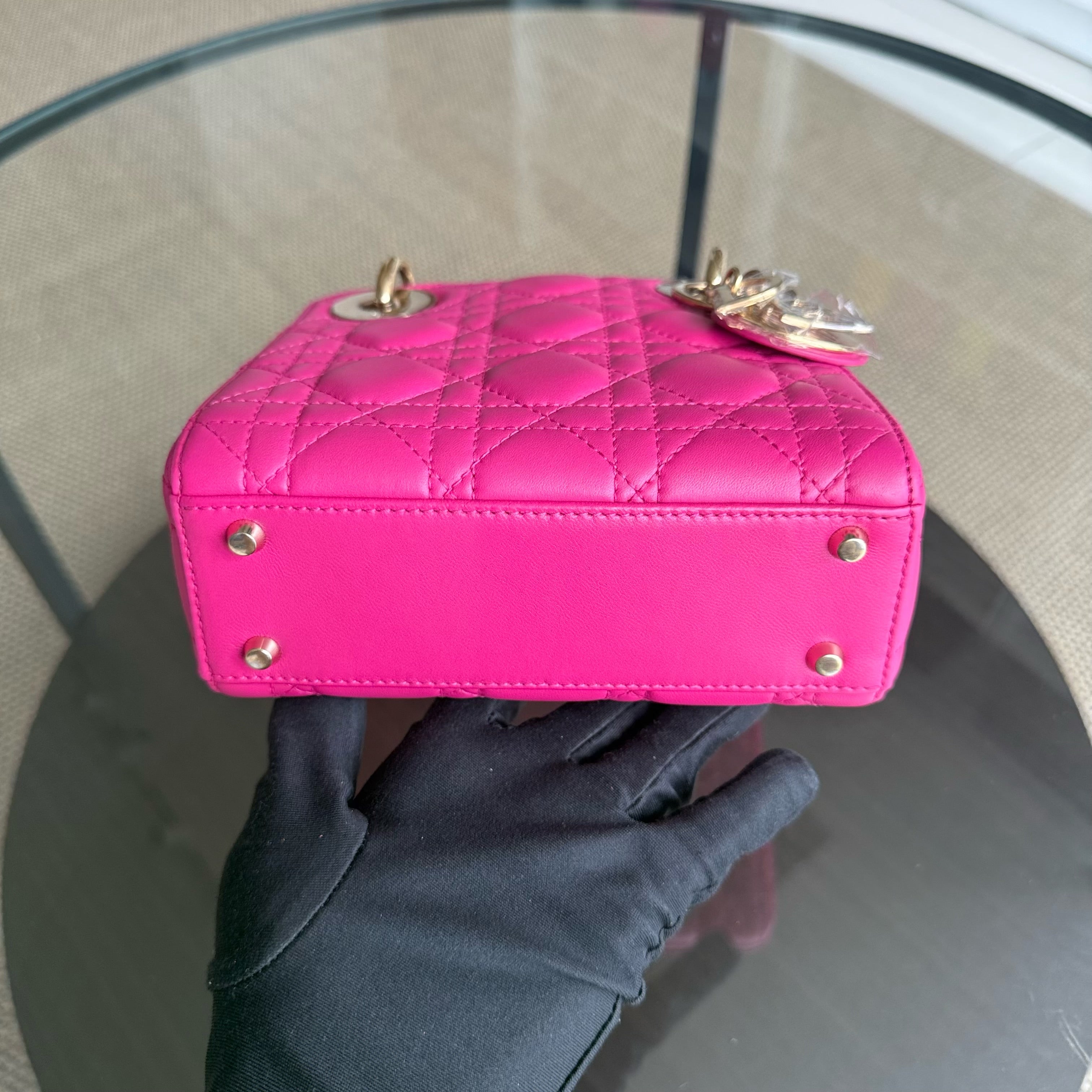 Dior Lady Mini - Cannage Lambskin Hot Pink Gold Hardware Adjustable Strap