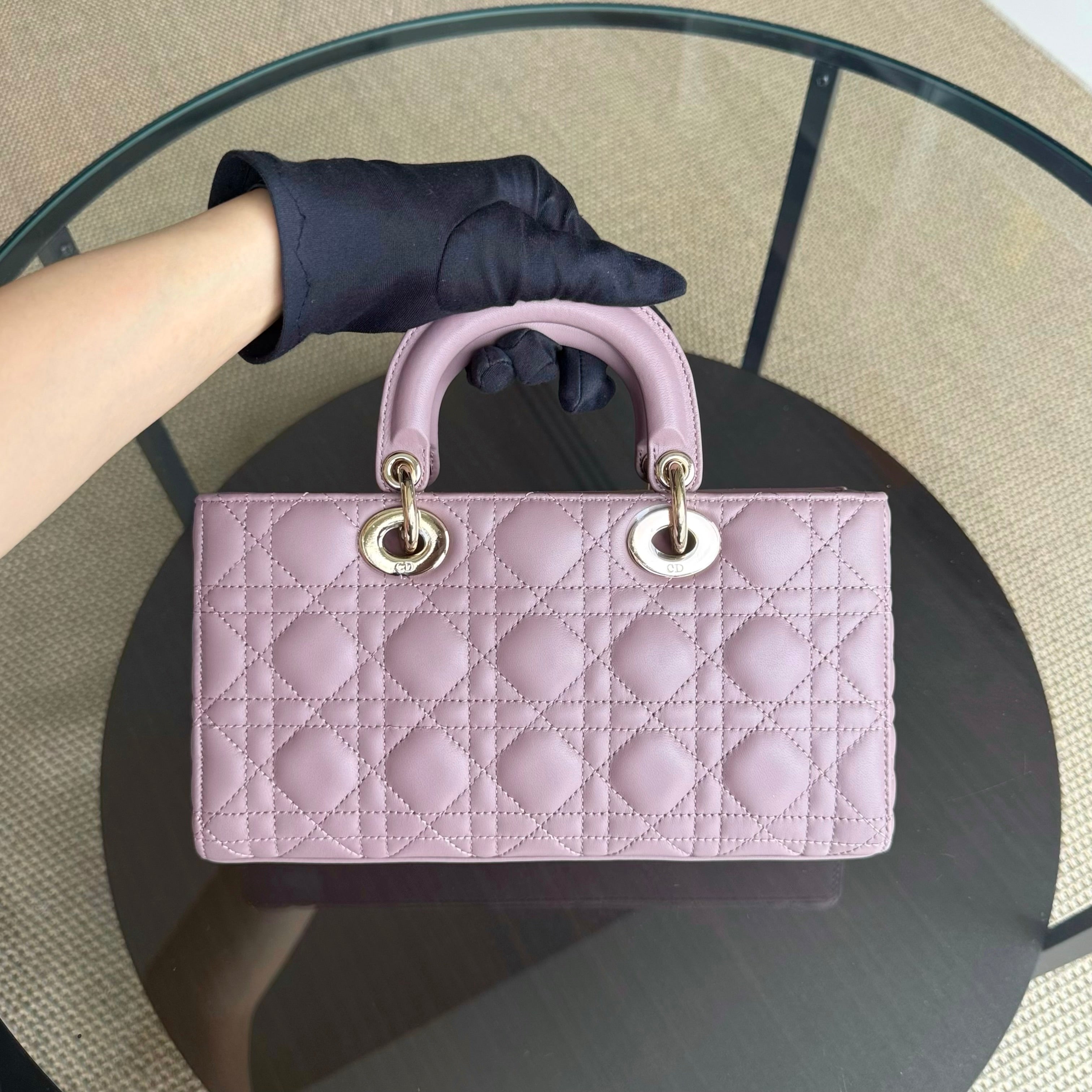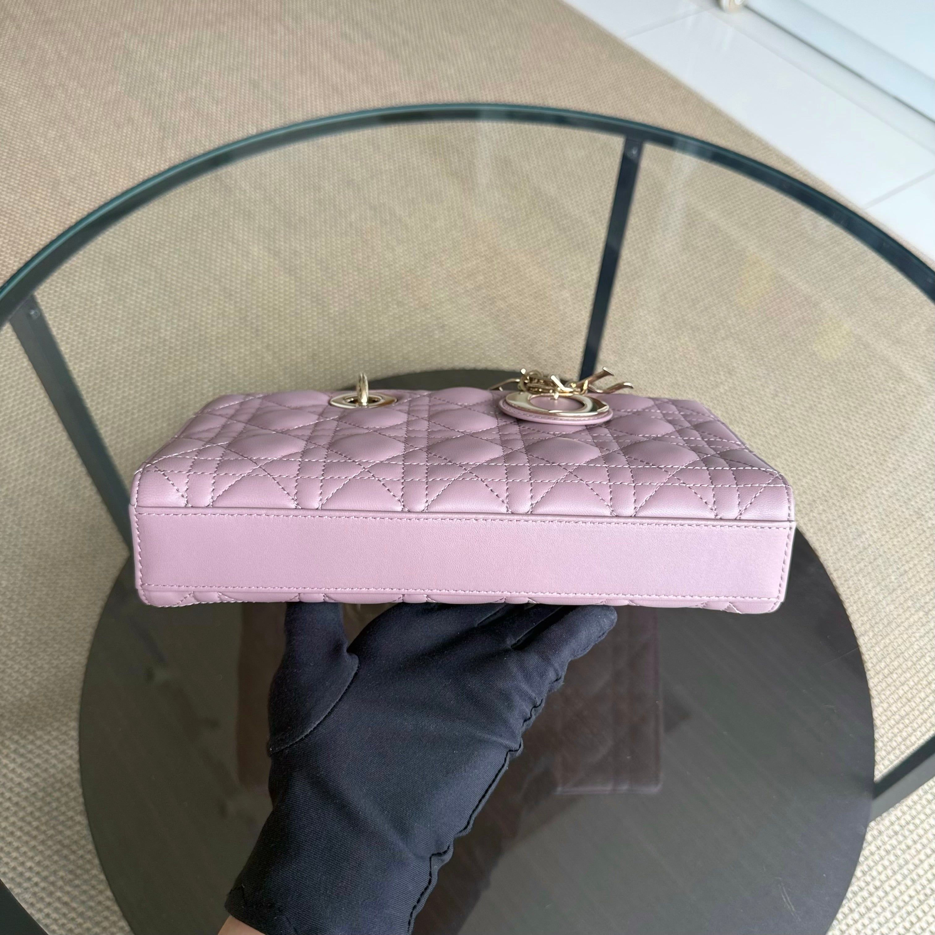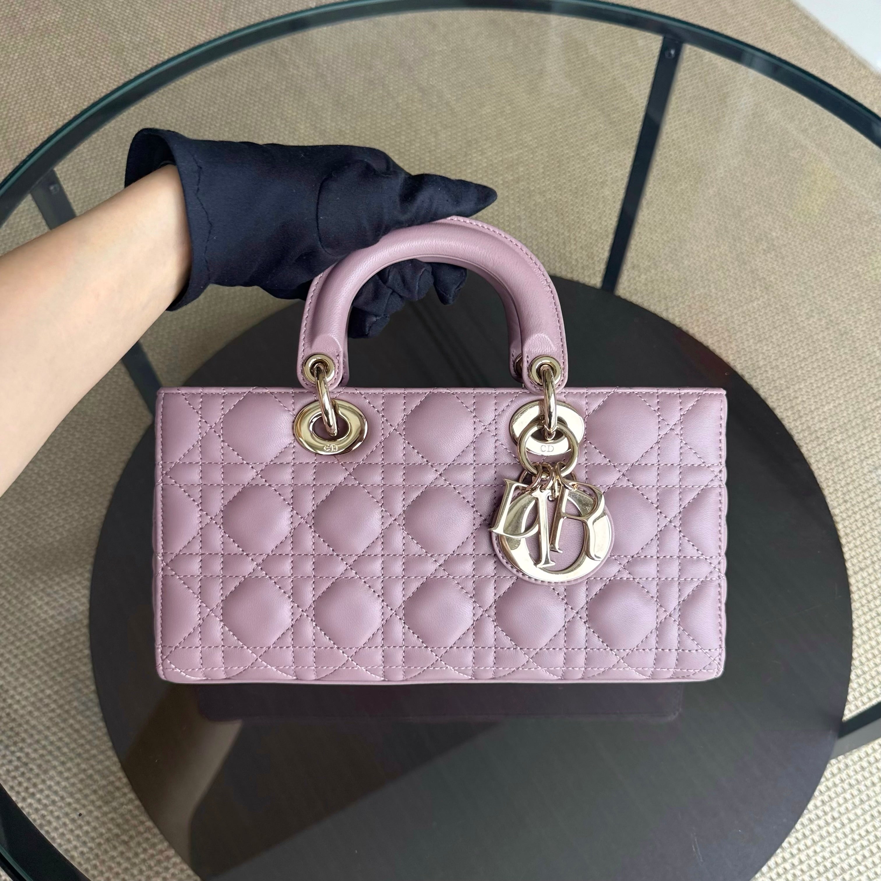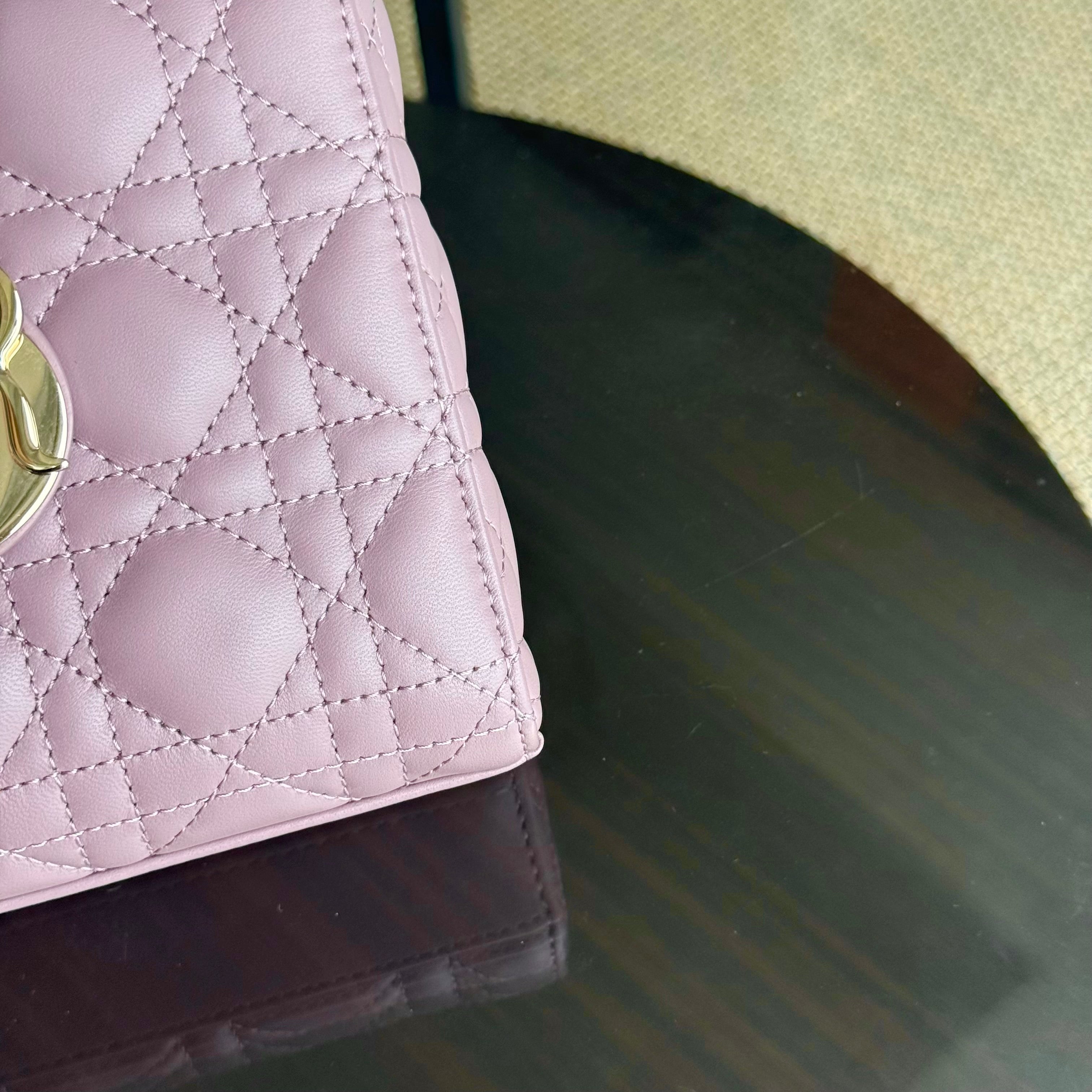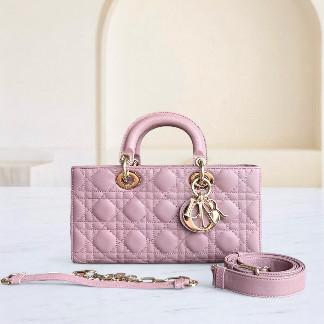 Dior D-Joy Medium - Cannage Lambskin Blush Pink Gold Hardware