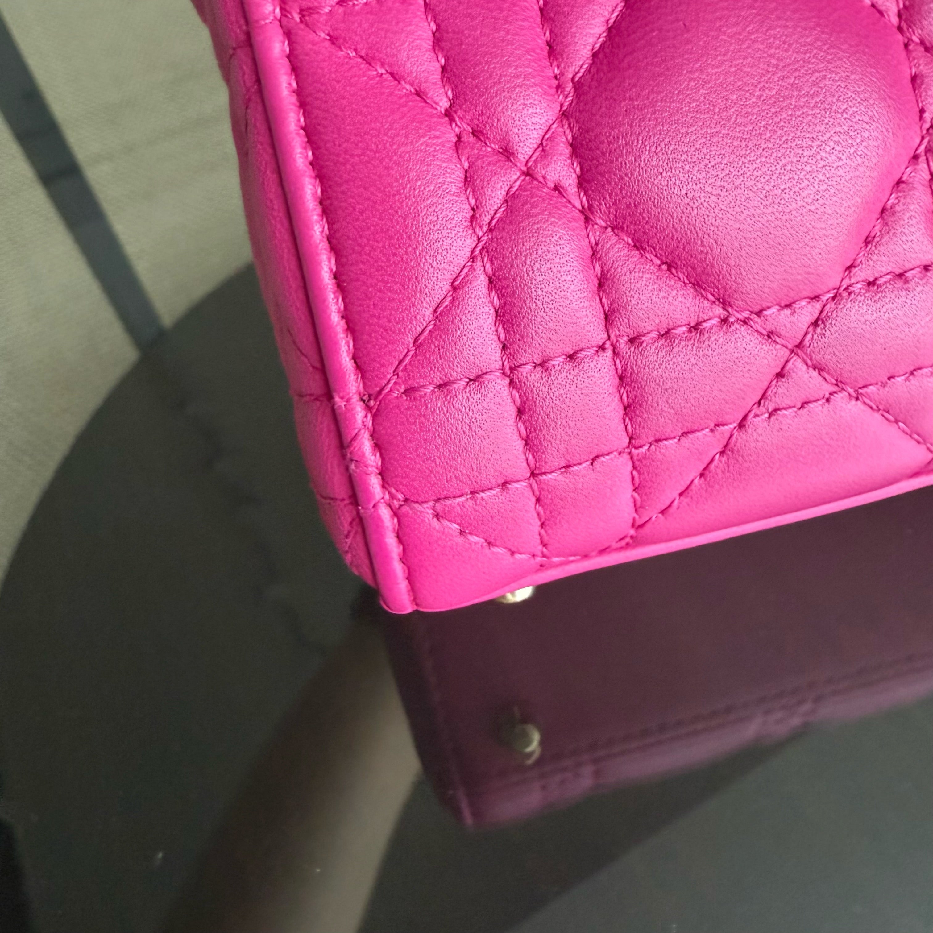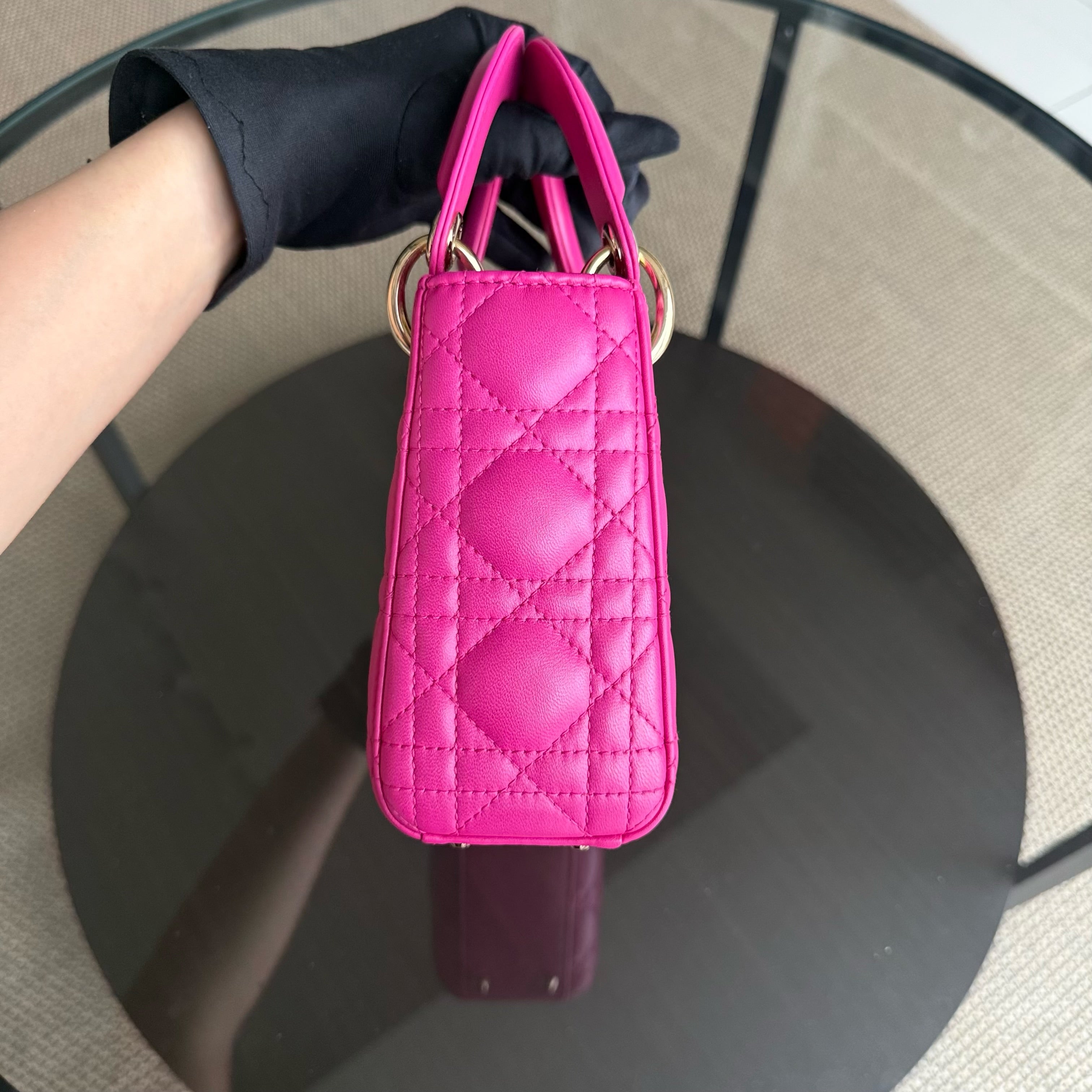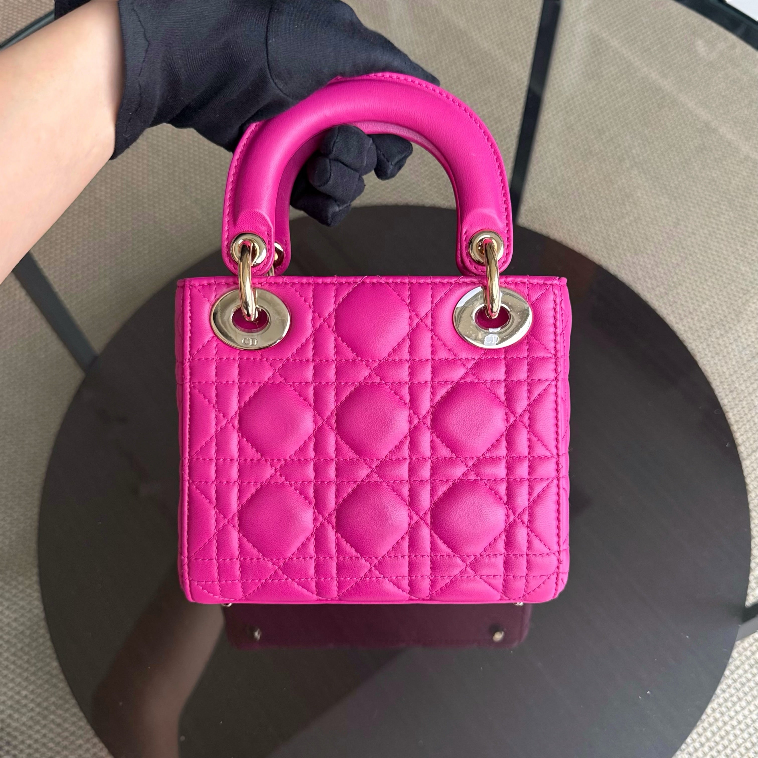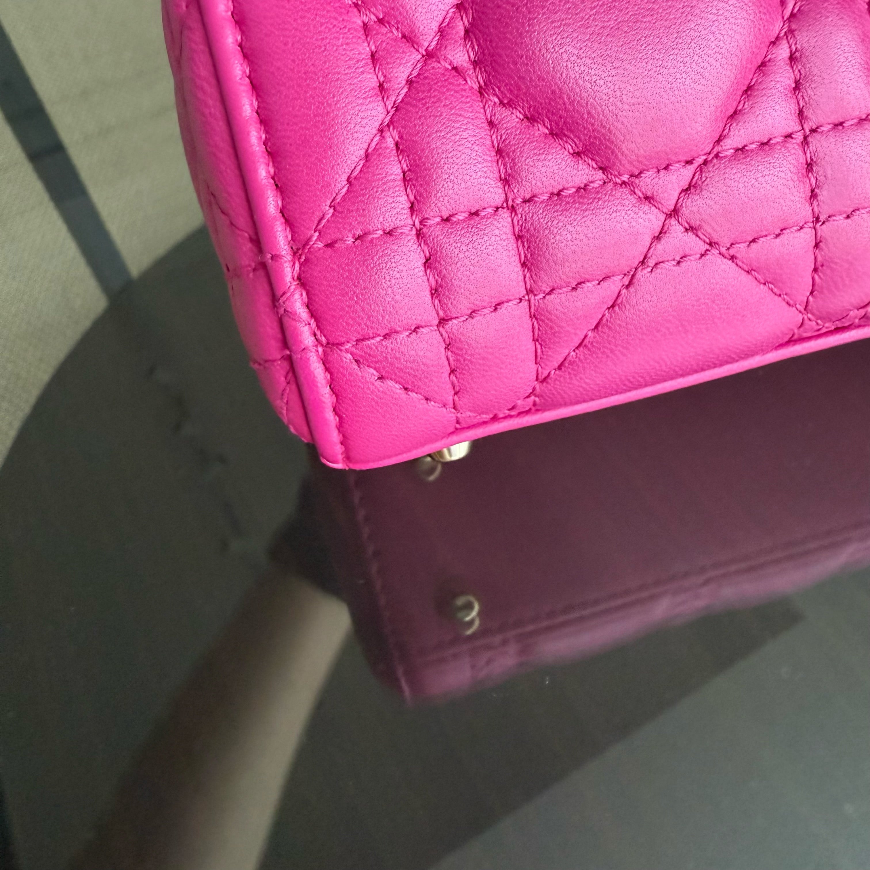 Dior Lady Mini - Cannage Lambskin Hot Pink Gold Hardware Chain Strap