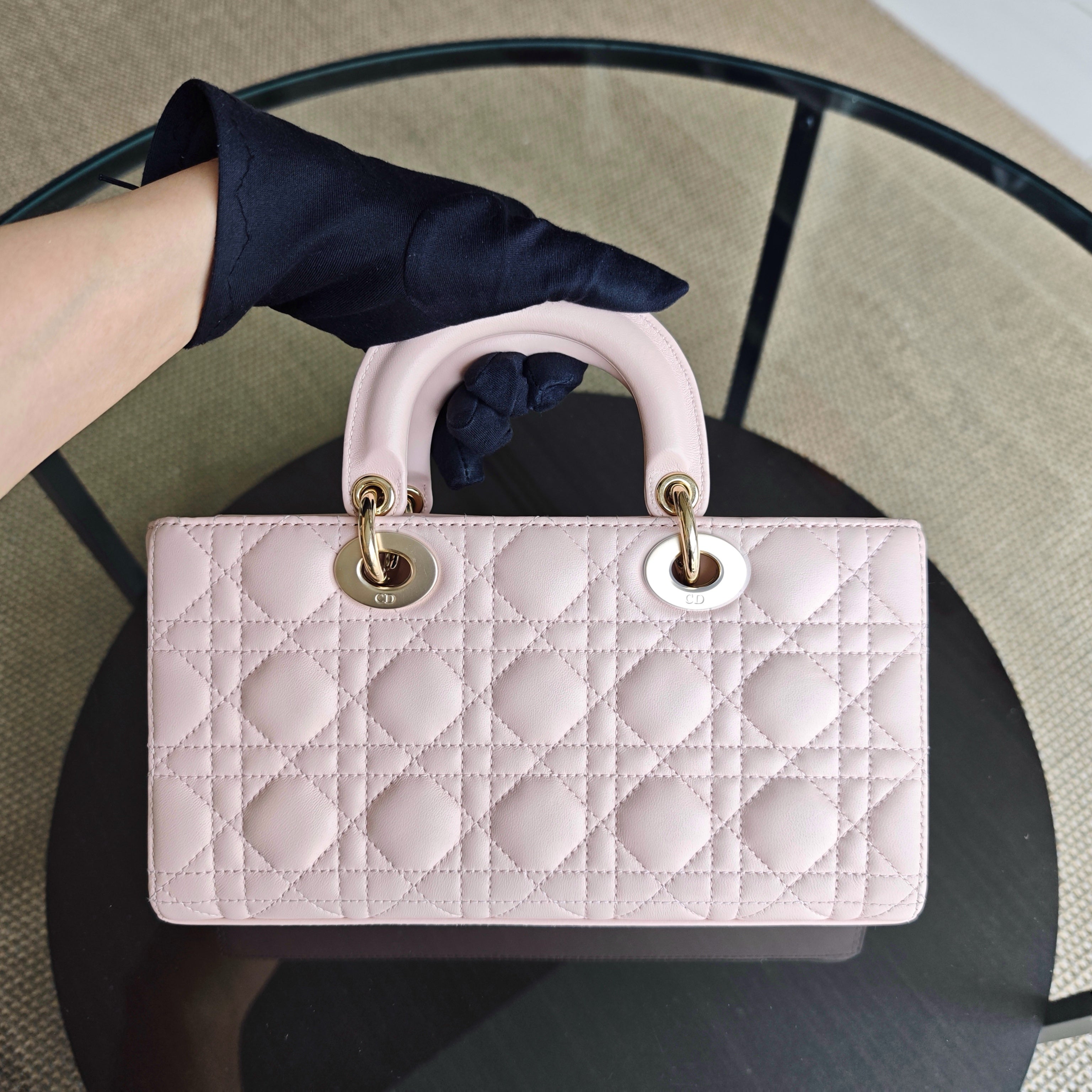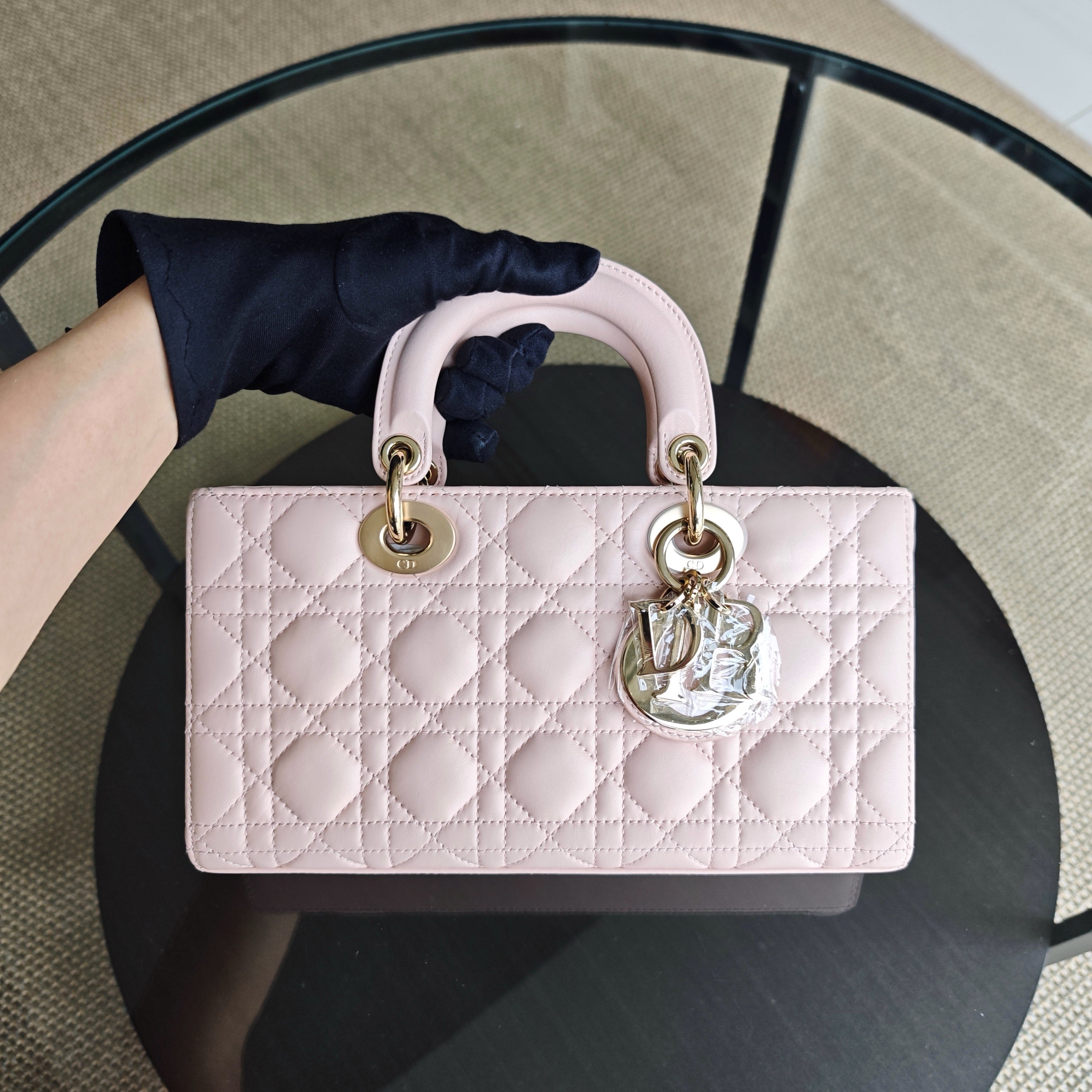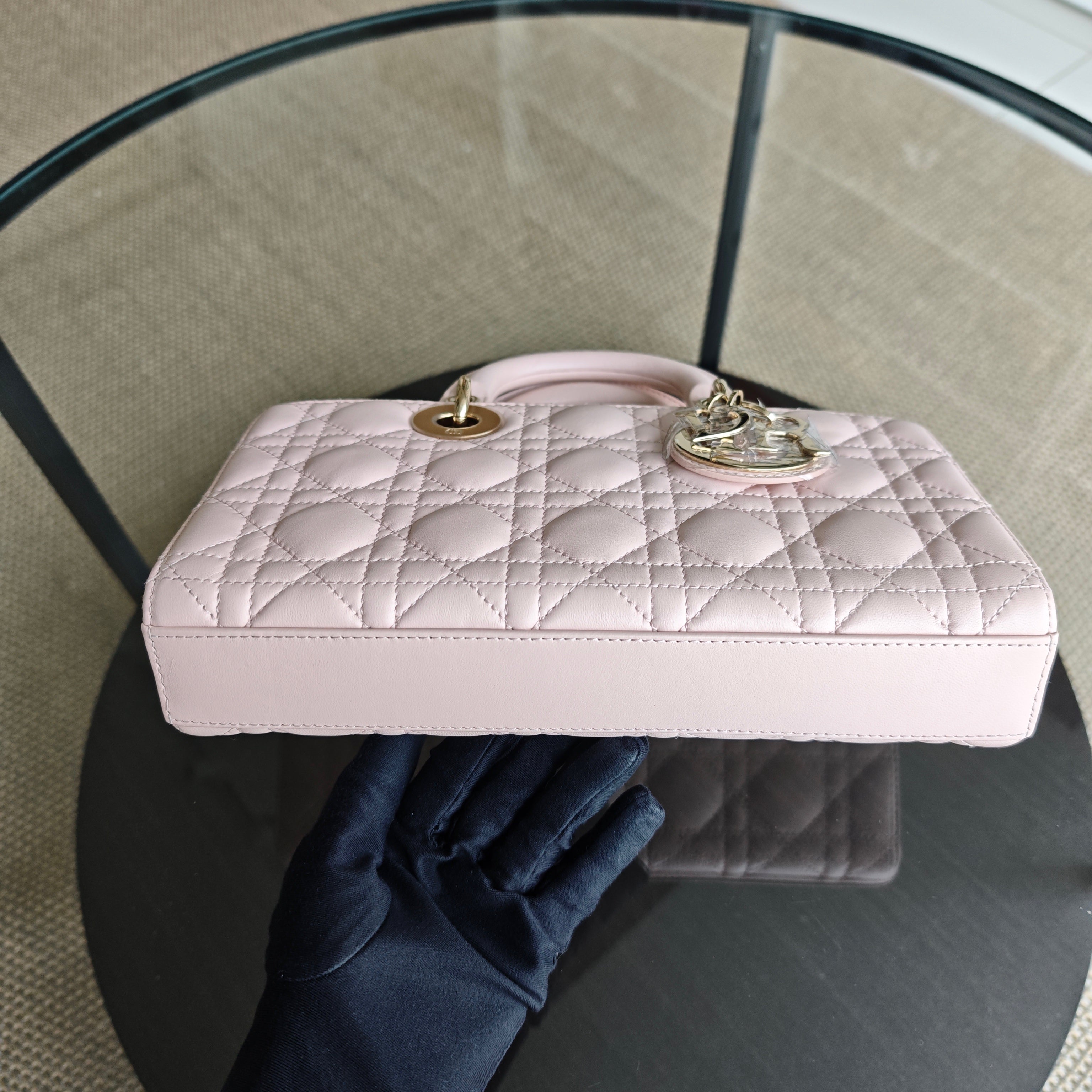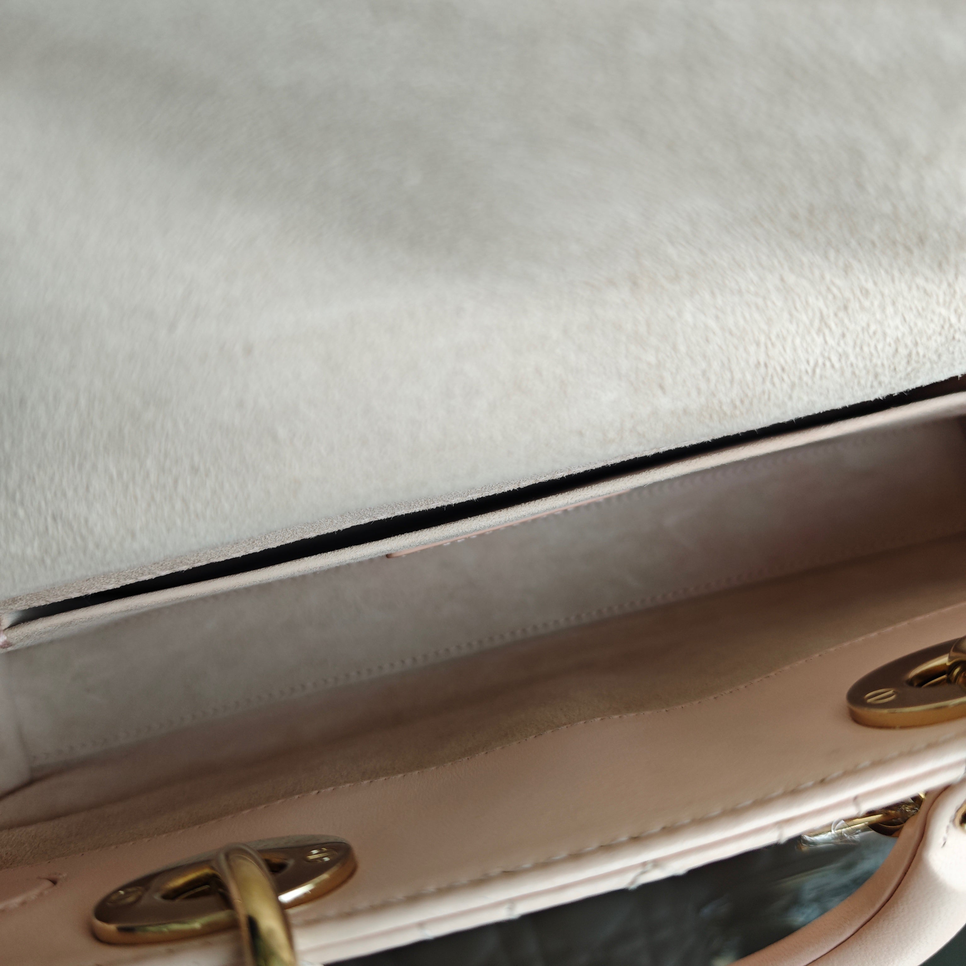 Dior D-Joy Medium - Cannage Lambskin Light Pink Gold Hardware