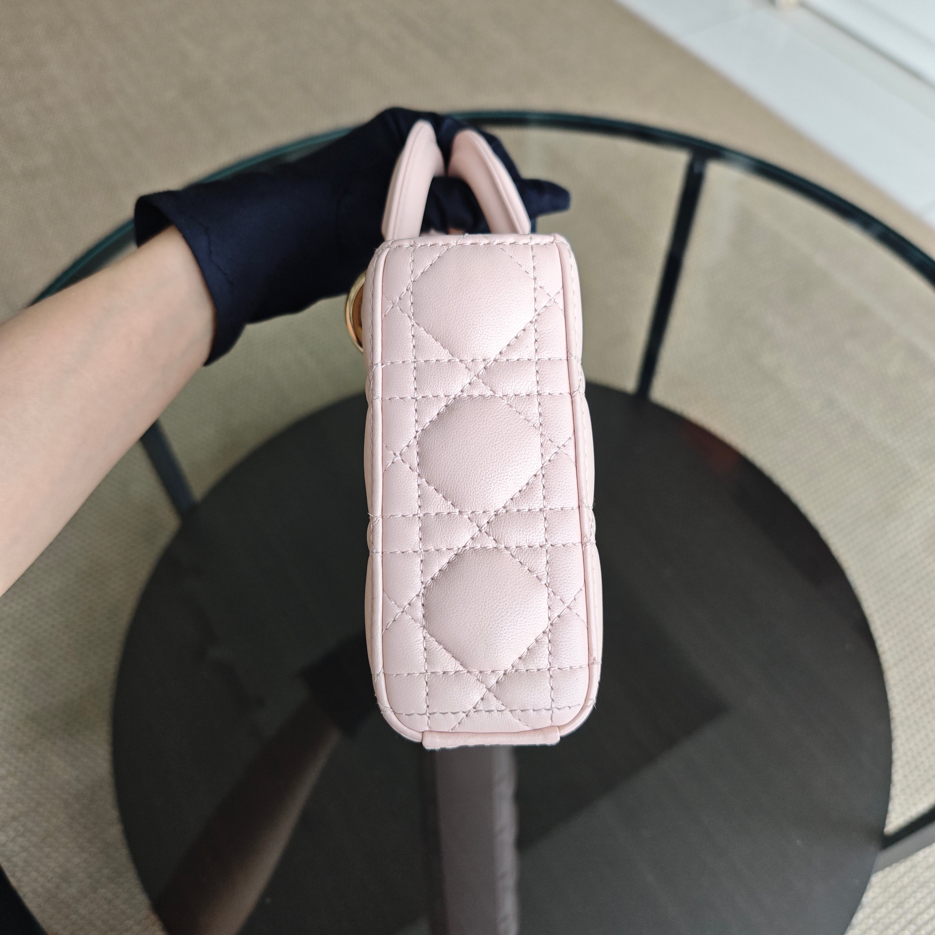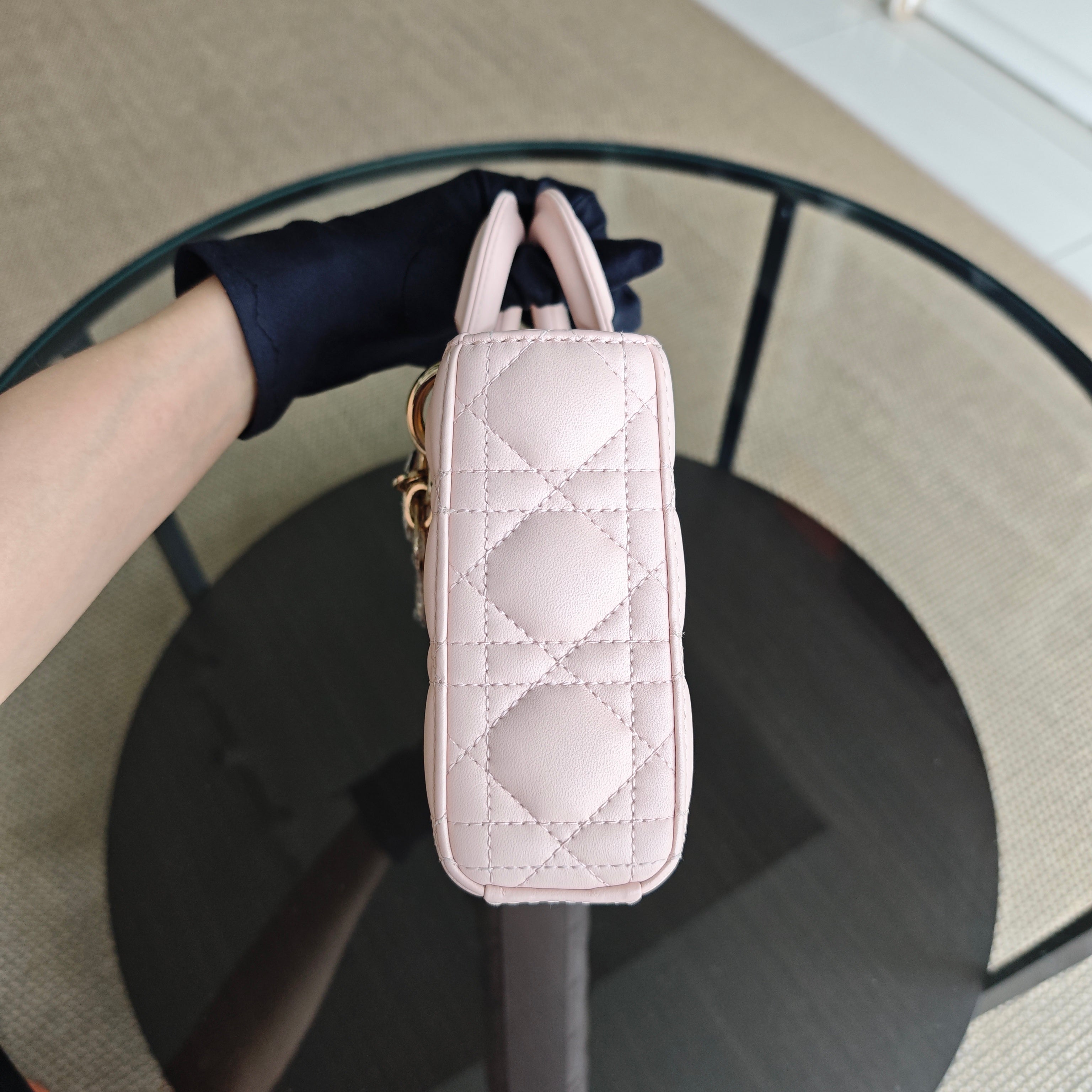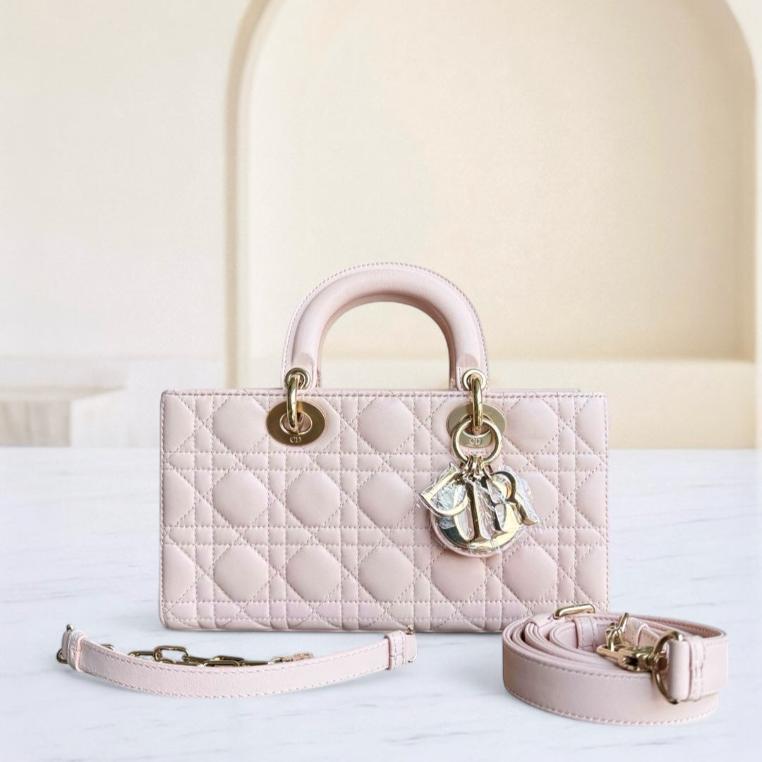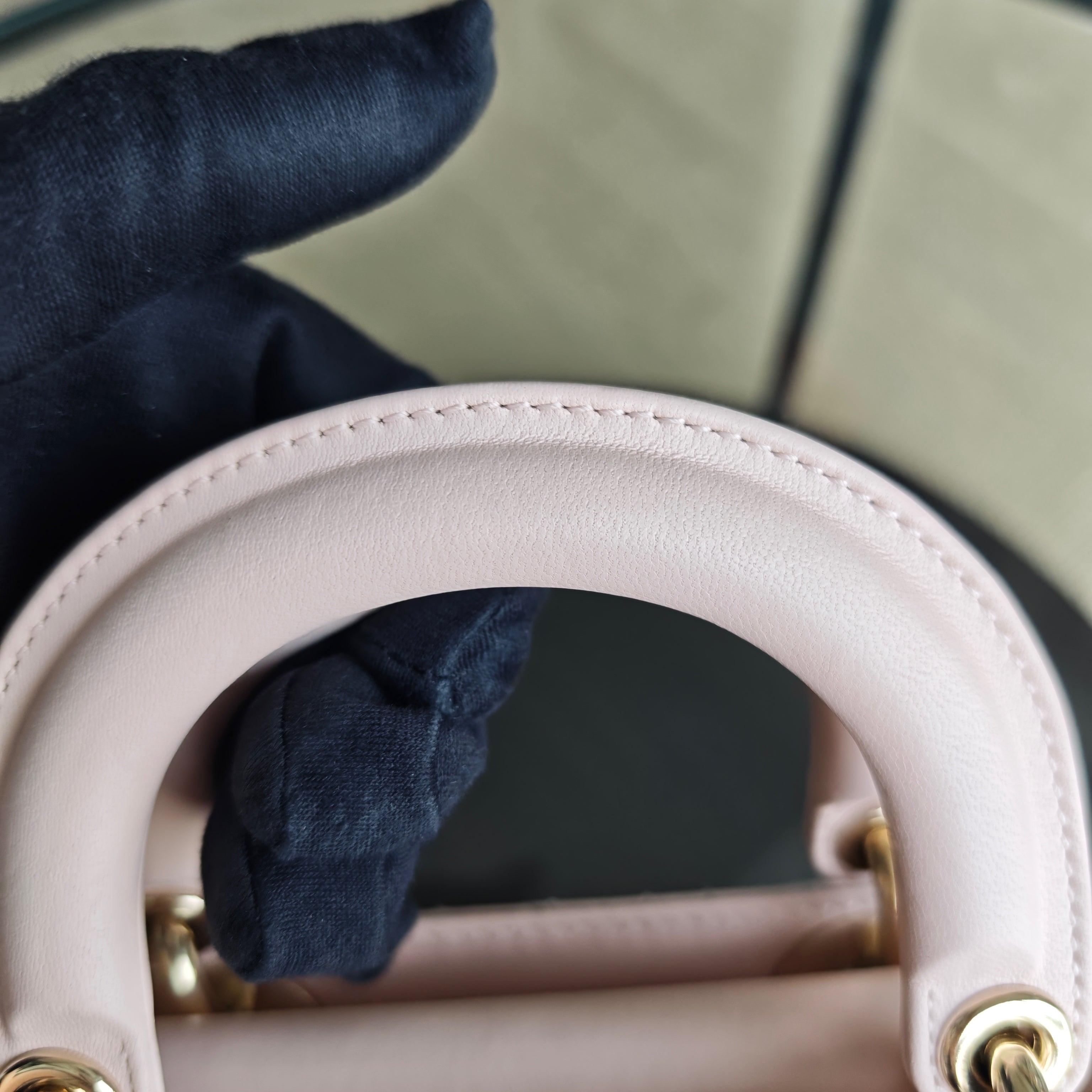 Dior D-Joy Medium - Cannage Lambskin Light Pink Gold Hardware