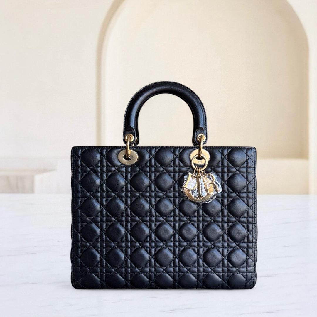 DIor Lady Large - Cannage Lambskin Black Gold Hardware NO STRAP