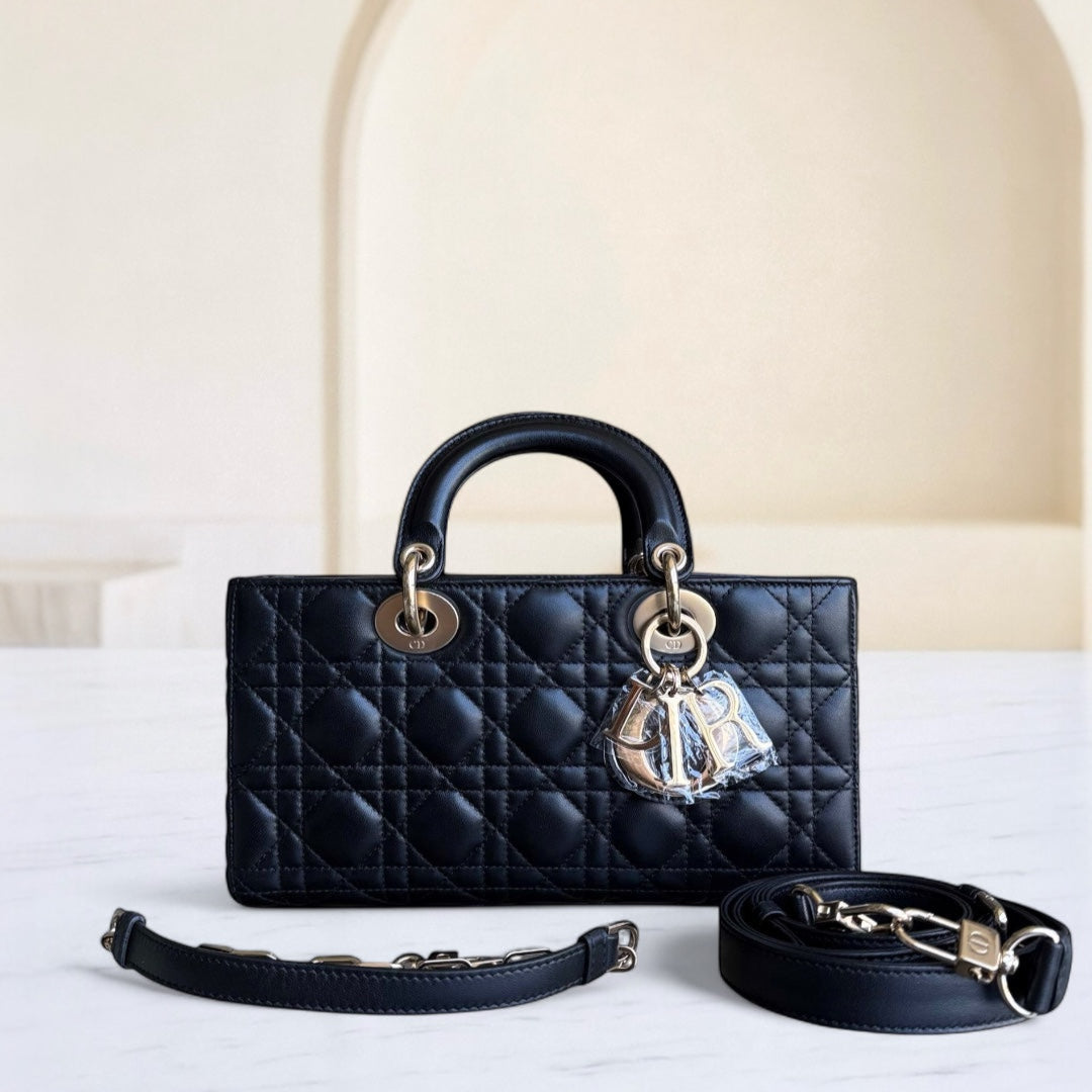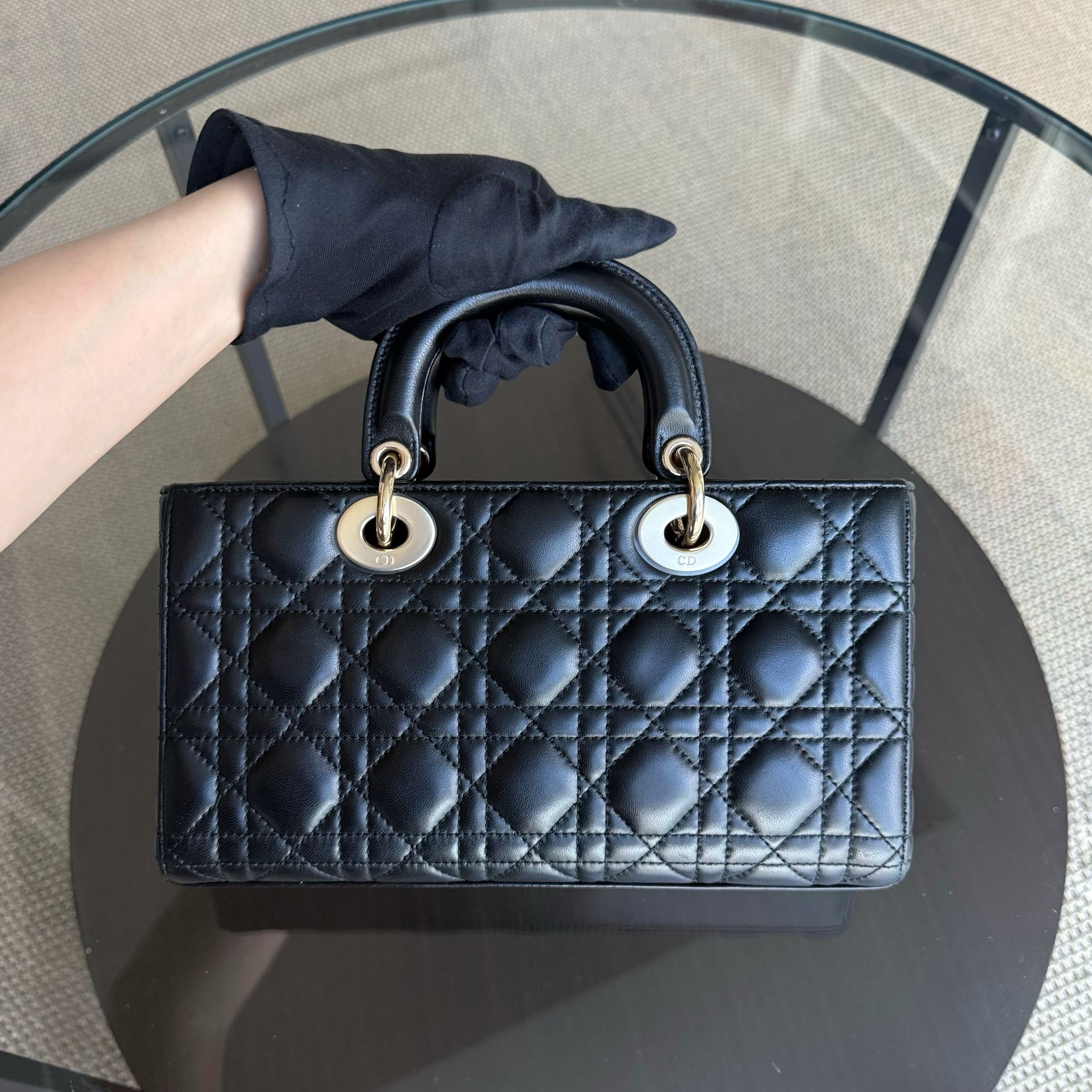 Dior D-Joy Medium - Cannage Lambskin Black Gold Hardware