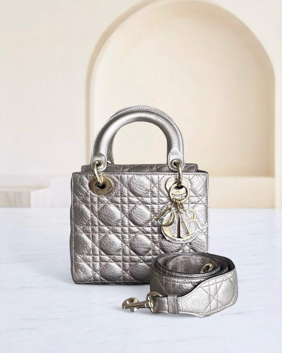Dior Lady Small - Cannage Gold Calfskin Gold Hardware