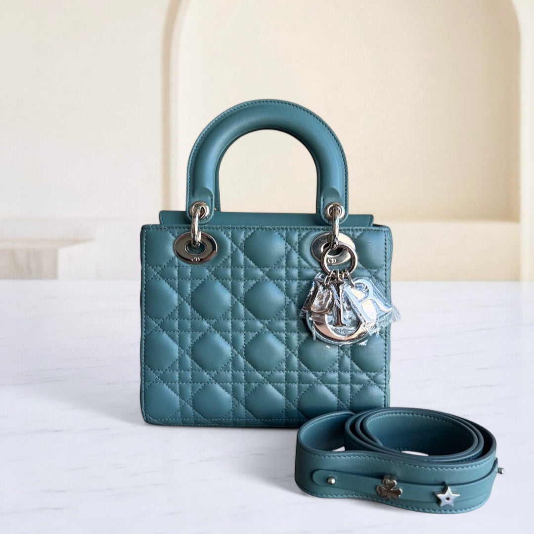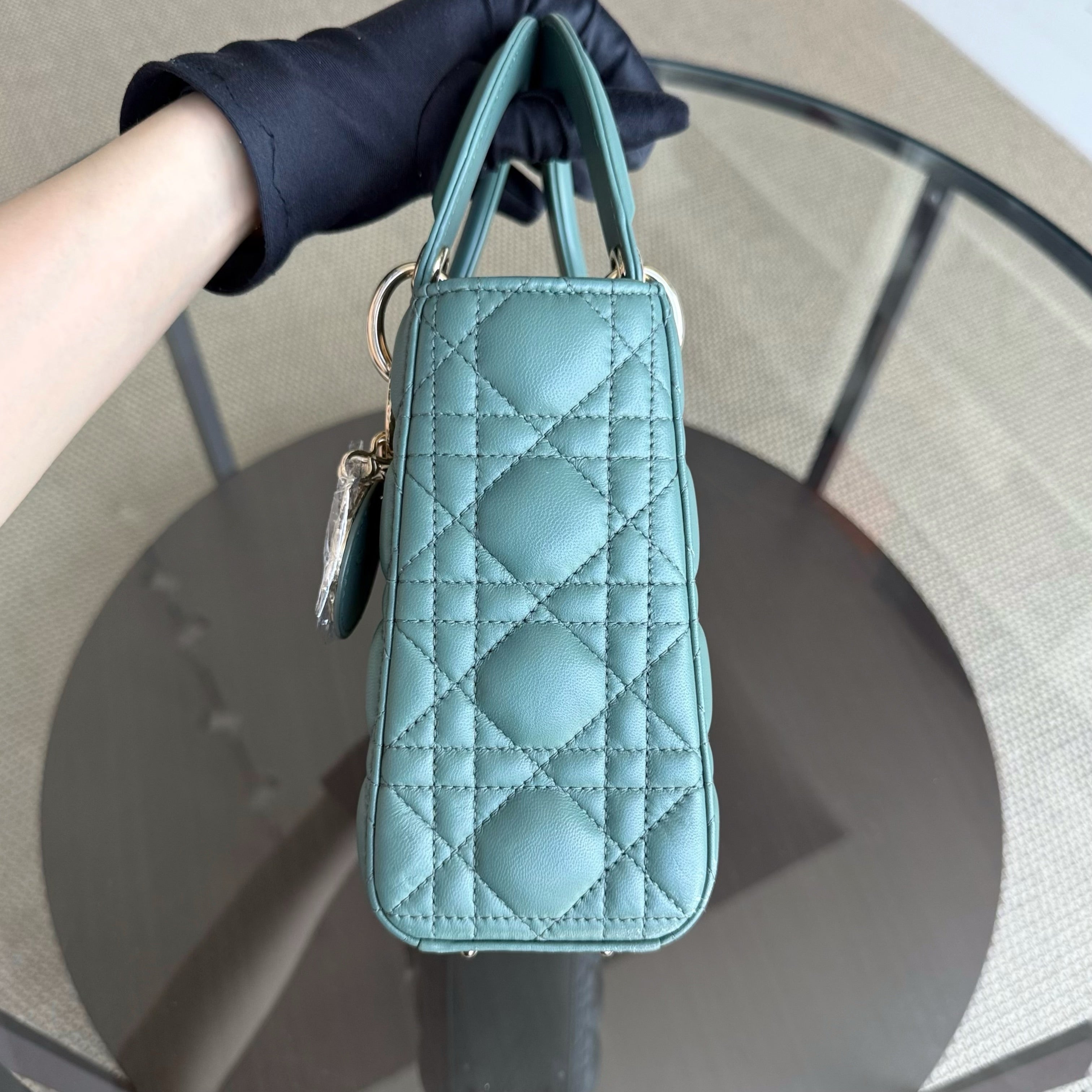 Dior Lady Small Flap - Cannage Lambskin Green Gold Hardware with Charms