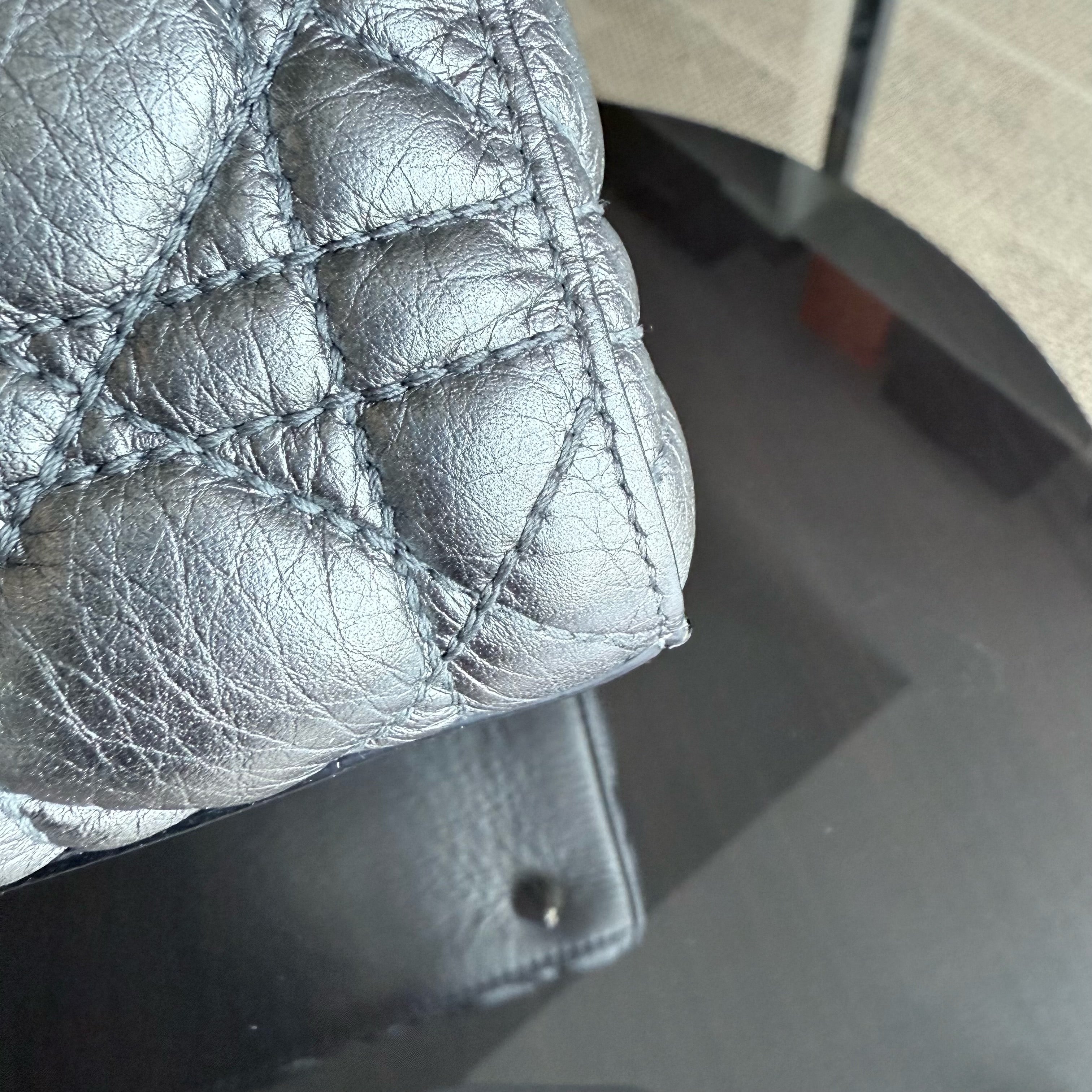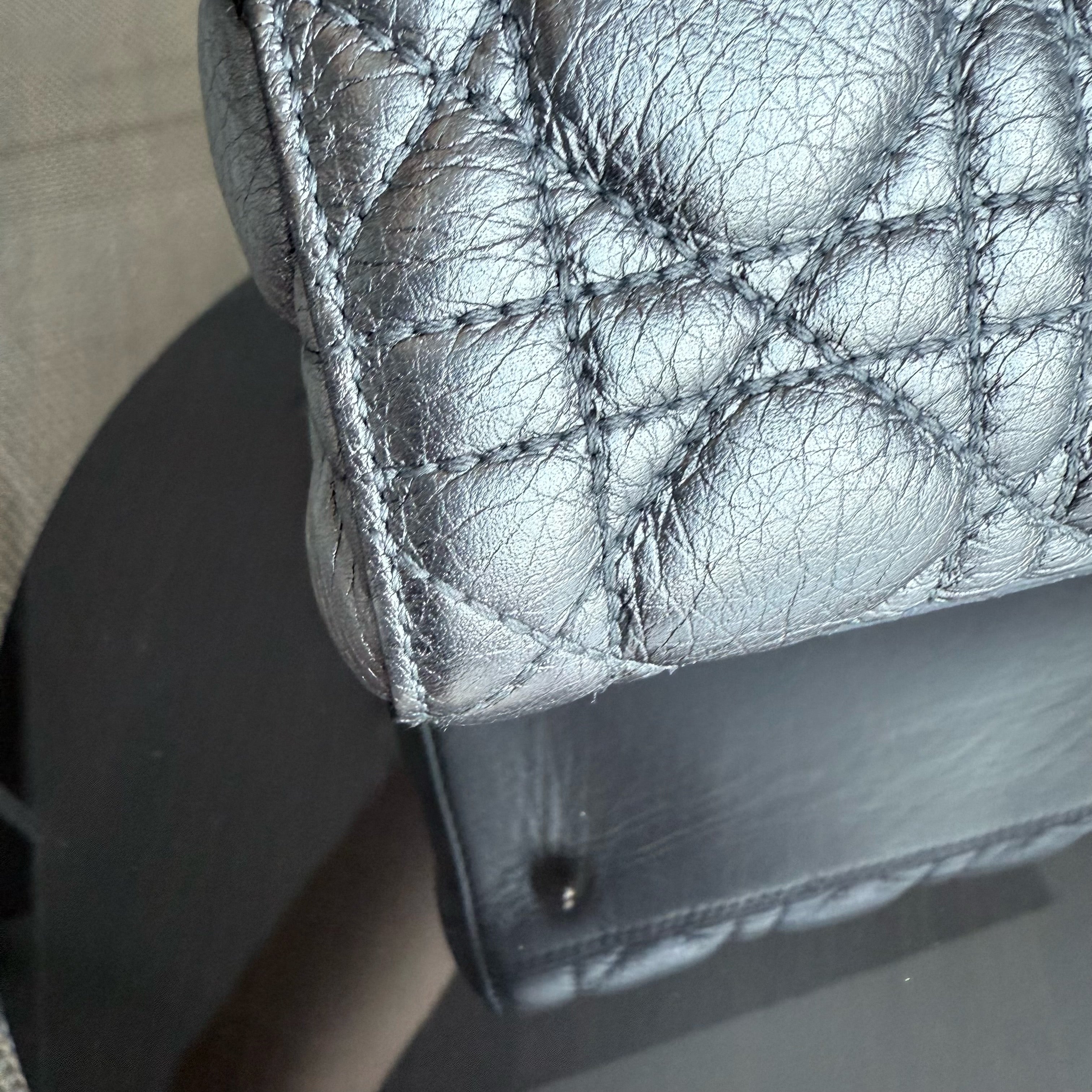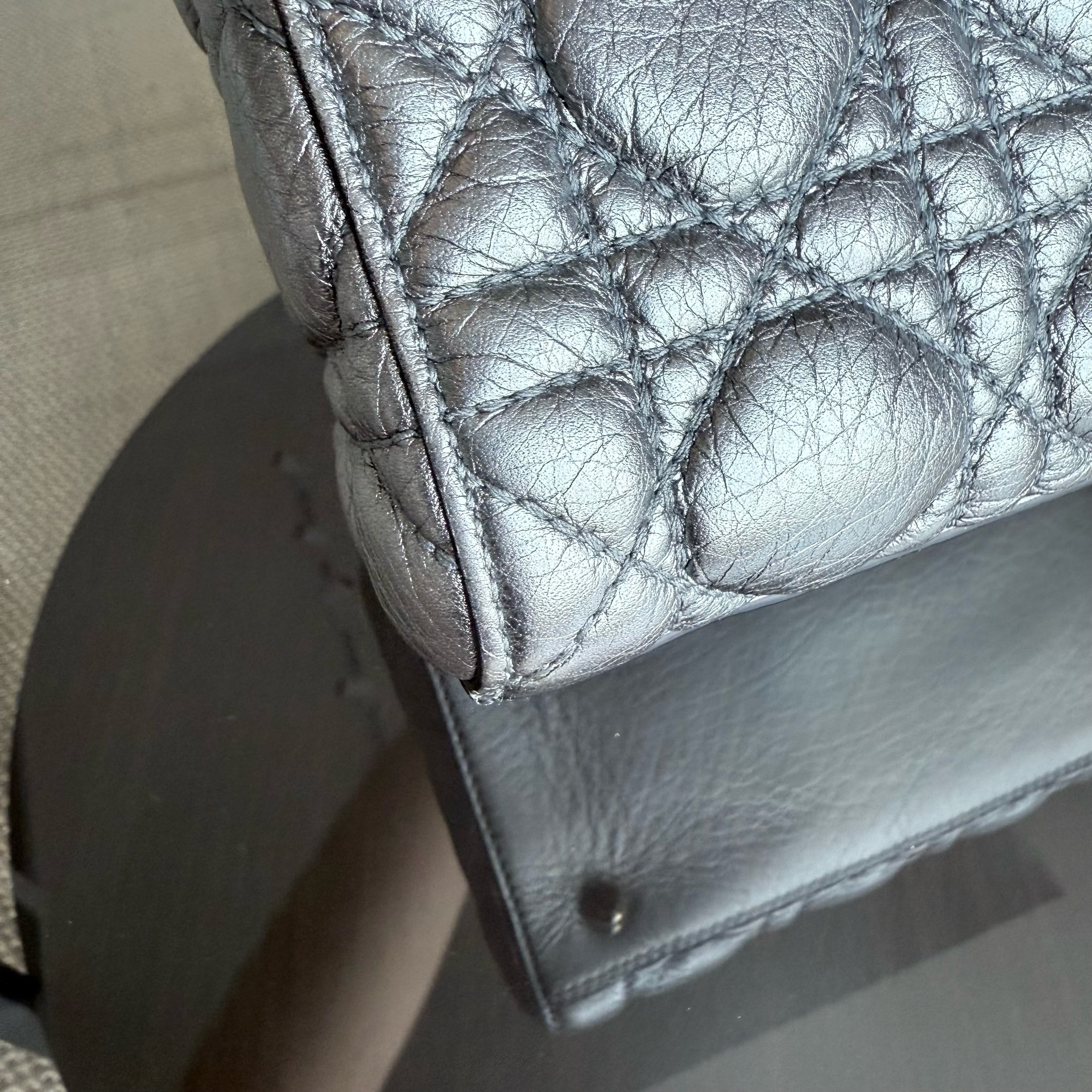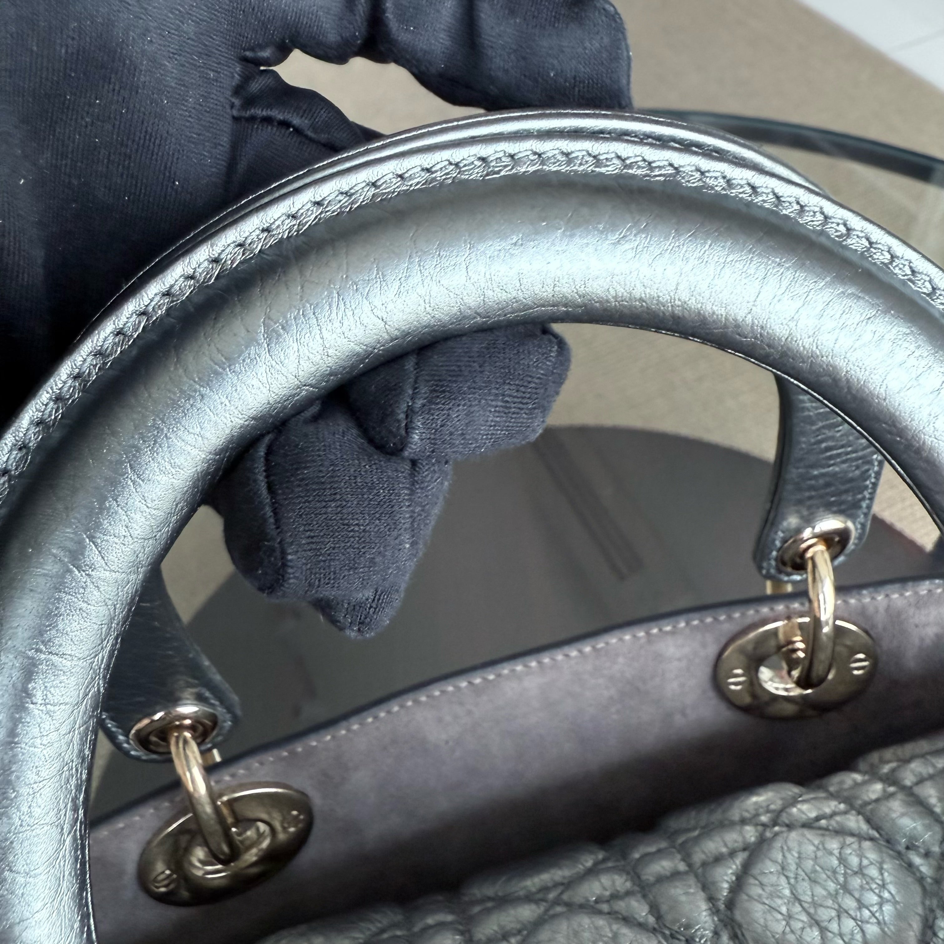 Dior Lady Medium Flap - Grained Calfskin Metallic Silver Gold Hardware Limited Edition