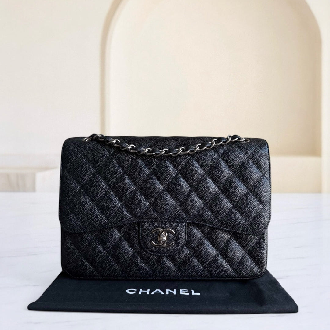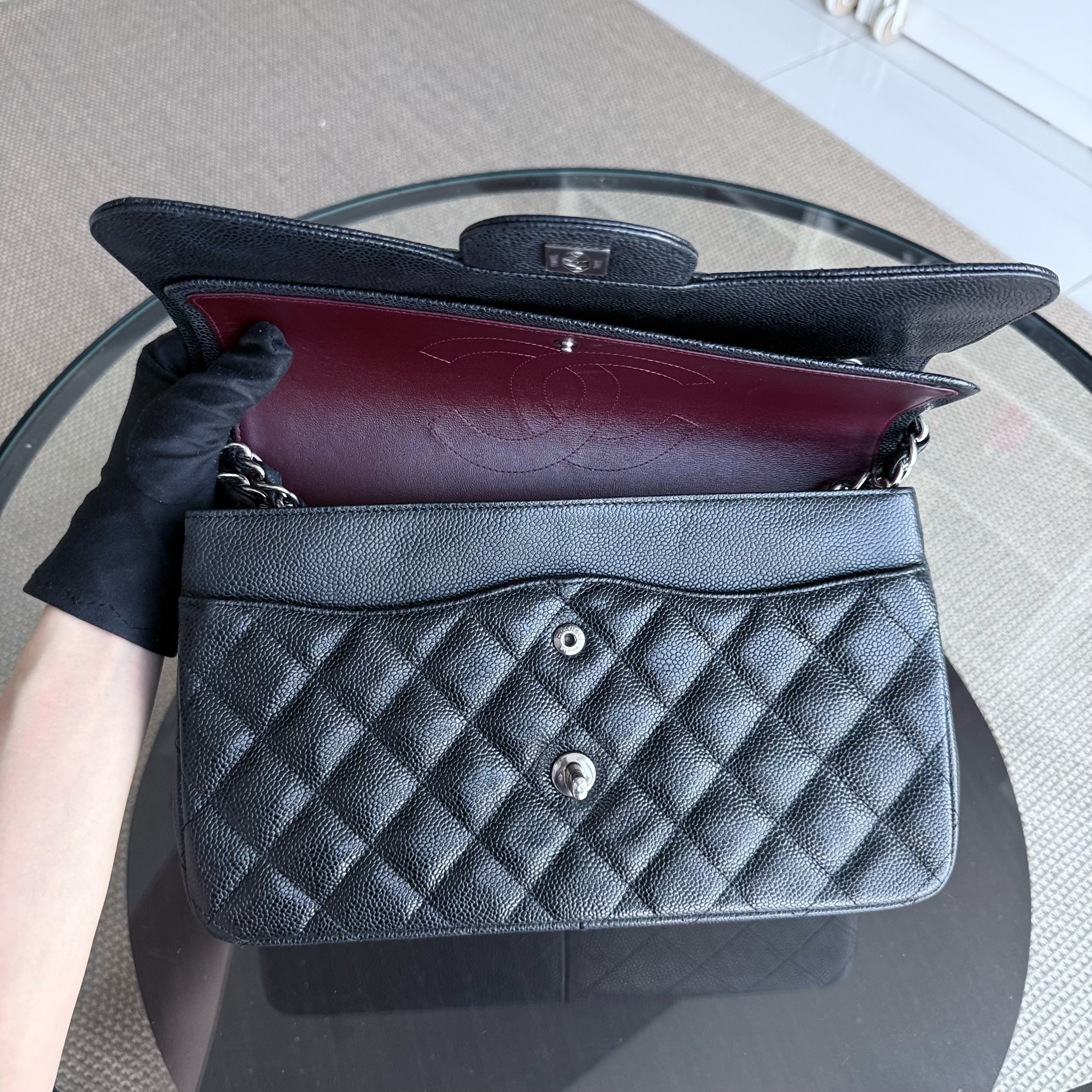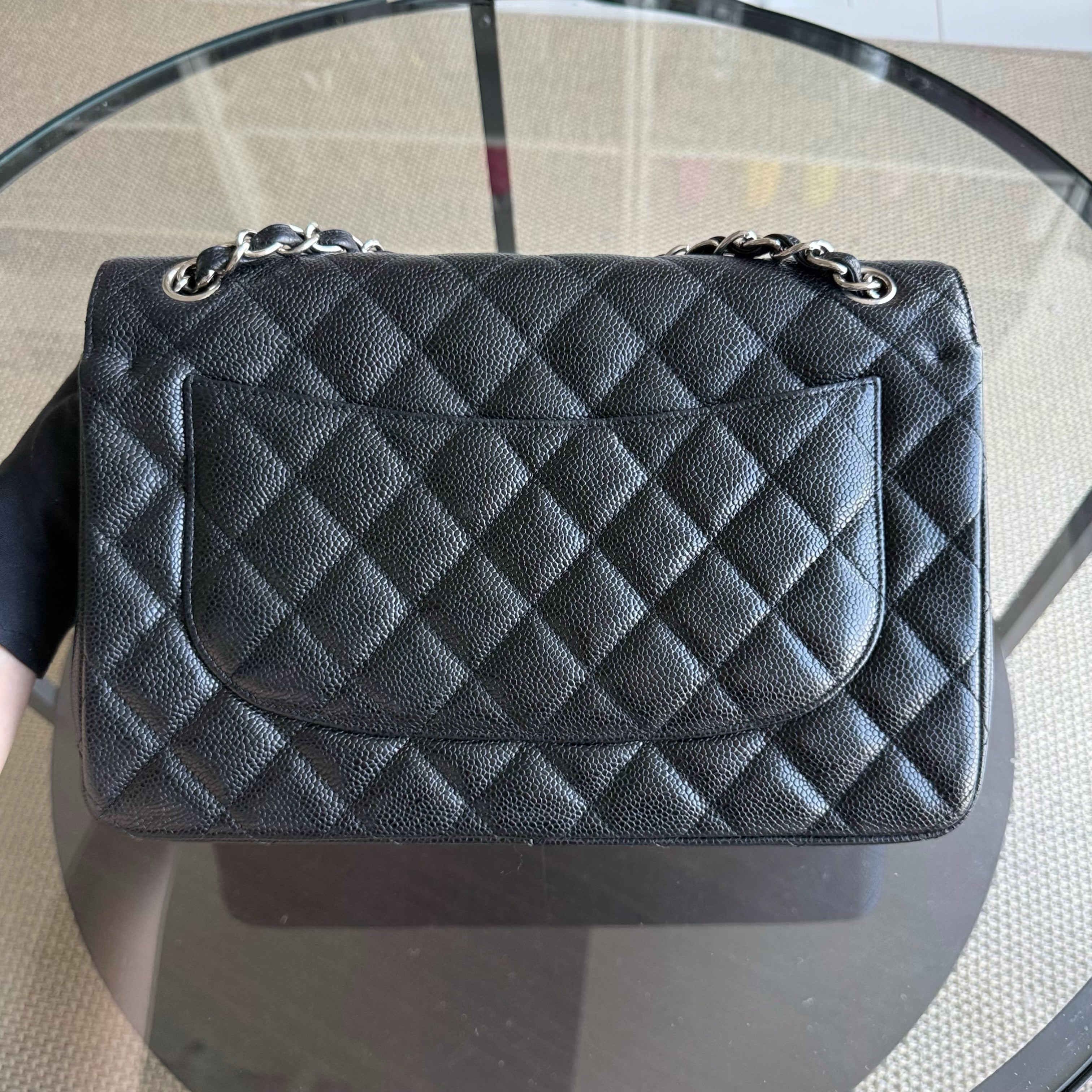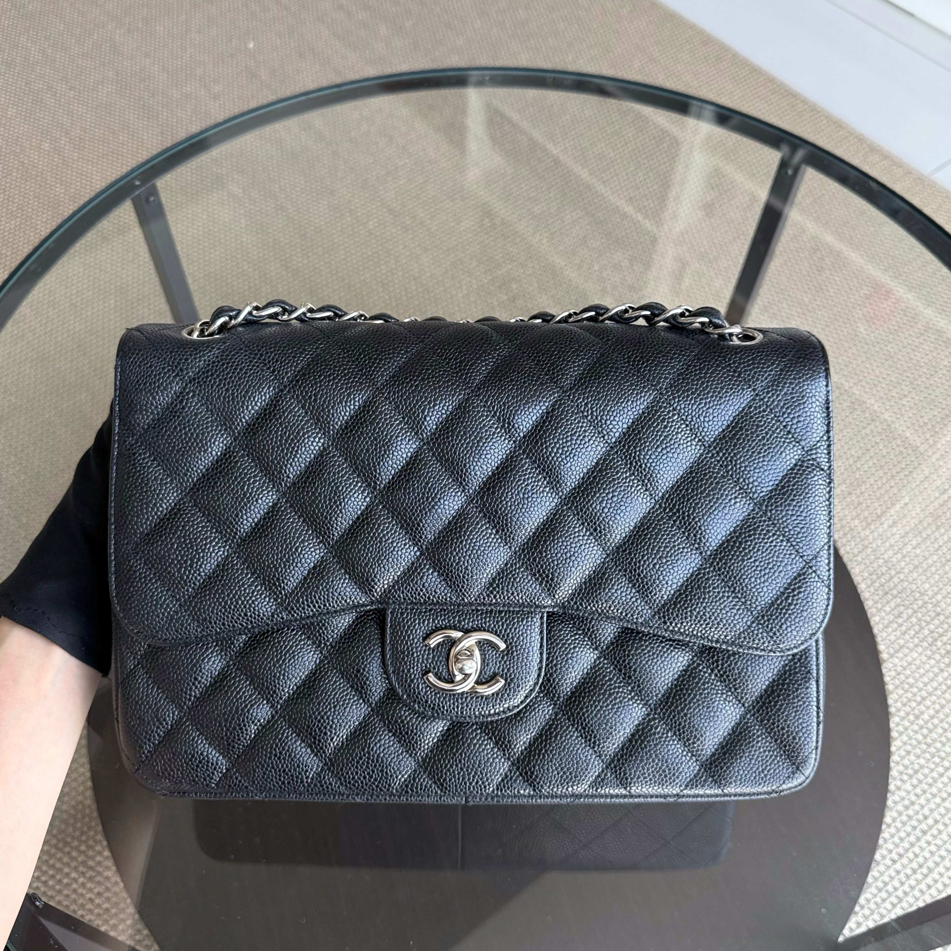 Chanel Classic Flap Jumbo - Caviar Quilted Grained Calfskin Black Silver Hardware