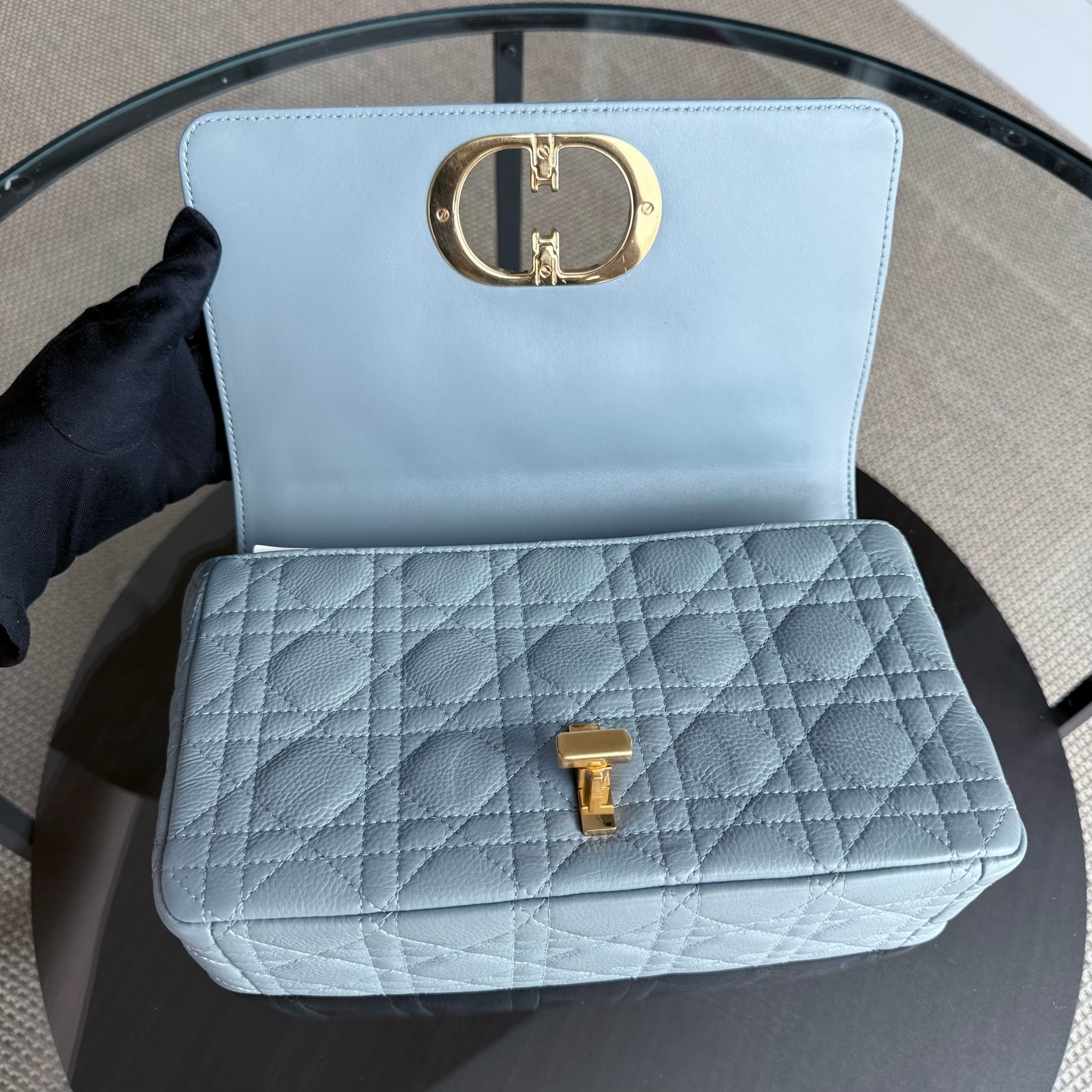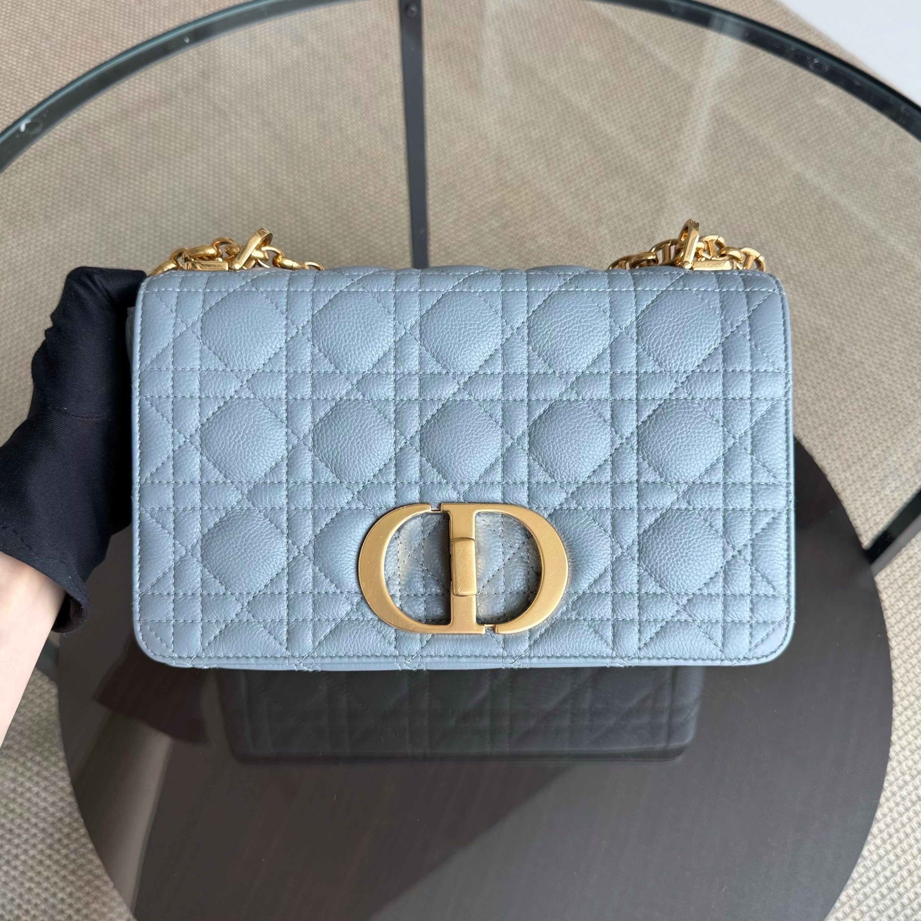Dior Caro Medium - Cannage Calfskin Grey Gray Gold Hardware
