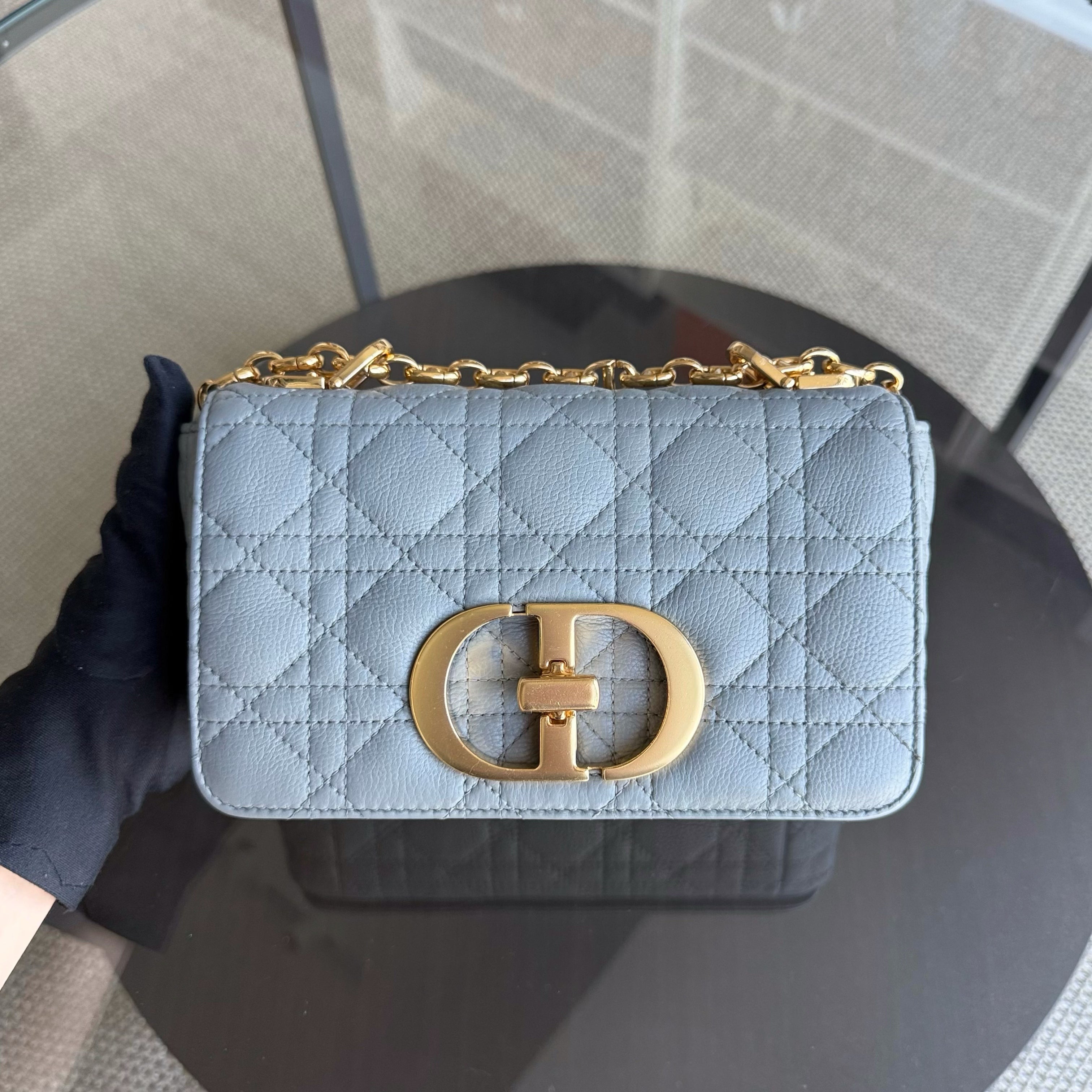 Dior Caro Small - Cannage Grained Calfskin Gray Grey Gold Hardware