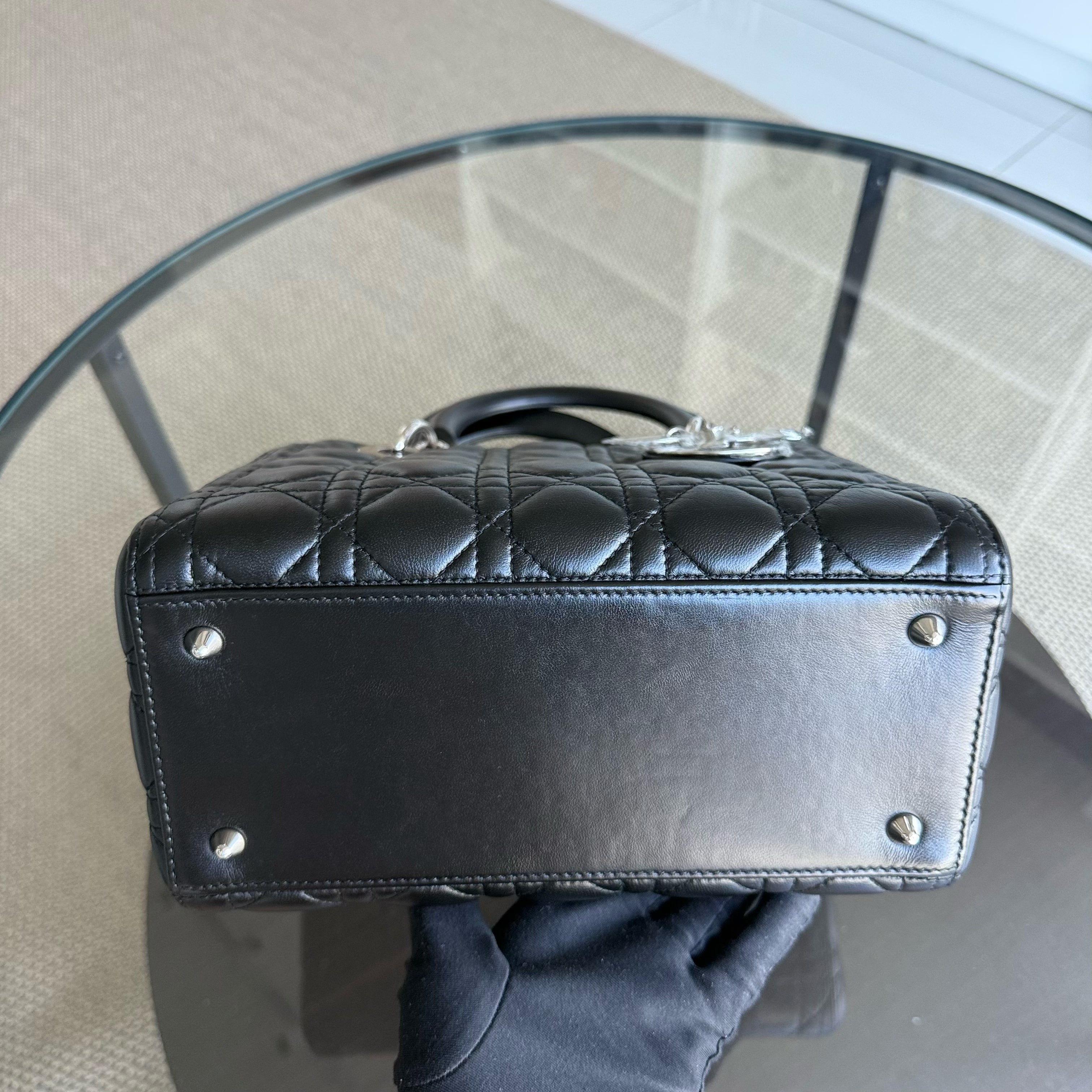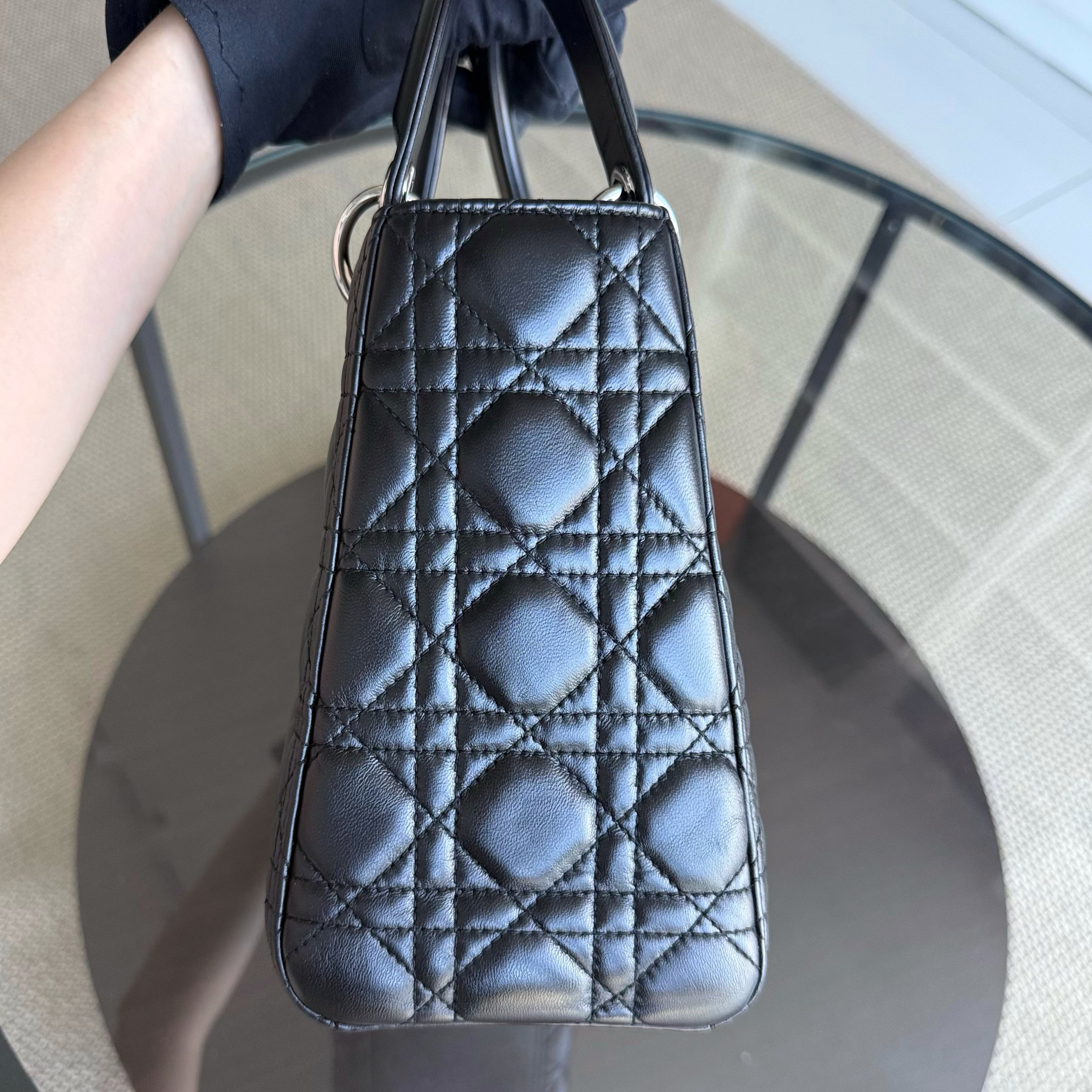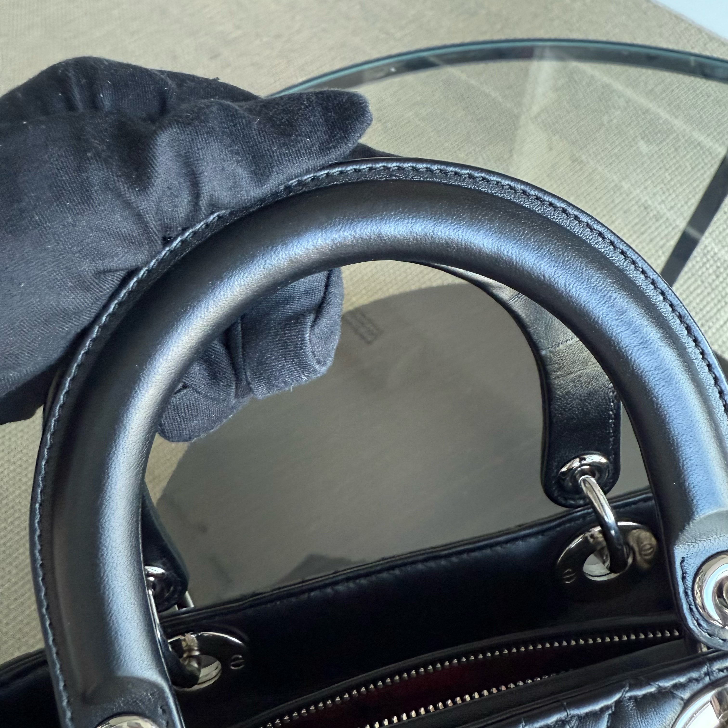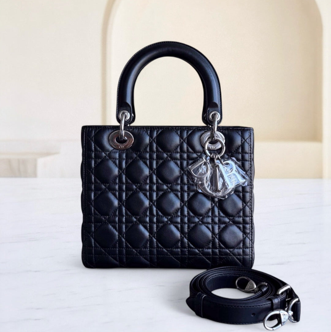 Dior Lady Medium - Cannage Lambskin Black Silver Hardware Adjustable Strap