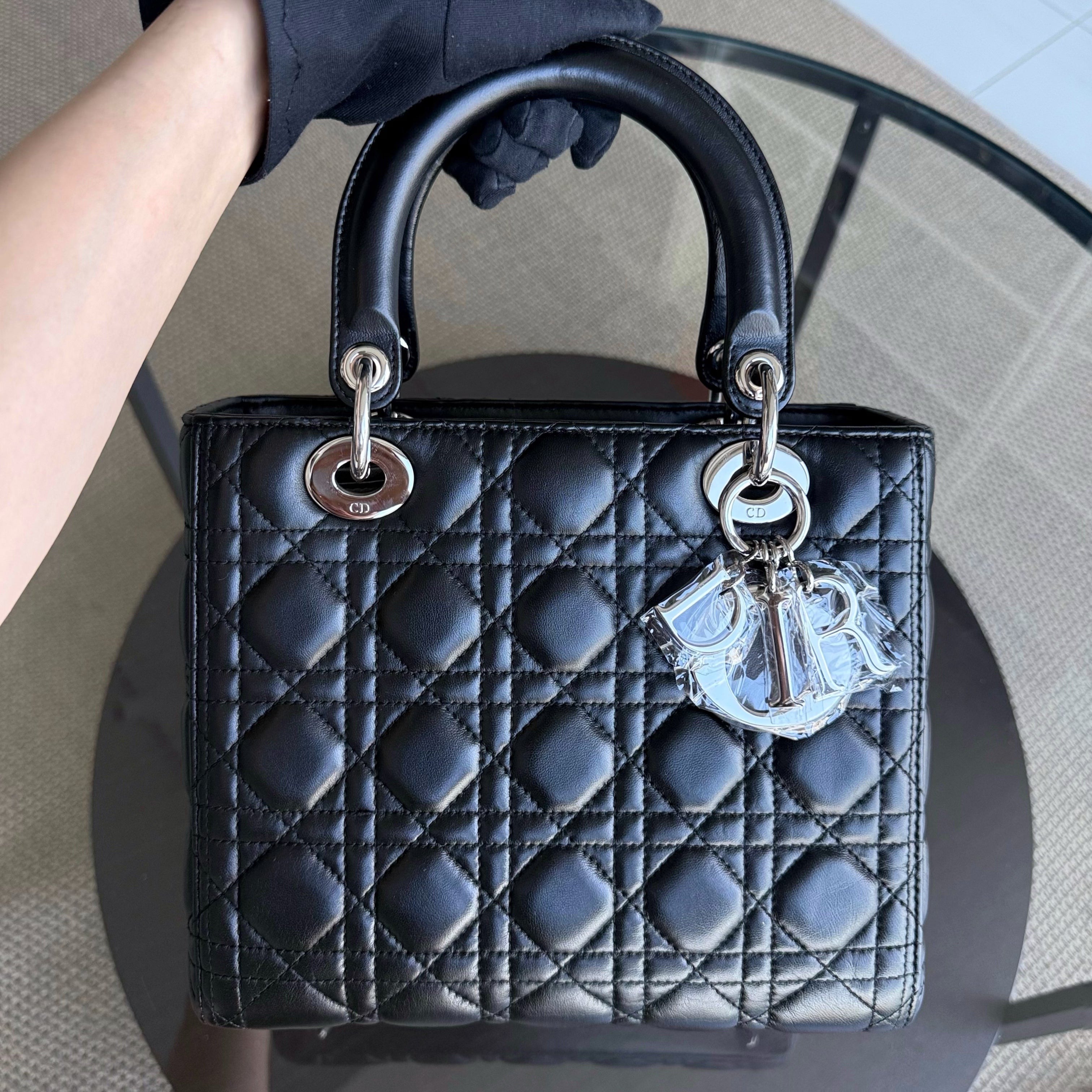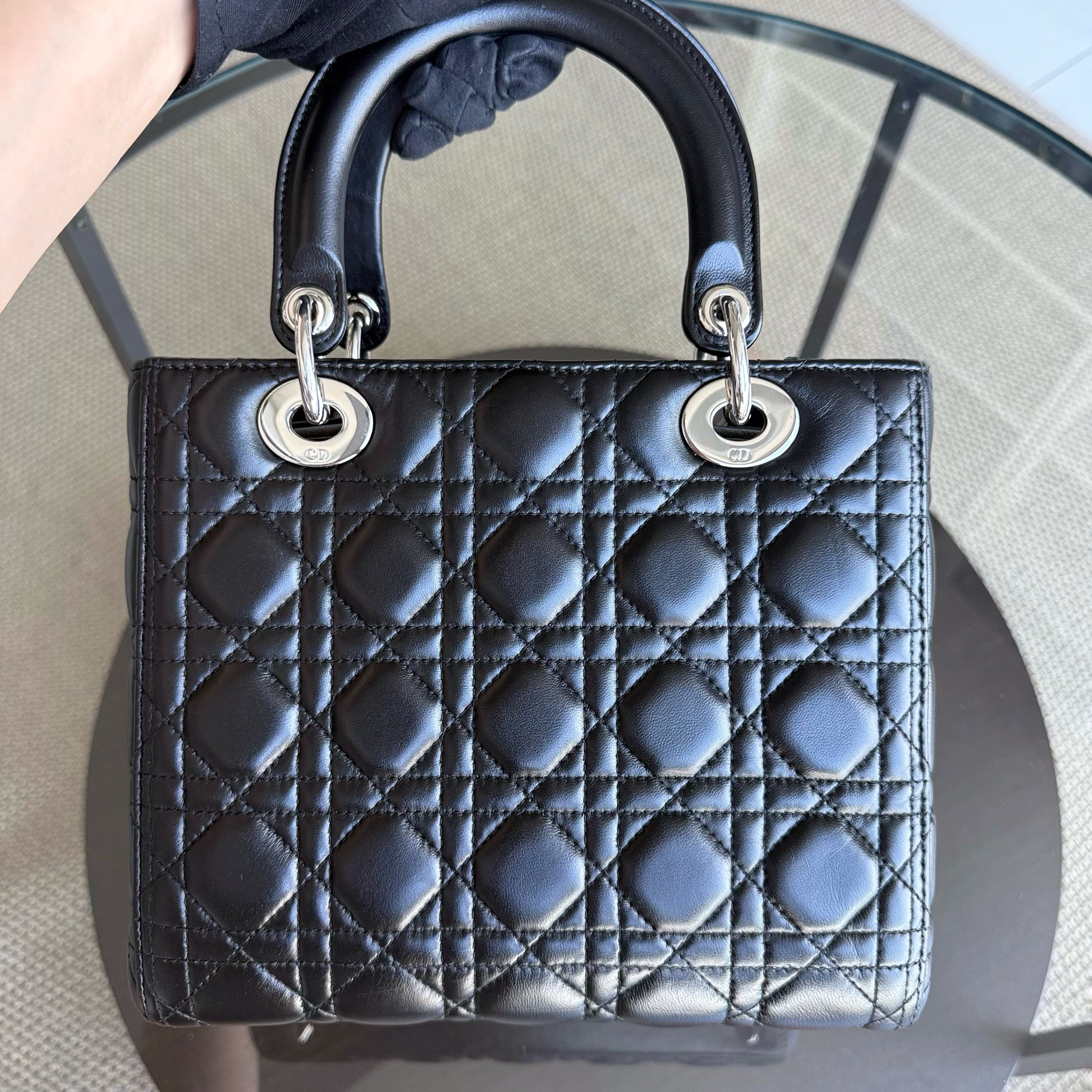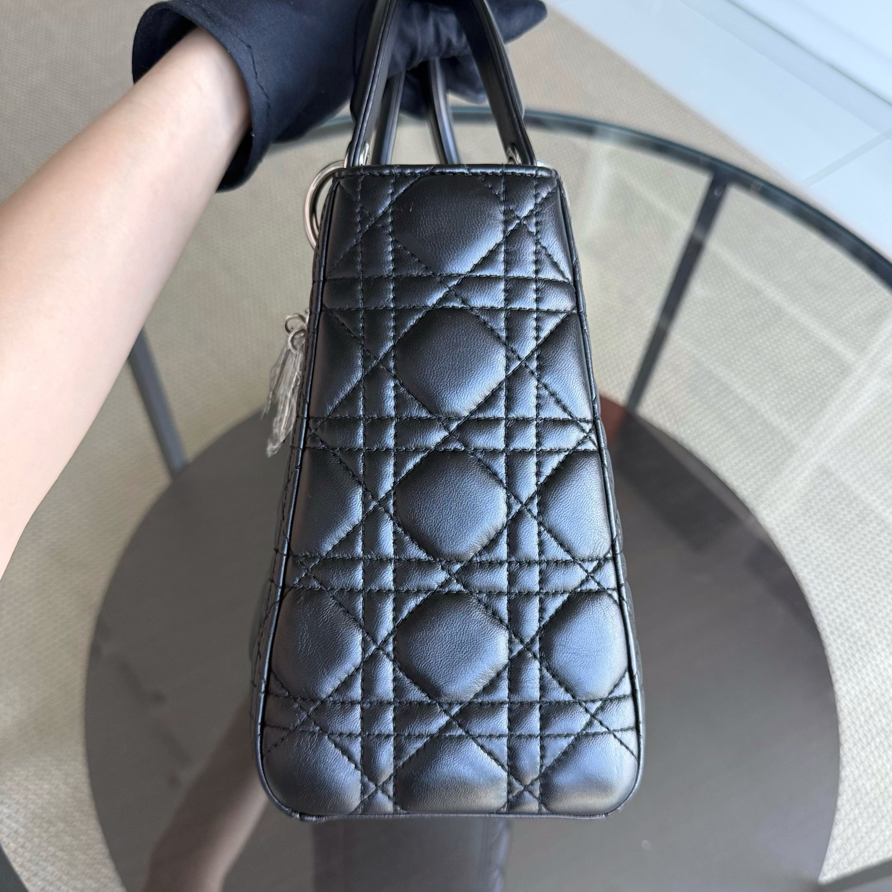 Dior Lady Medium - Cannage Lambskin Black Silver Hardware Adjustable Strap