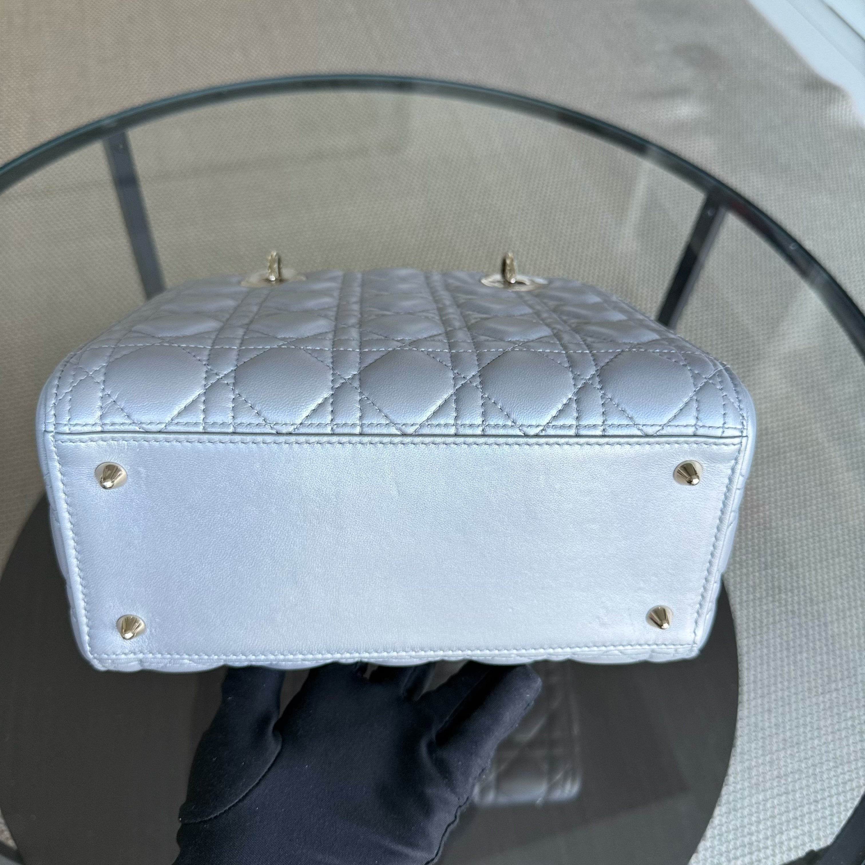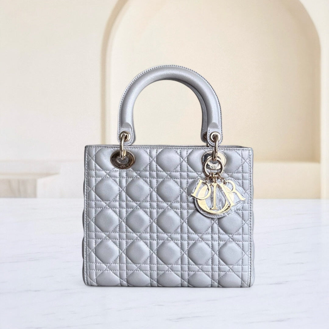 Dior Lady Medium - Cannage Lambskin Grey Gray Gold Hardware NO STRAP