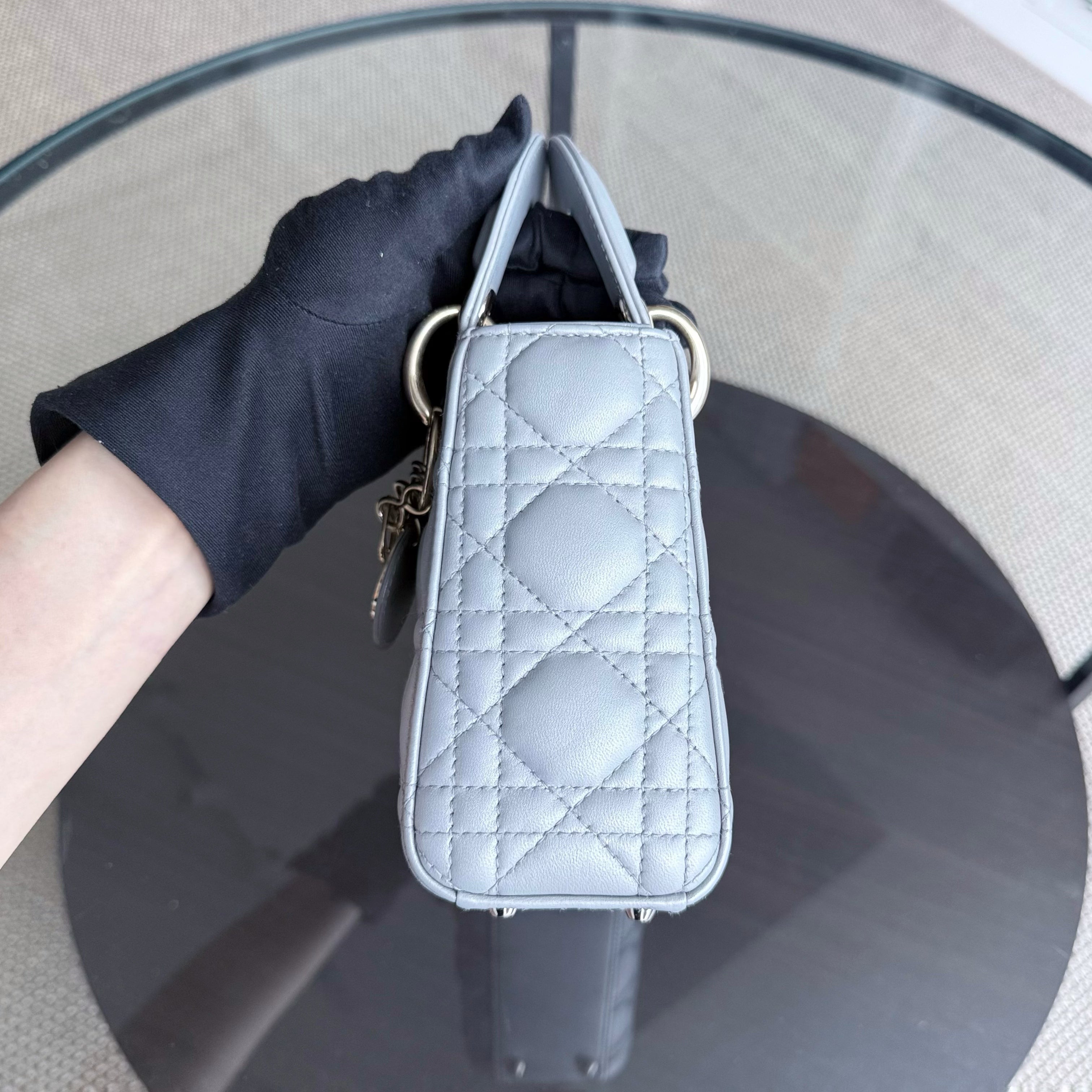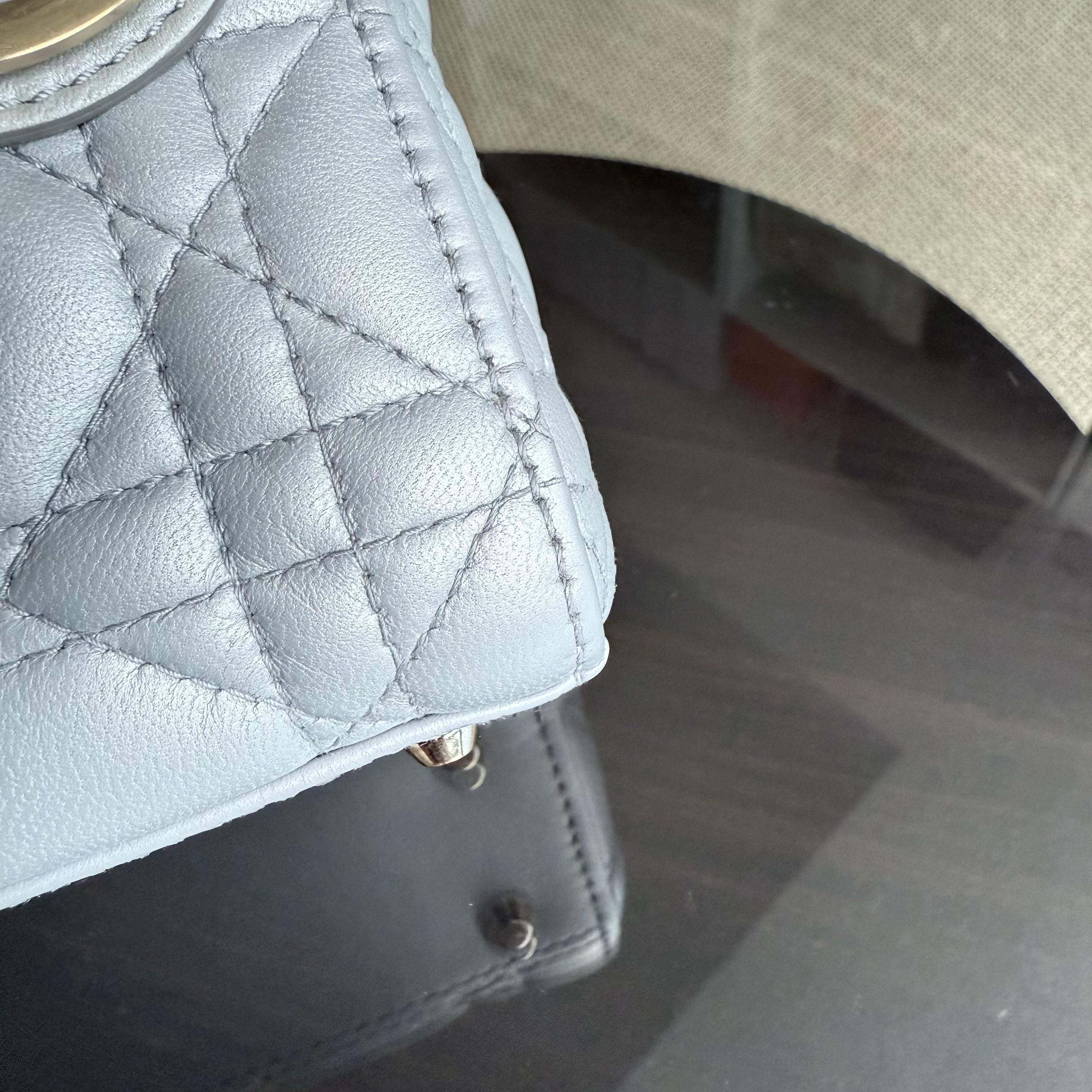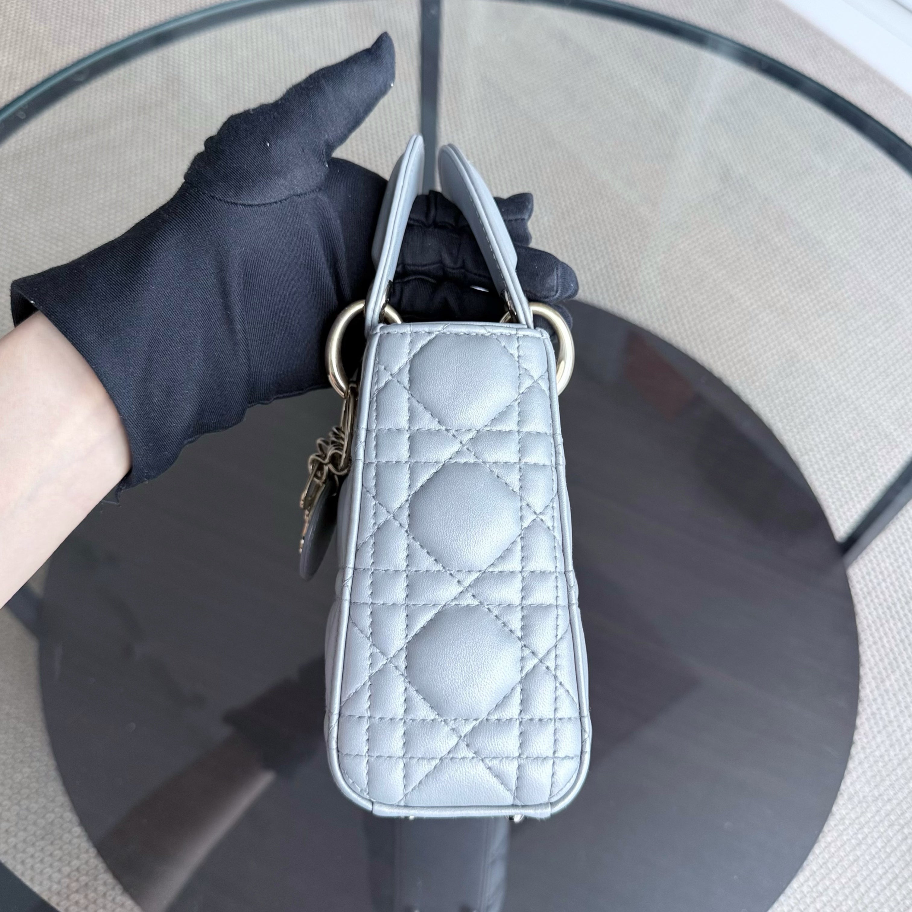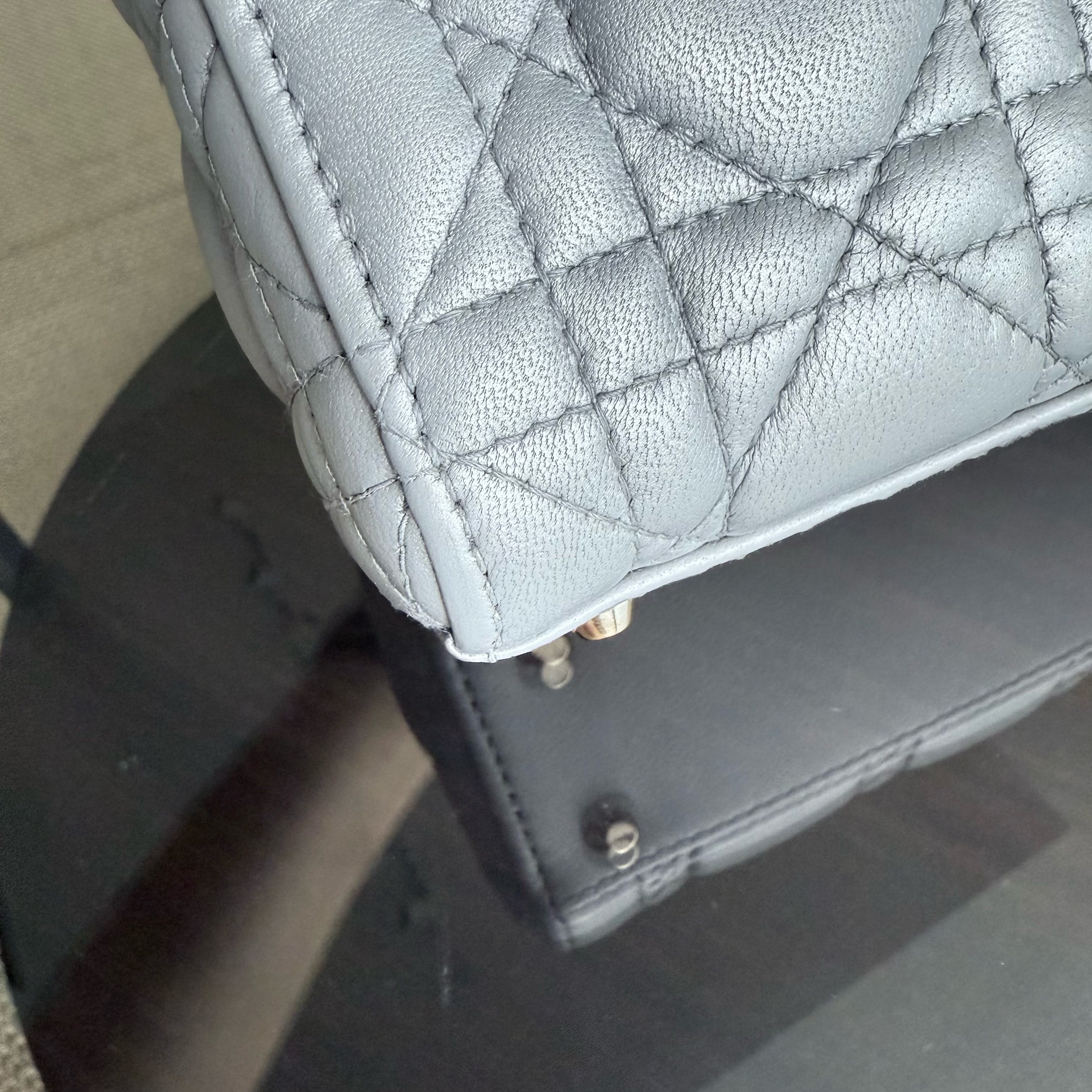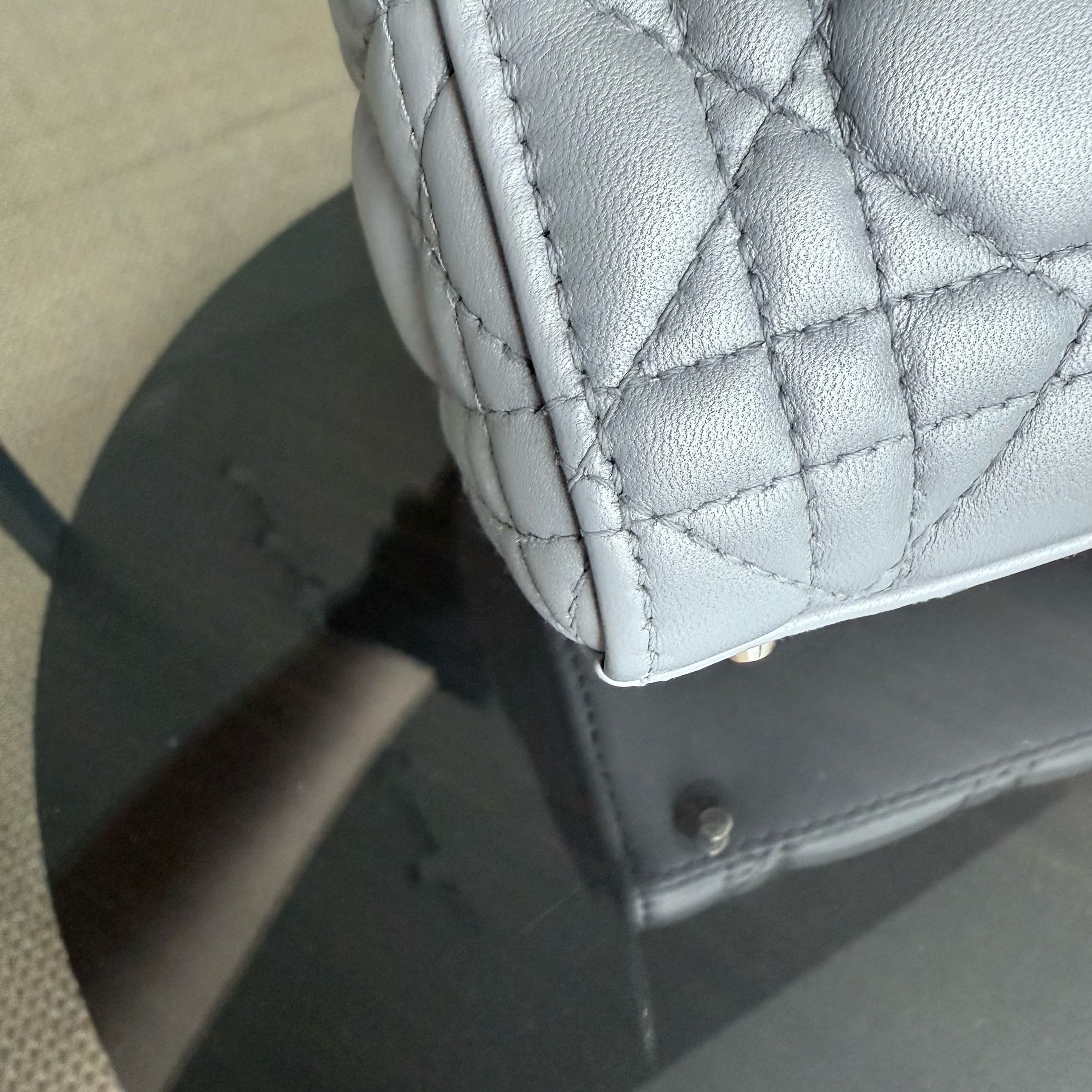 Dior Lady Mini - Cannage Lambskin Grey Gray Gold Hardware Chain Strap