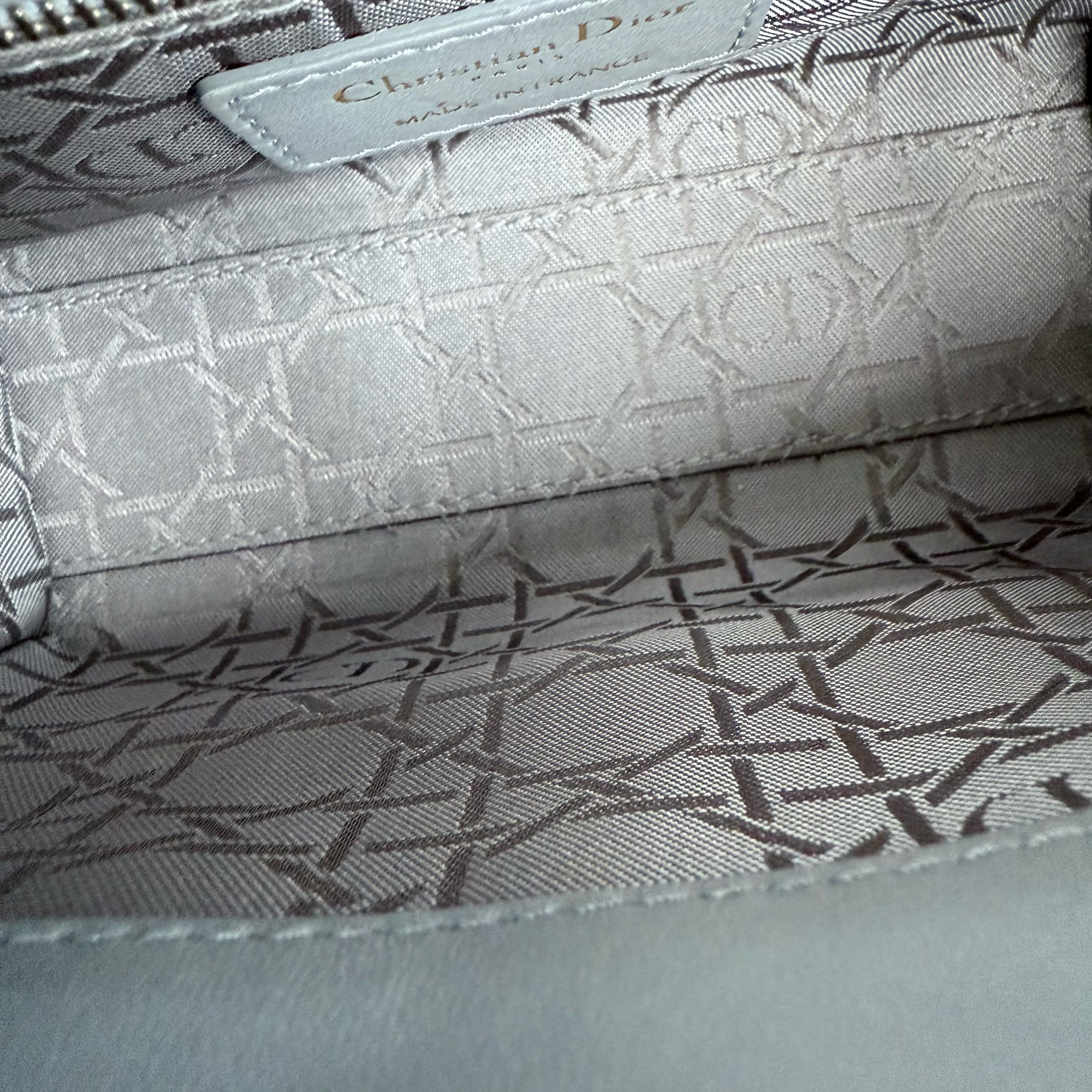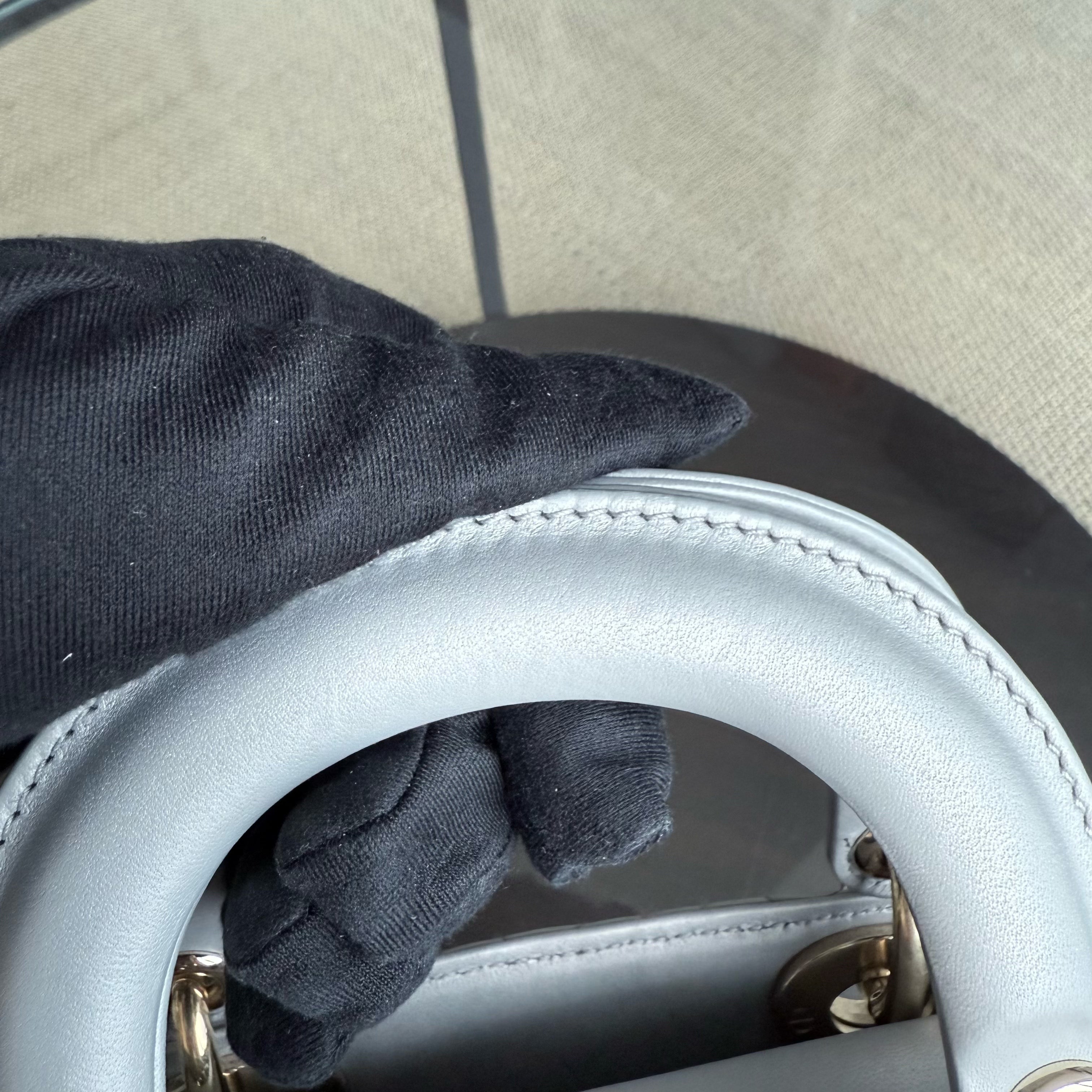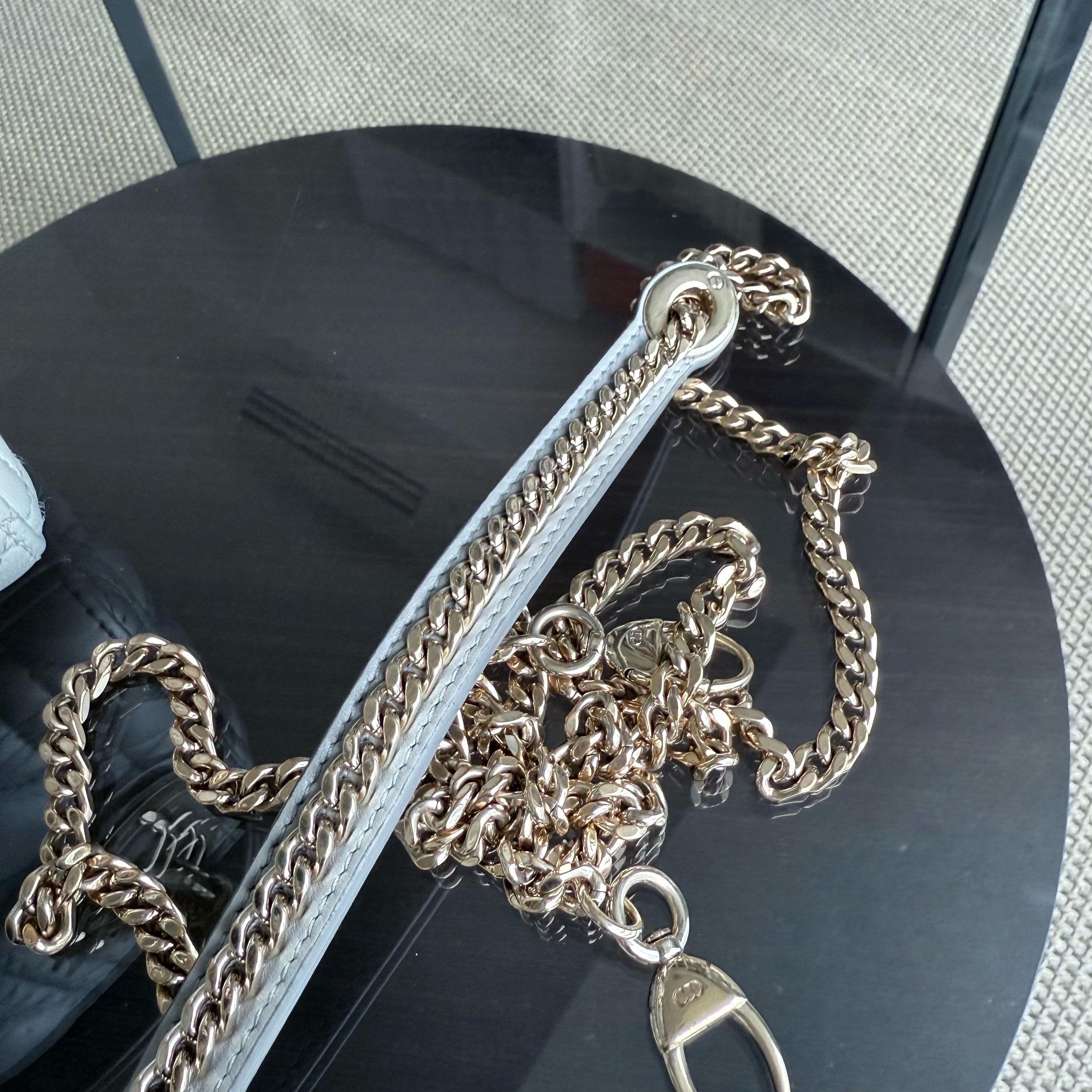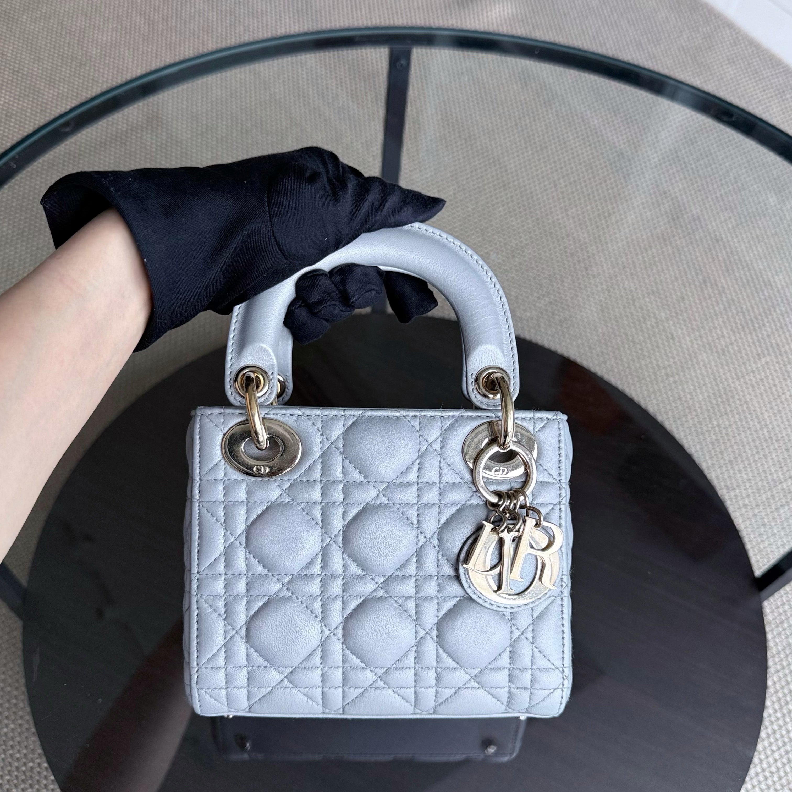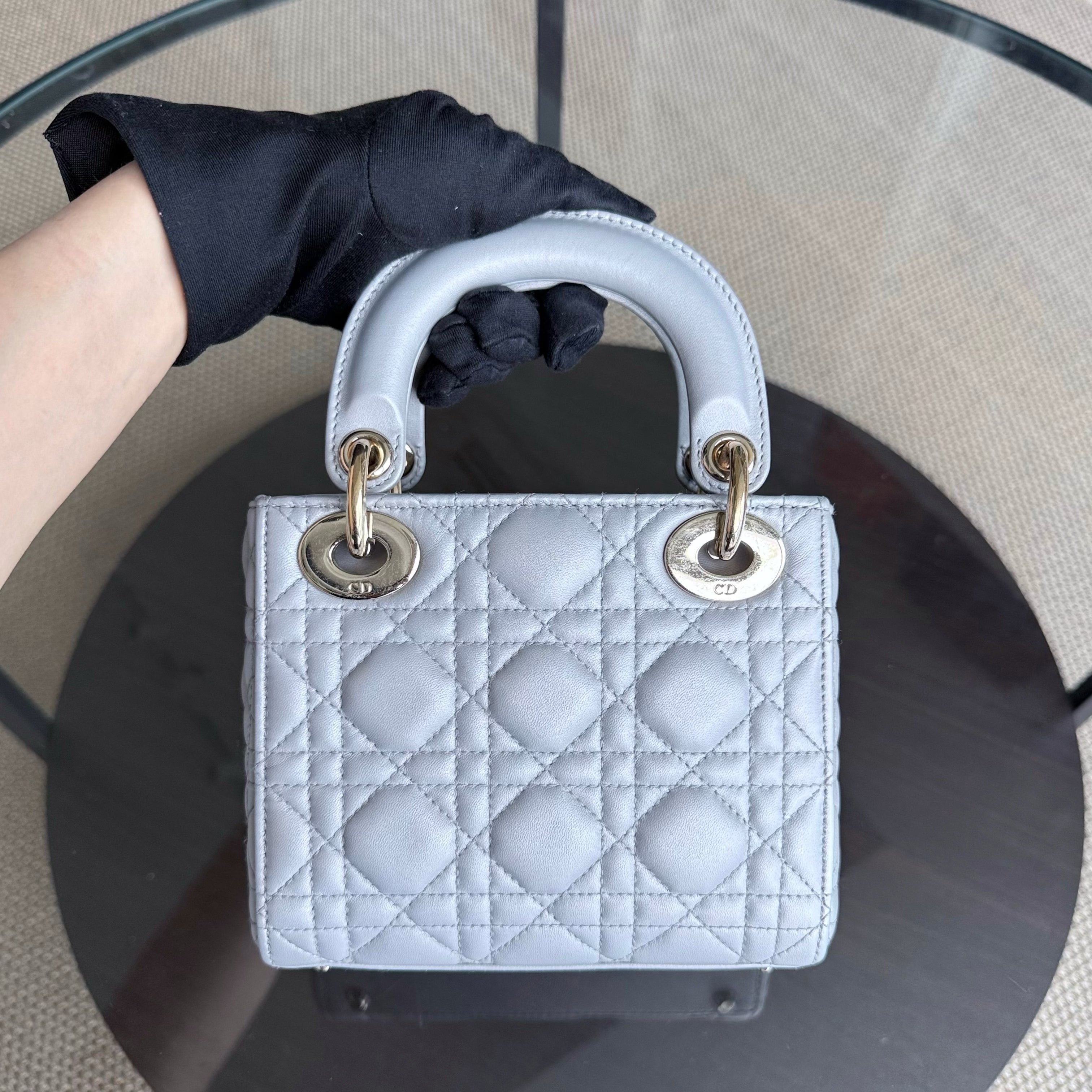 Dior Lady Mini - Cannage Lambskin Grey Gray Gold Hardware Chain Strap