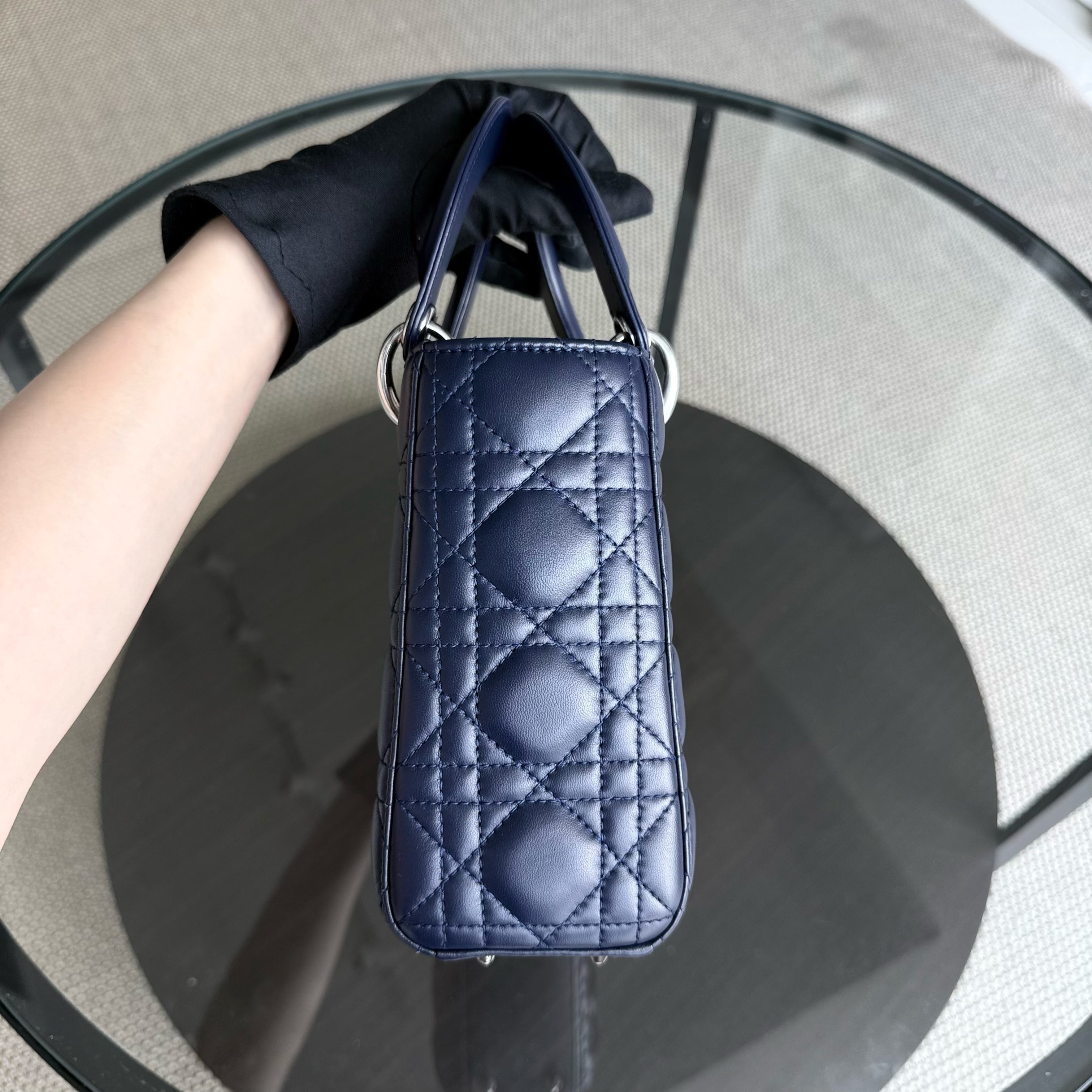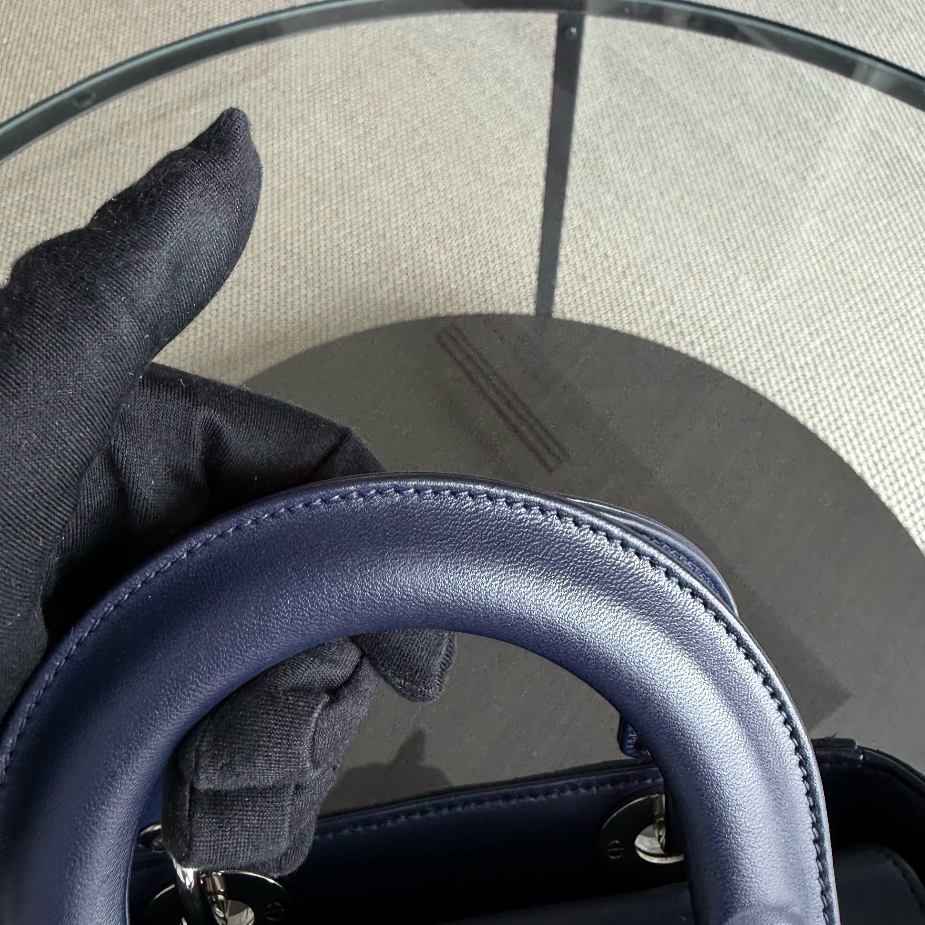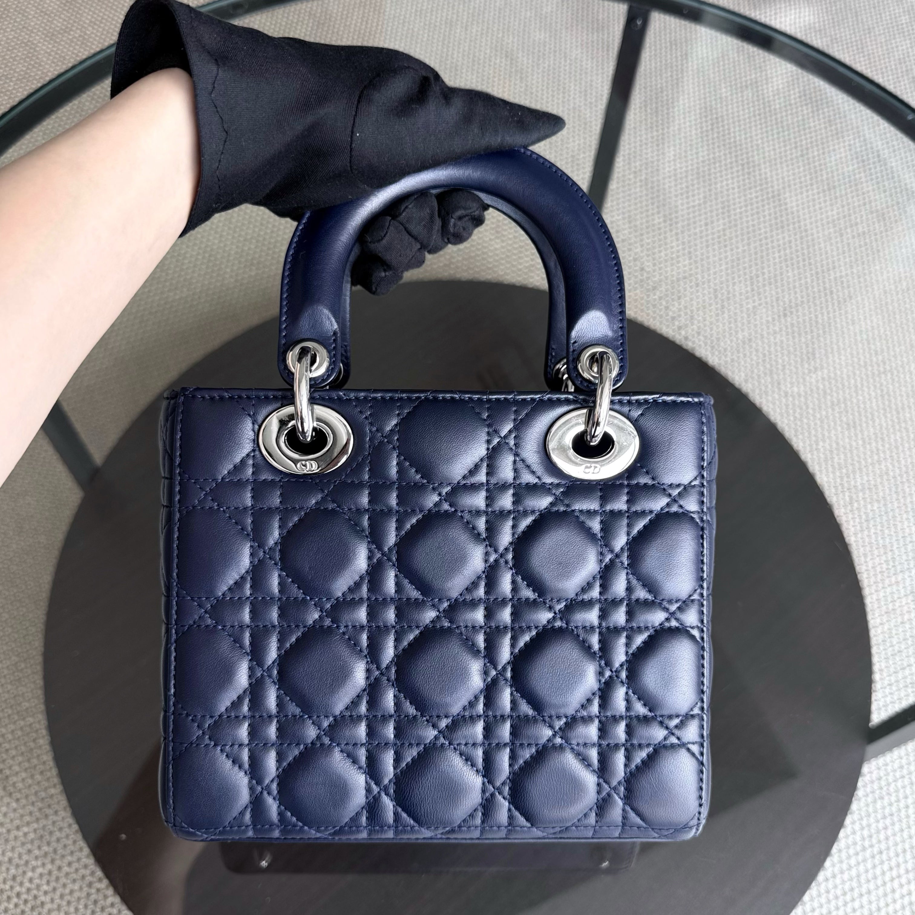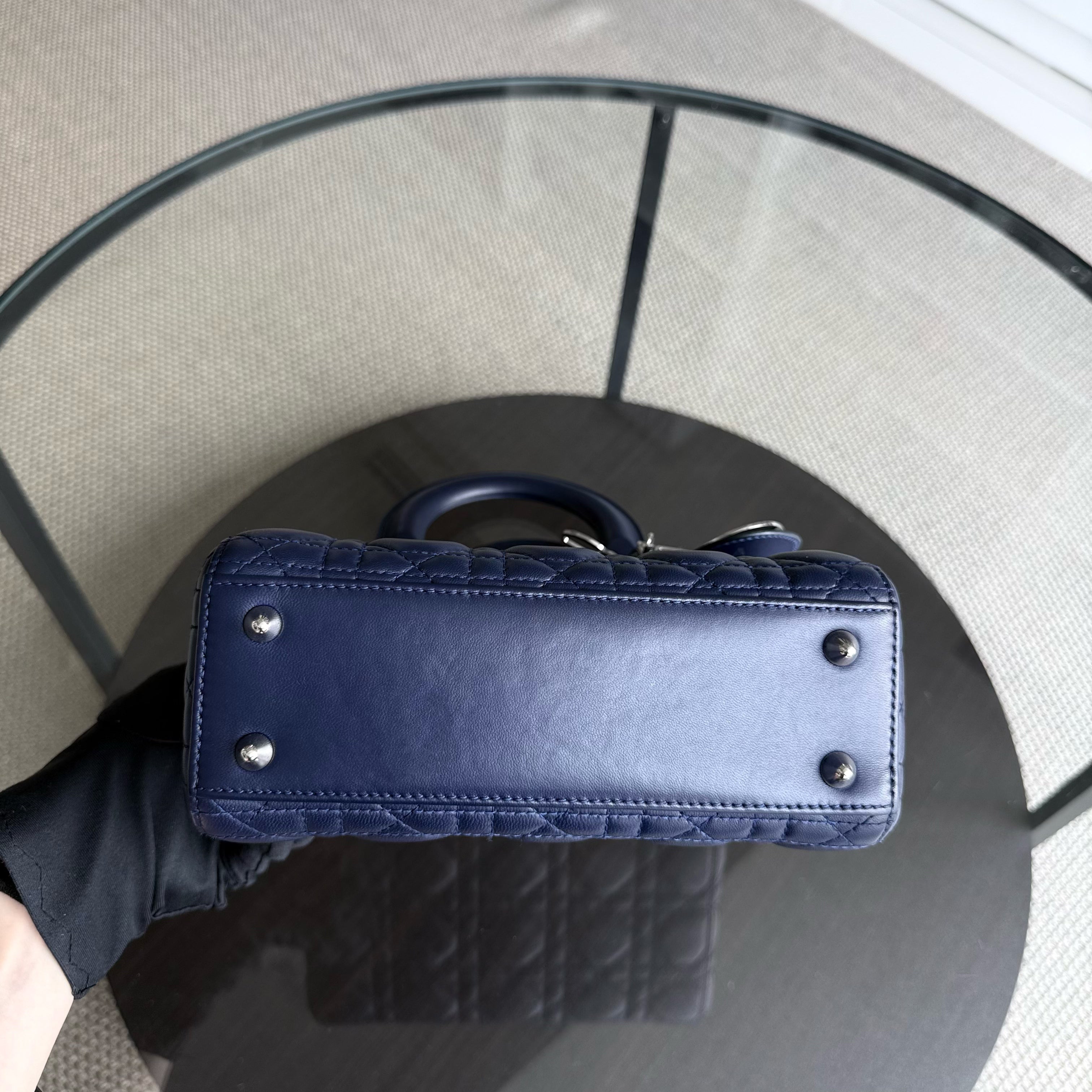 Dior Lady Small Flap - Cannage Lambskin Dark Blue Silver Hardware
