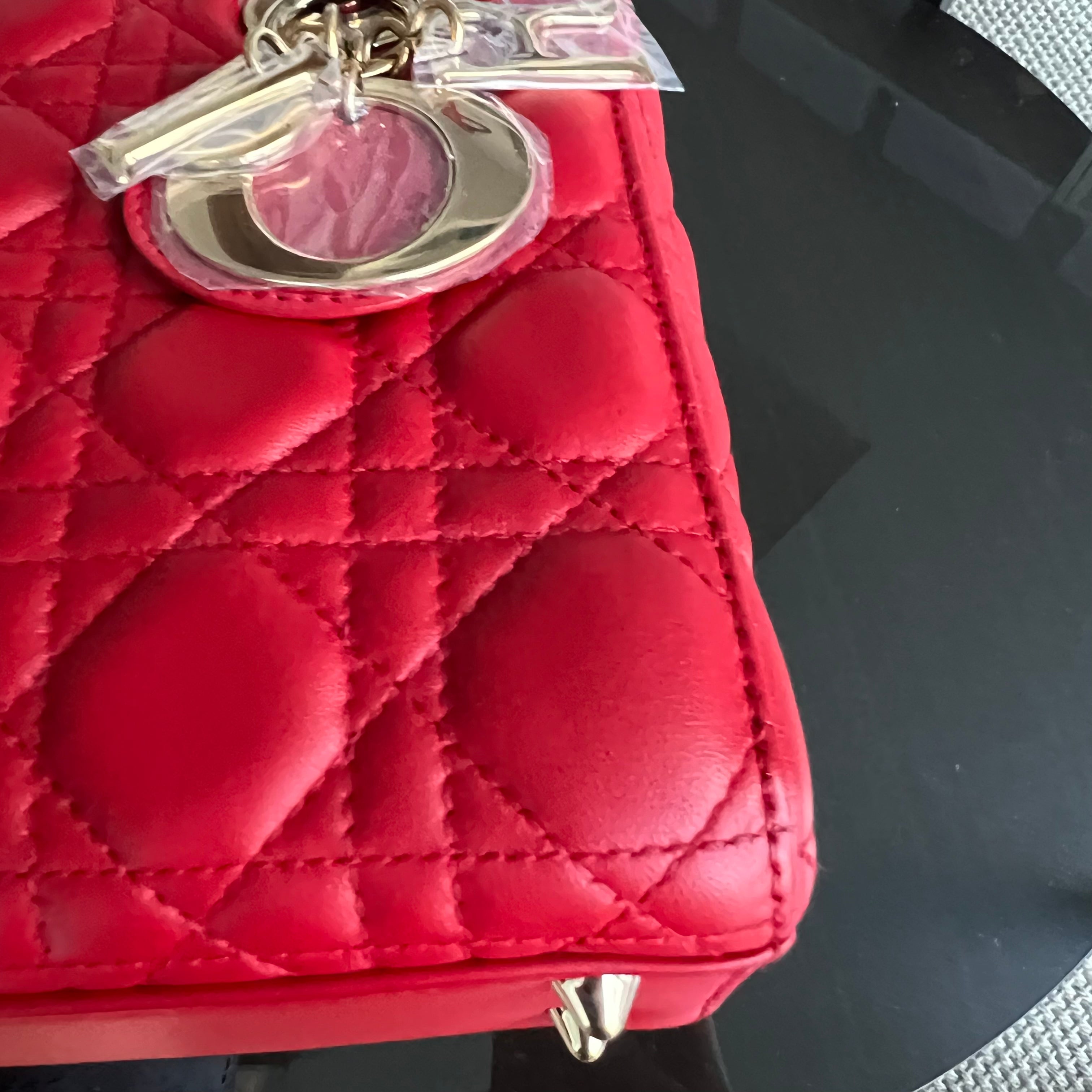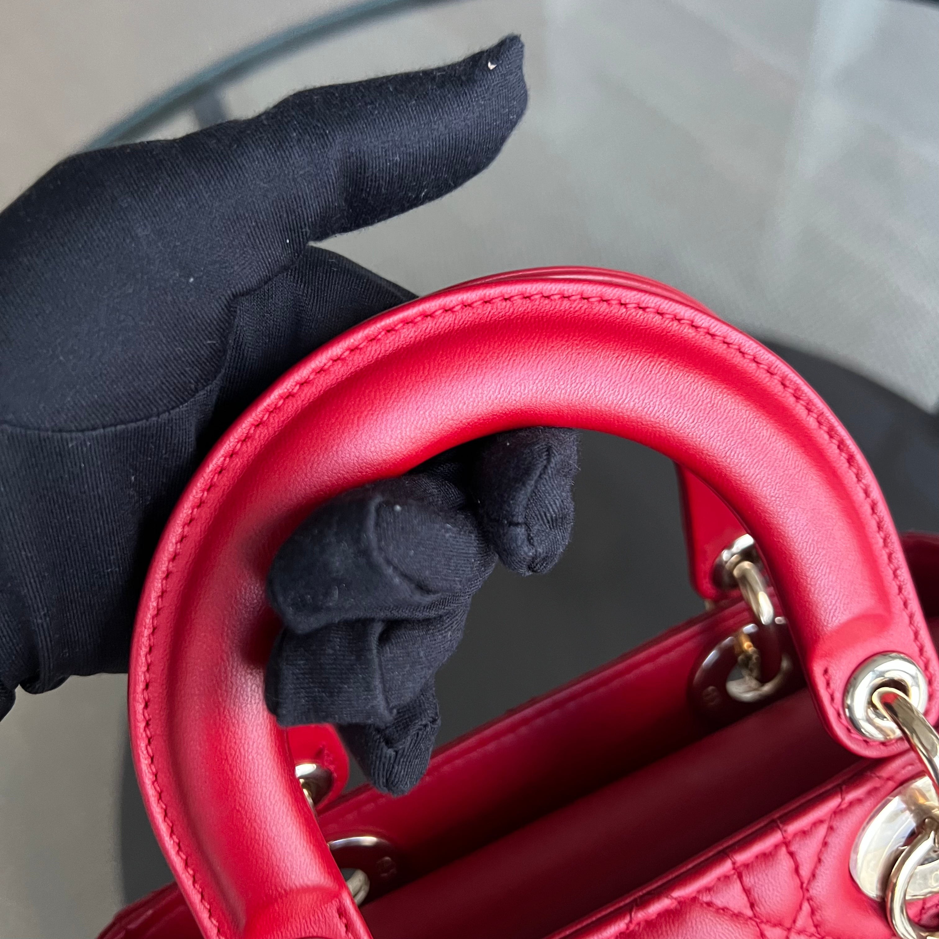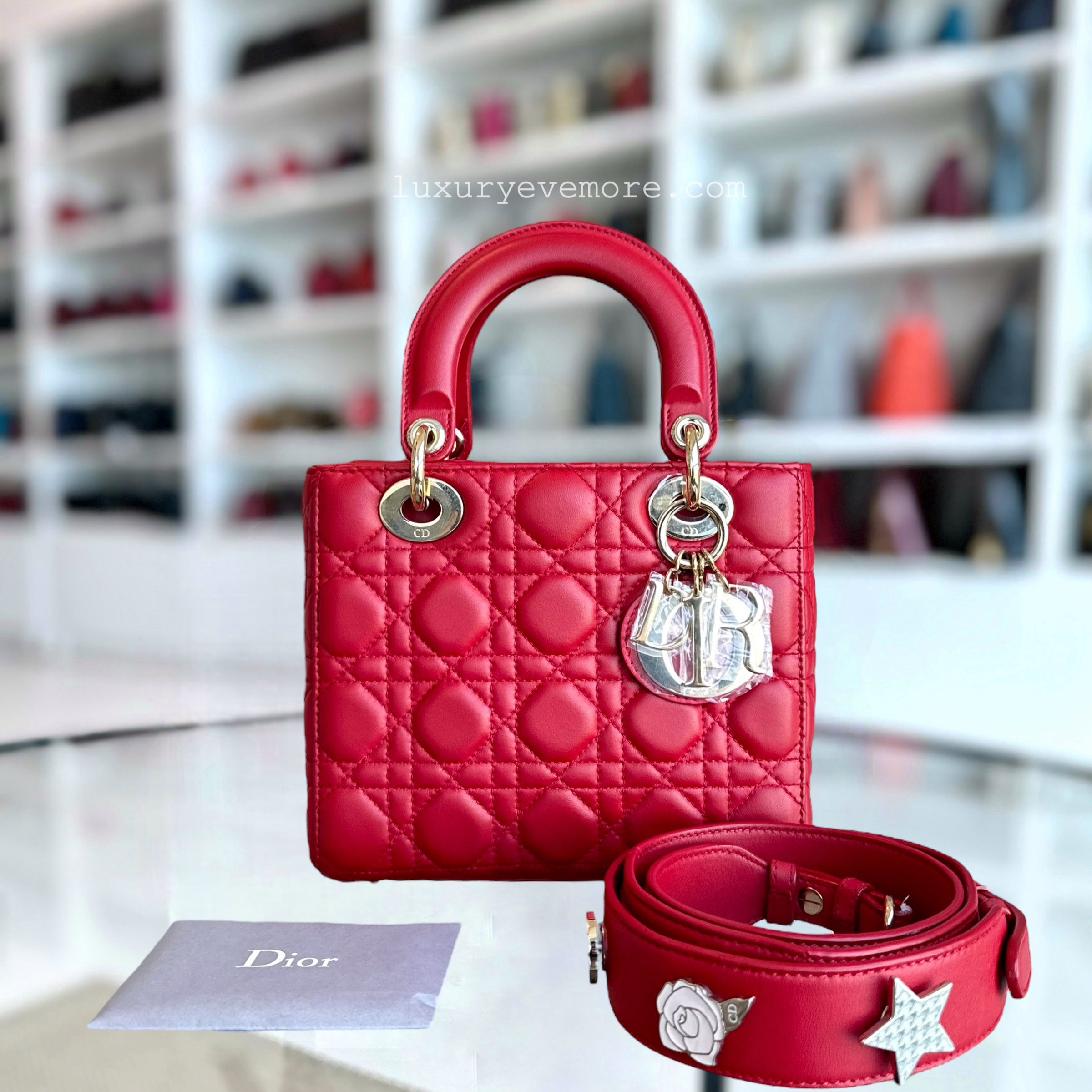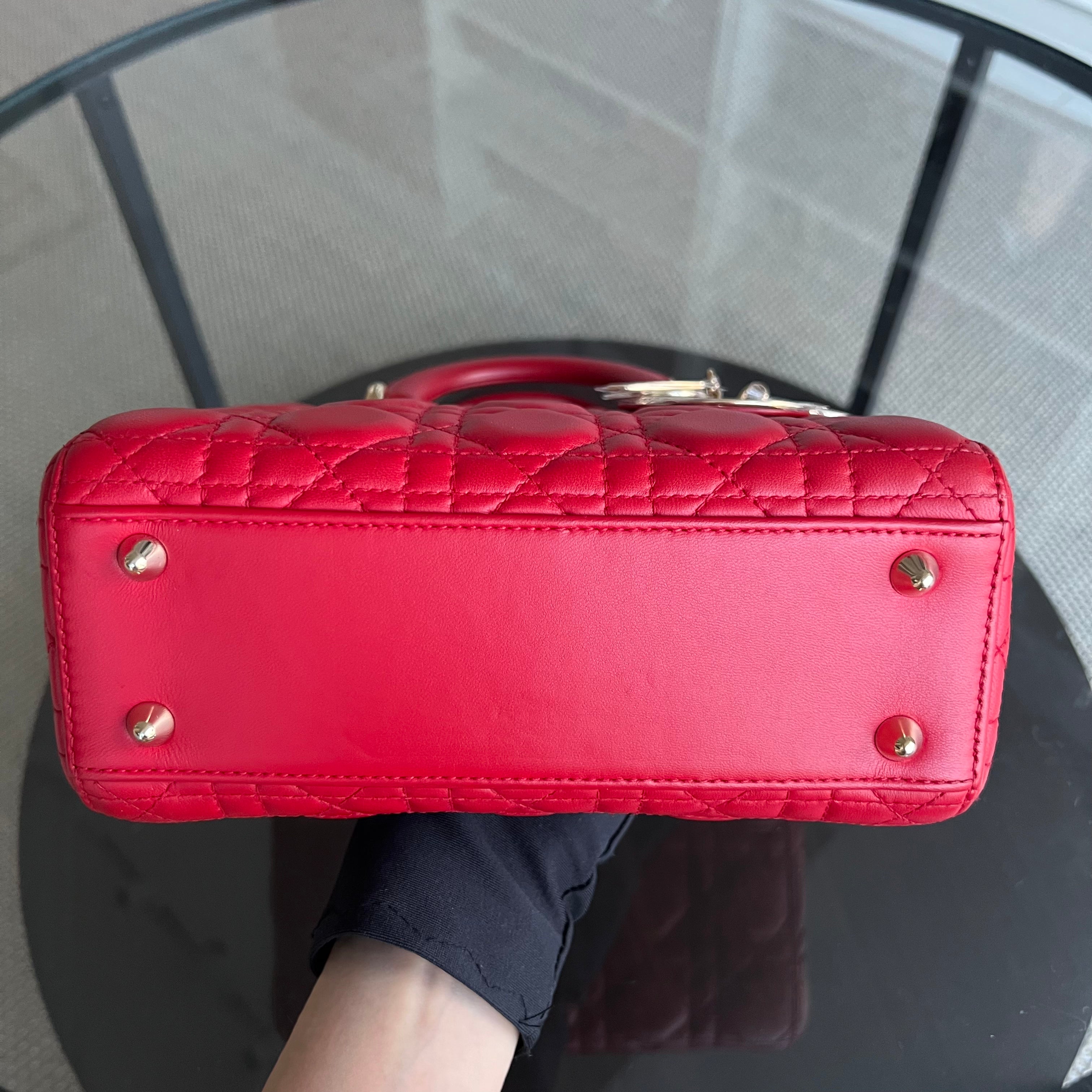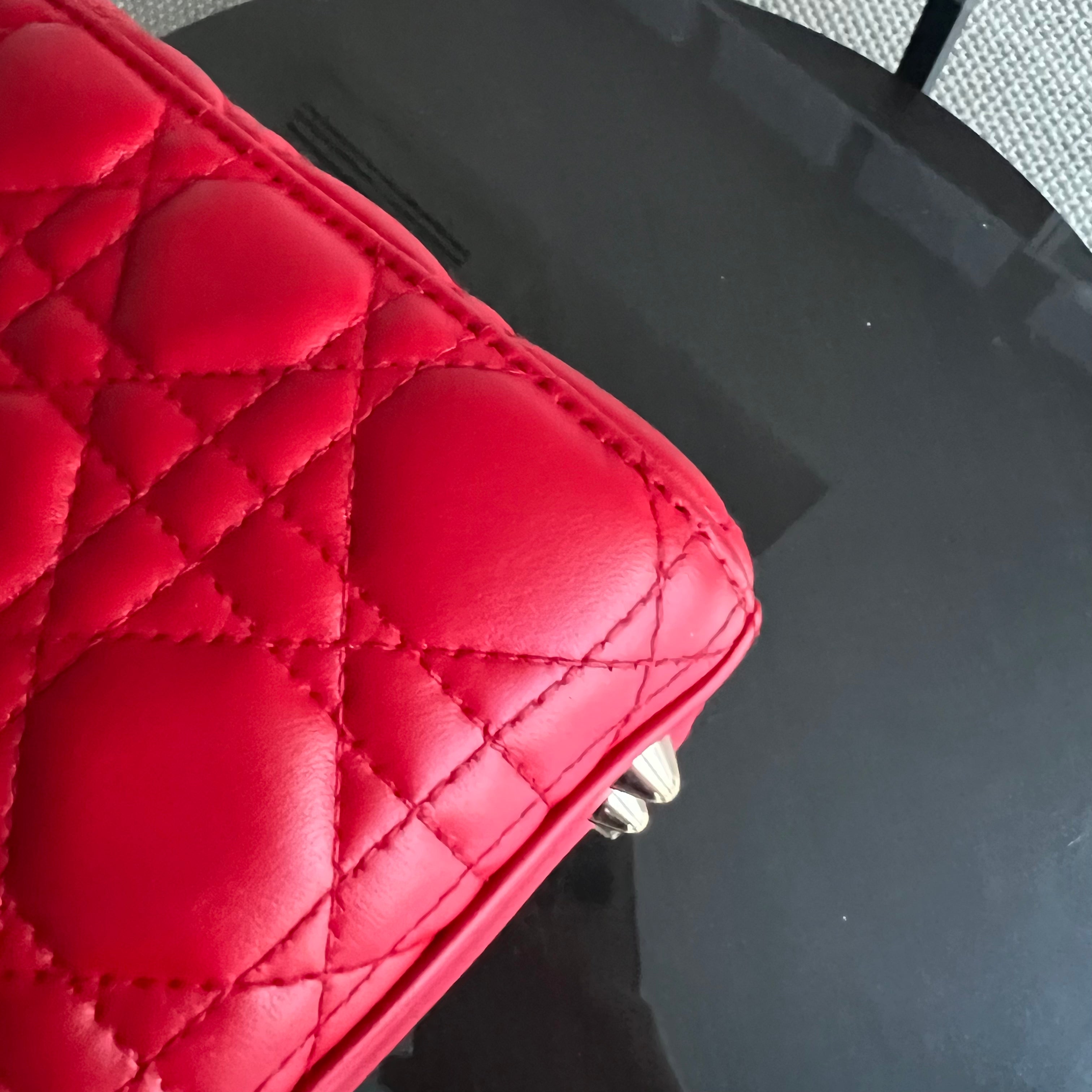Dior Lady Small Cannage Lambskin Red Golden Hardware