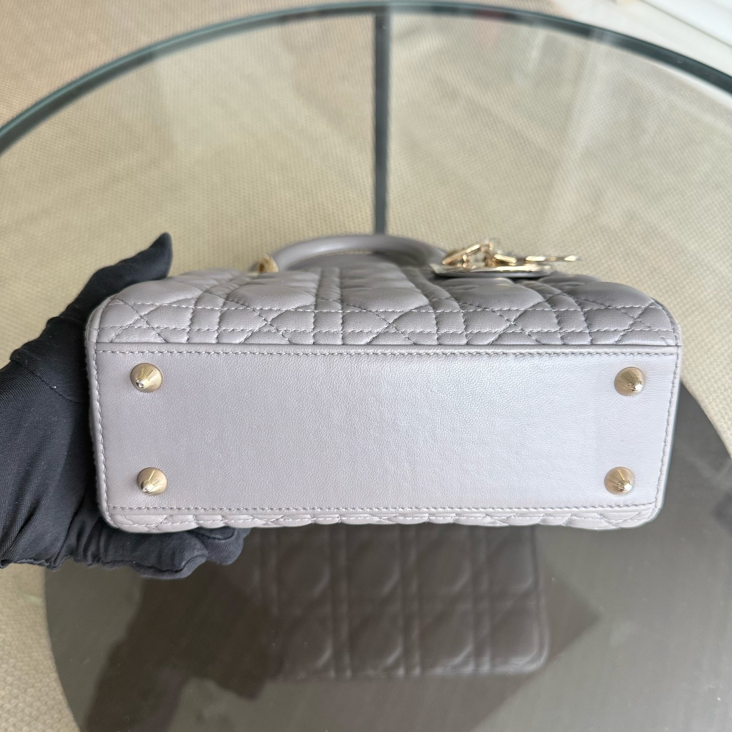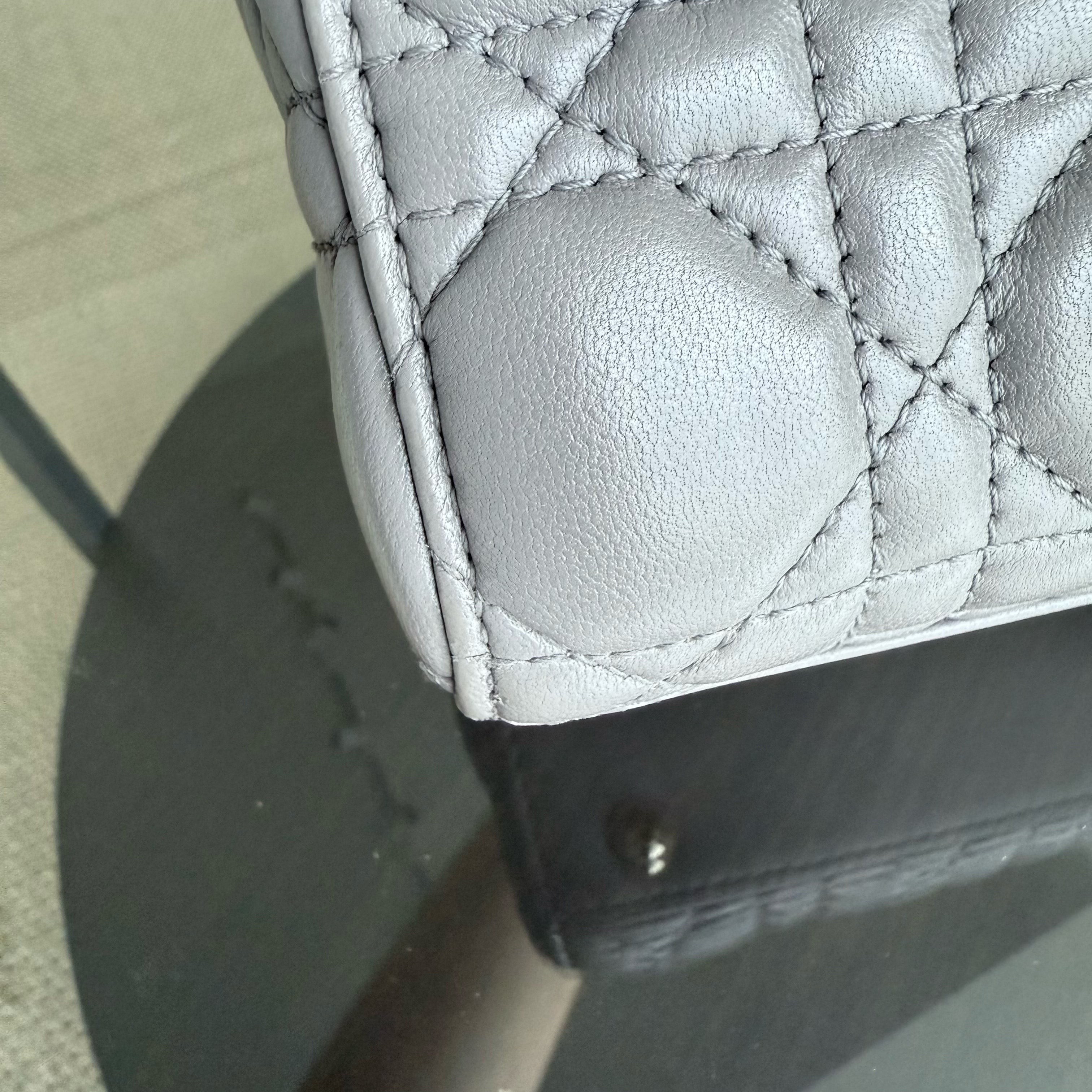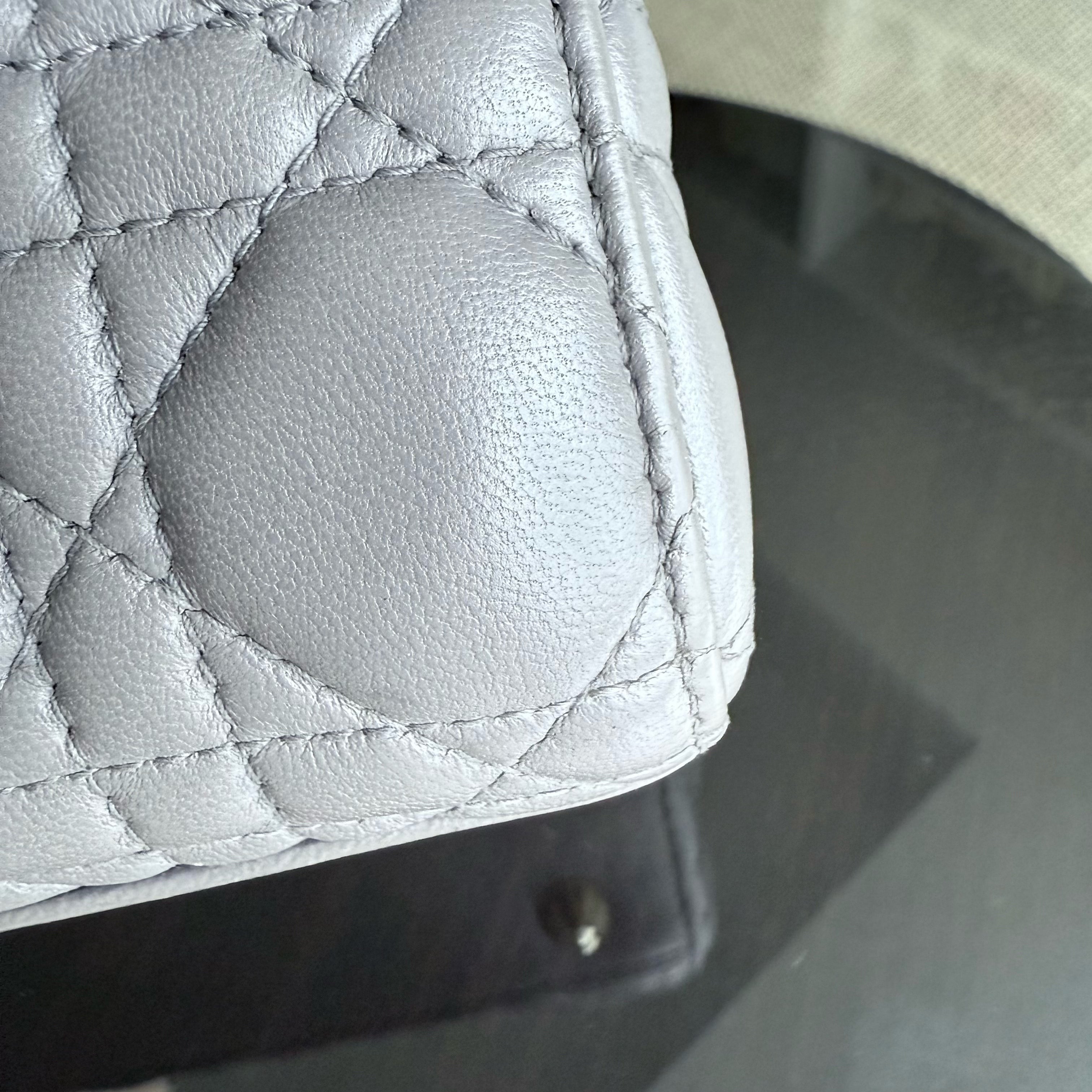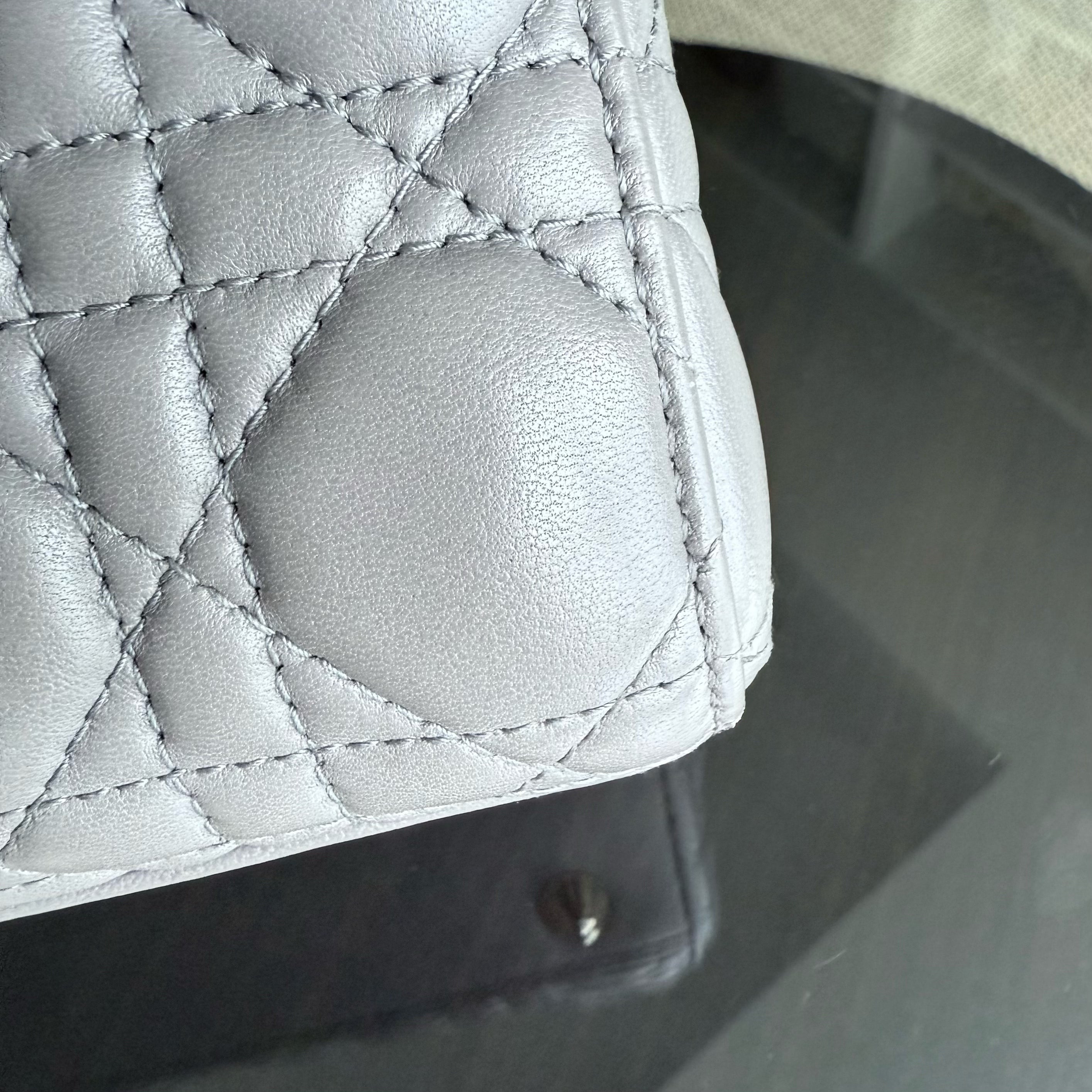 Dior Lady Small - Cannage Lambskin Grey Gray Gold Hardware