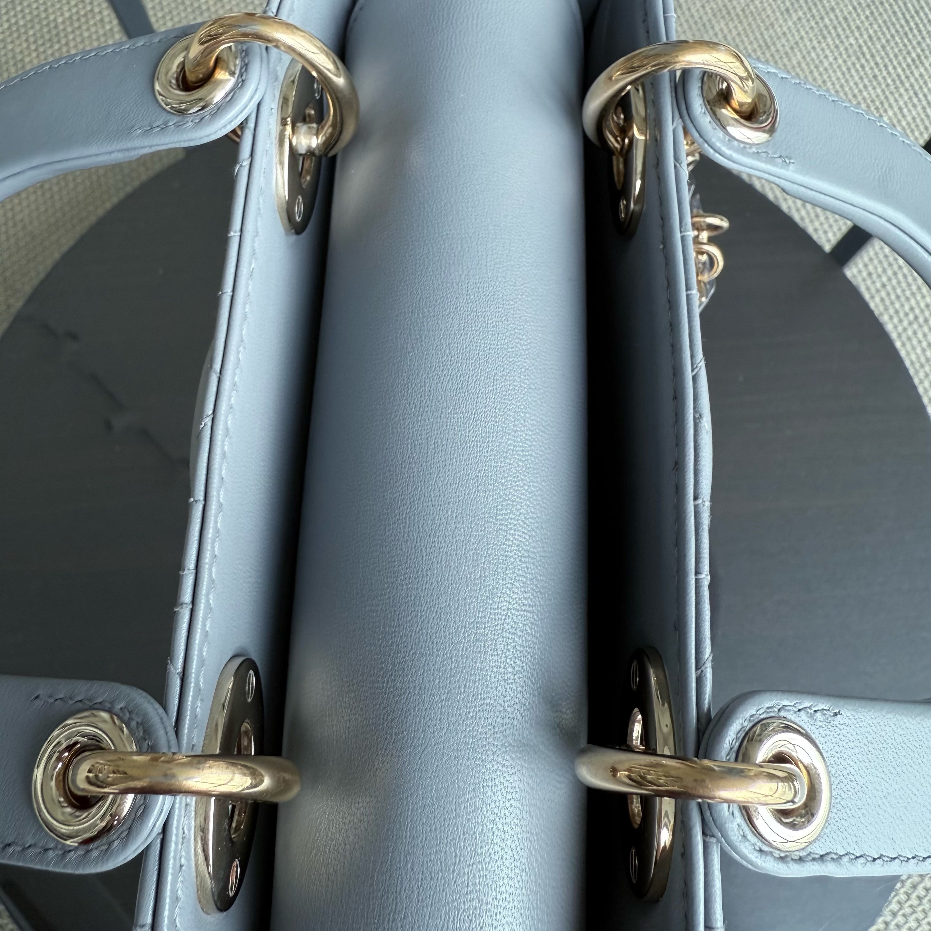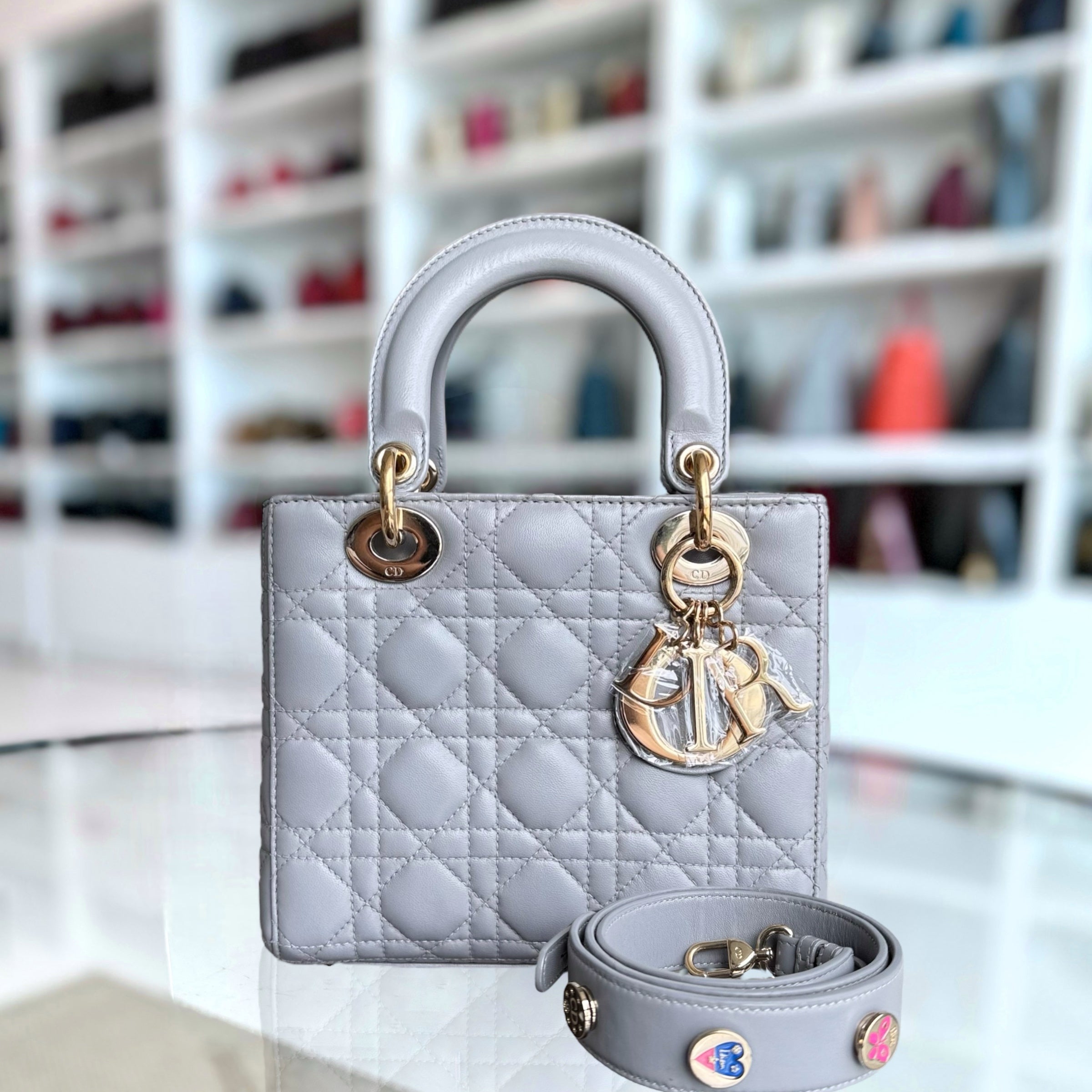 Dior Lady Small - Cannage Lambskin Light Grey Gray Gold Hardware