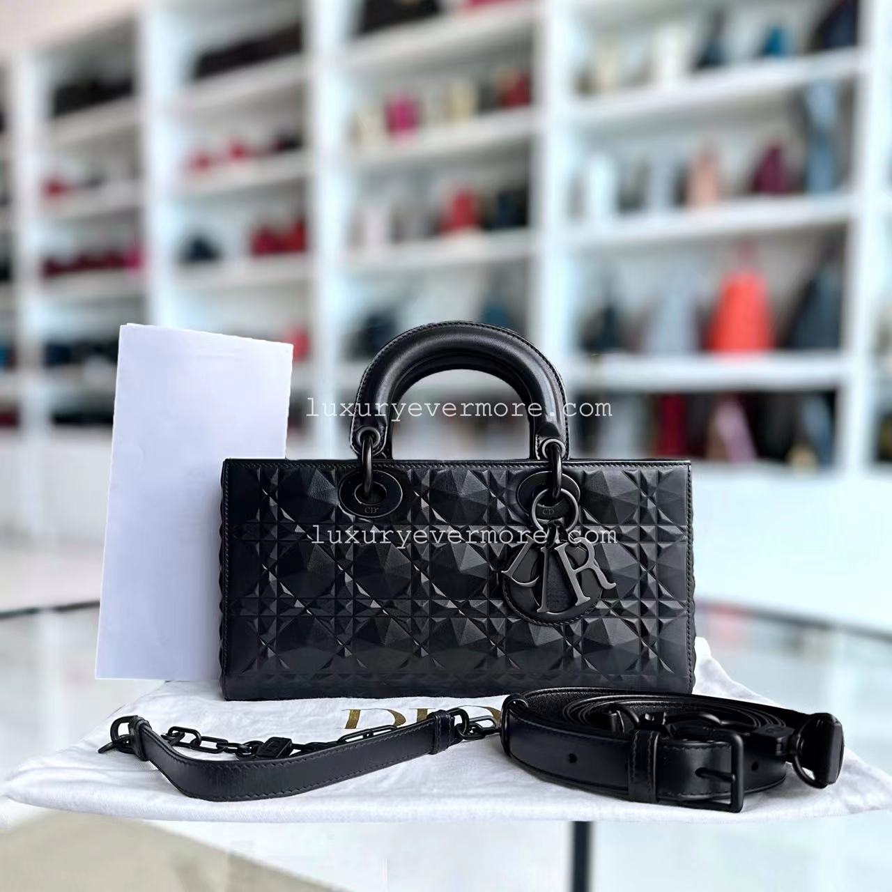 Dior D-Joy Medium - Black Cannage Dimond Motif All Black Hardware