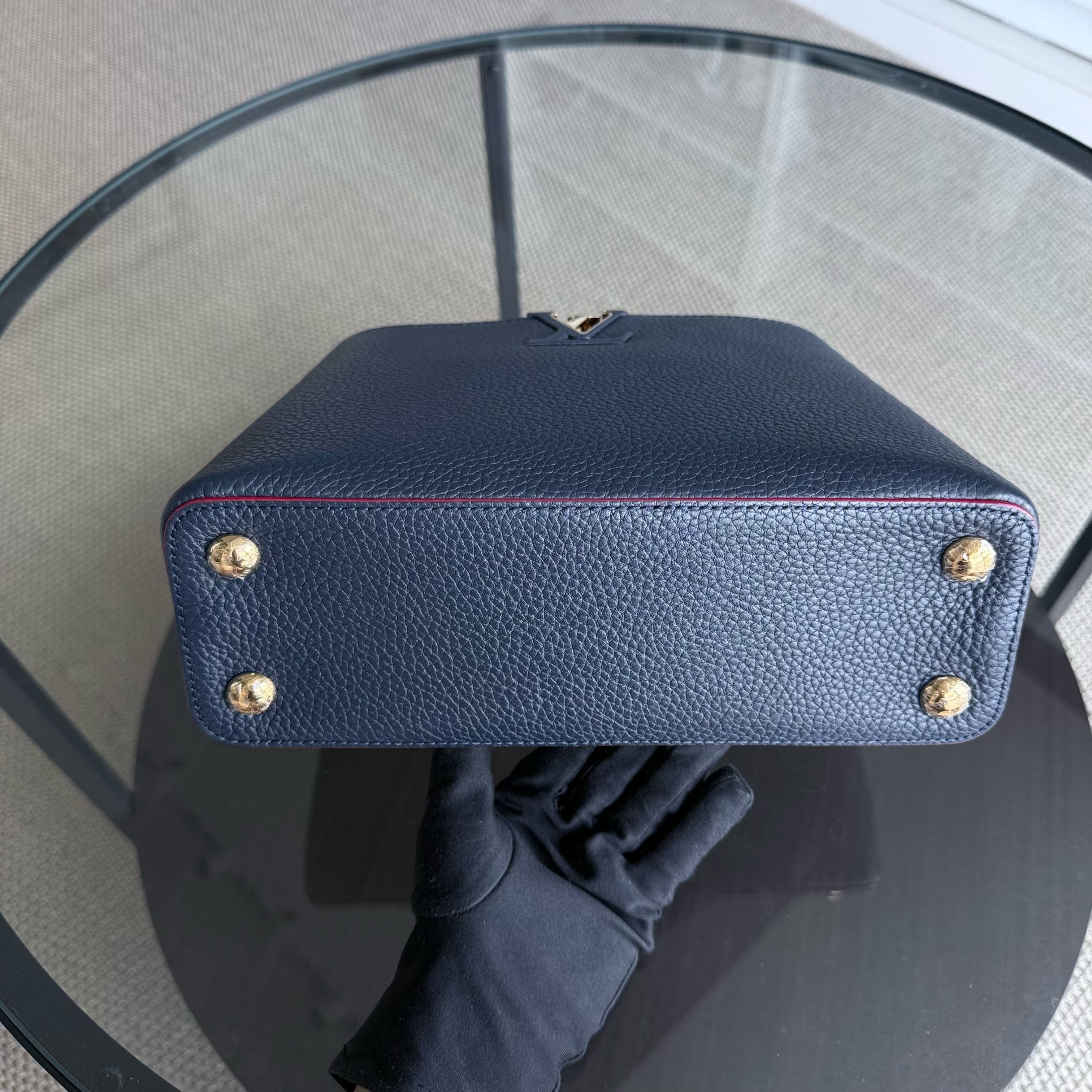 Louis Vuitton Capucines BB - Grained Calfskin Dark Blue Fuchsia Gold Hardware