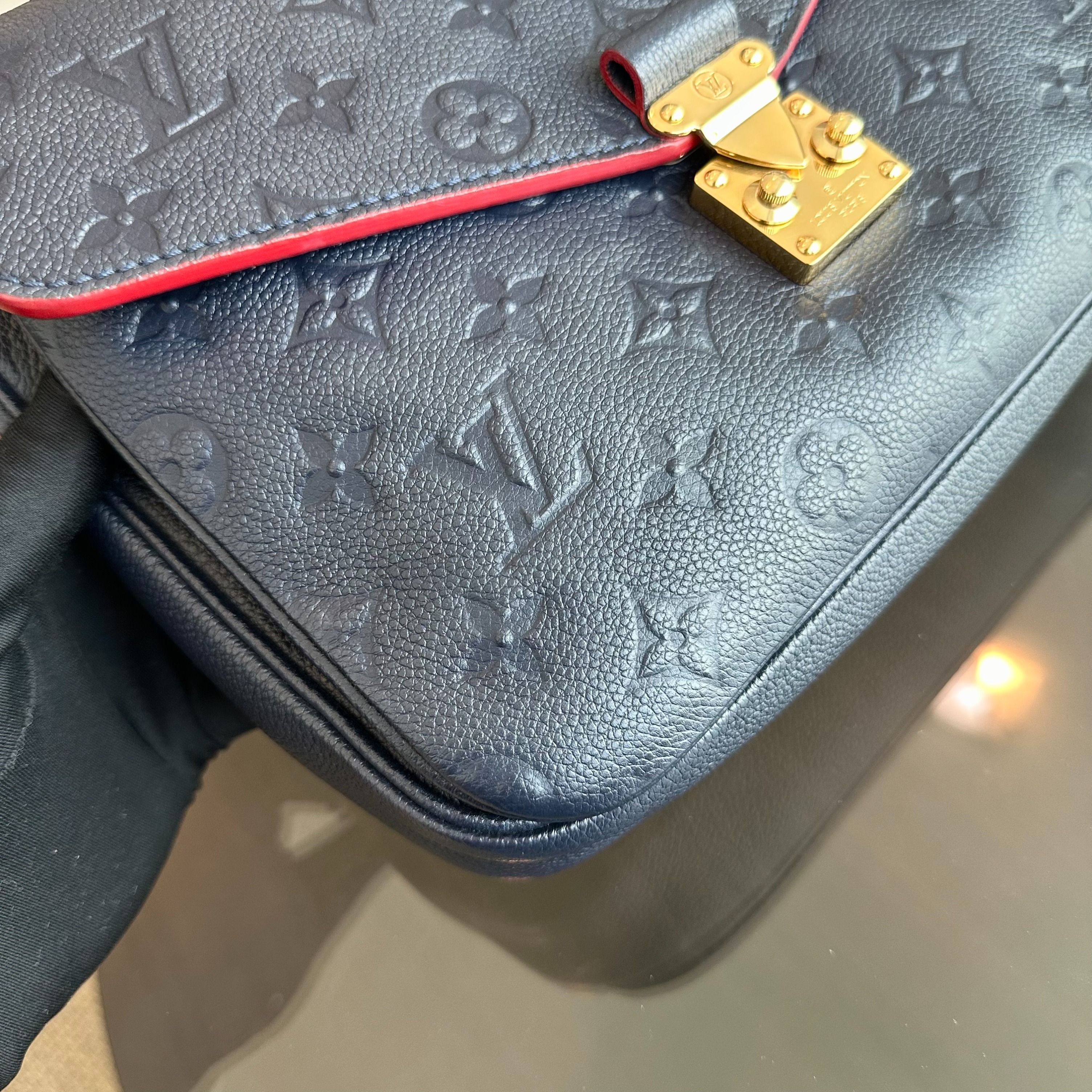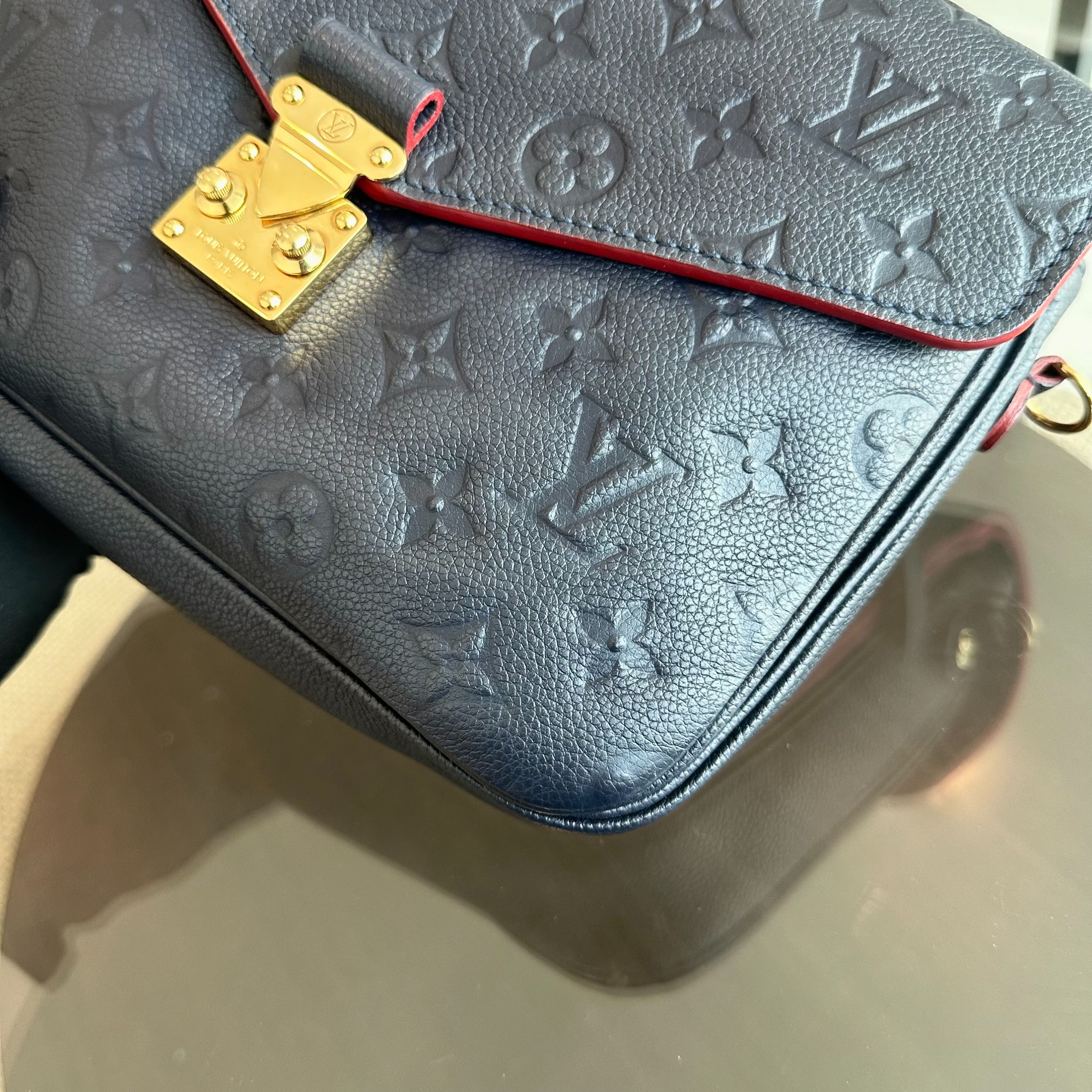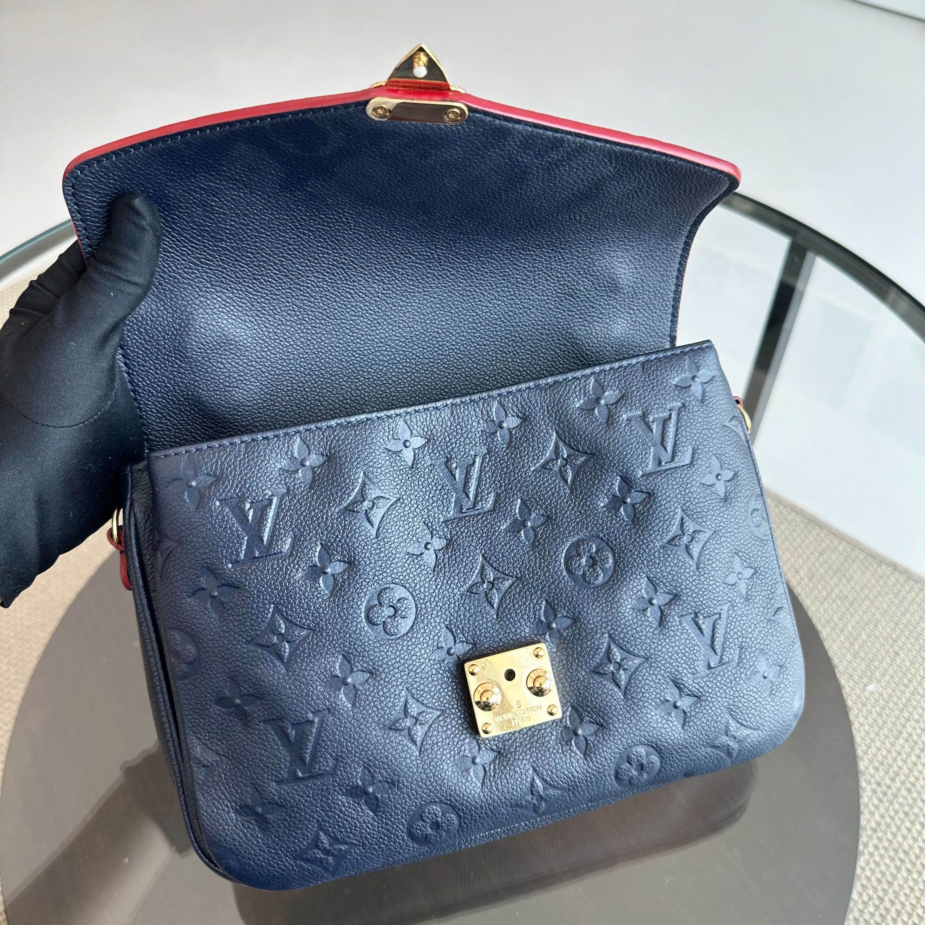 Louis Vuitton LV Pochette Metis Calfskin Empreinte Leather Navy Blue GHW