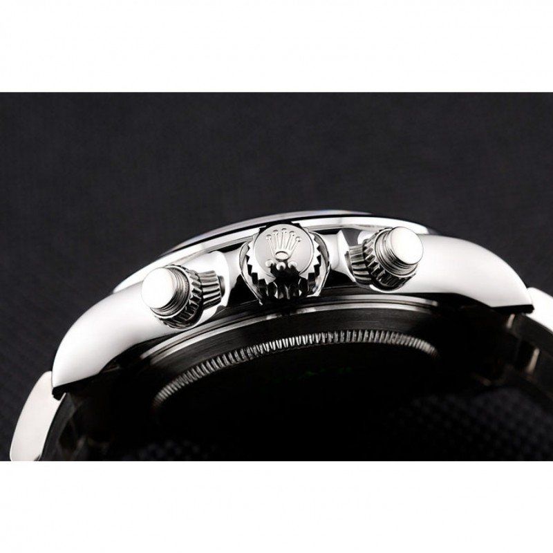 BrandRolexCollectionDaytonaMovementKinetic (Automatic)QualitySwissCasePolished stainless steel caseBackBrushed stainless steel snap-in back with green Rolex authenticity stickerBezelPolished stainless steel bezel with tachymeterCrownPolished stainless steel cutwork crown with Rolex logo and a push-button cutwork crown on either side of itBraceletBrushed and polished stainless steel link bracelet with Rolex logo deployment claspBand TypeStainless SteelWatch ClaspSecurity ClaspGlassSapphire CrystalColorSilverDial ColorBlackGenderMenDiameter47 x 39 mmBracelet Length119 x 20 mmCase Thickness11 mmQuality & TrademarkAll our Swiss grade watches are water resistant but not waterproof; we do not recommend swimming with them or taking showers with them. Taking the watches underwater will revoke their guarantee. Swiss watches are waterproof up to 30 meters.