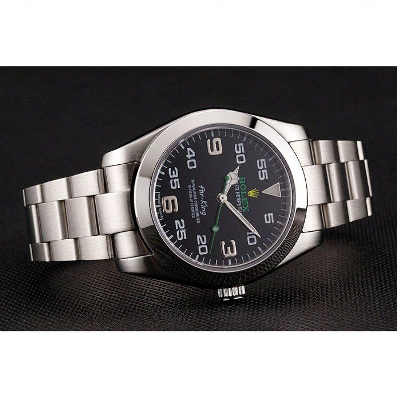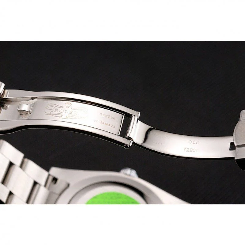 BrandRolexMovementKinetic (Automatic)QualityJapaneseCasePolished stainless steel caseBackPolished stainless steel snap in back with green Rolex authenticity stickerBezelpolished stainless steel bezelCrownRolex logo carved polished stainless steel cutwork crownBand TypeStainless SteelGlassSapphire CrystalColorSilverDial ColorBlackGenderMenDiameter48 x 38 mmBracelet Length120 x 20 mmCase Thickness13 mmQuality & TrademarkAll our Japanese grade watches are water resistant but not waterproof; we do not recommend swimming with them or taking showers with them. Taking the watches underwater will revoke their guarantee.