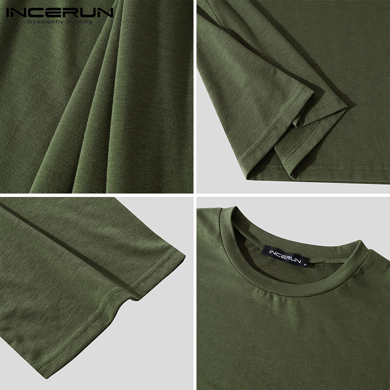 INCERUN Mens Shorty Pajamas Sets Nightwear Japanese Loose Fit Tops Shorts Sleepwear Suit (Korean Style)